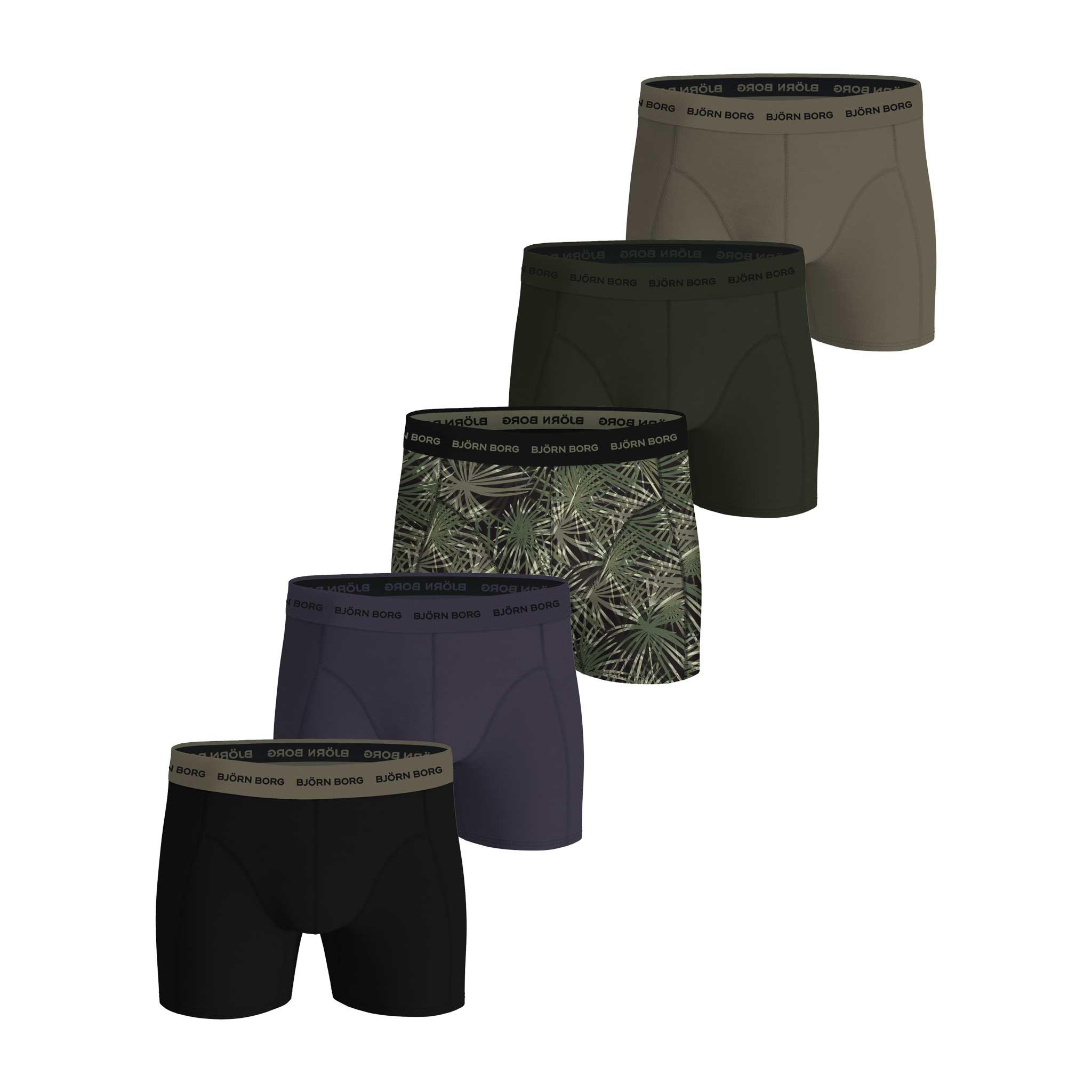 Voordeelpack van Björn Borg met 5 boxers uit de Essential Cotton serie. De Essential boxershorts zijn gemaakt van lichter katoen dan de shorts uit de Premium Organic Cotton (Core) serie, maar uitermate geschikt voor alledaags gebruik waarbij je niet al te veel van je boxer eist. De boxers zijn uitgevoerd in diverse kleurcombinaties en beschikken over een elastische heupband met daarop het Björn Borg Logo. Met deze 5-pack kun je weer even vooruit.