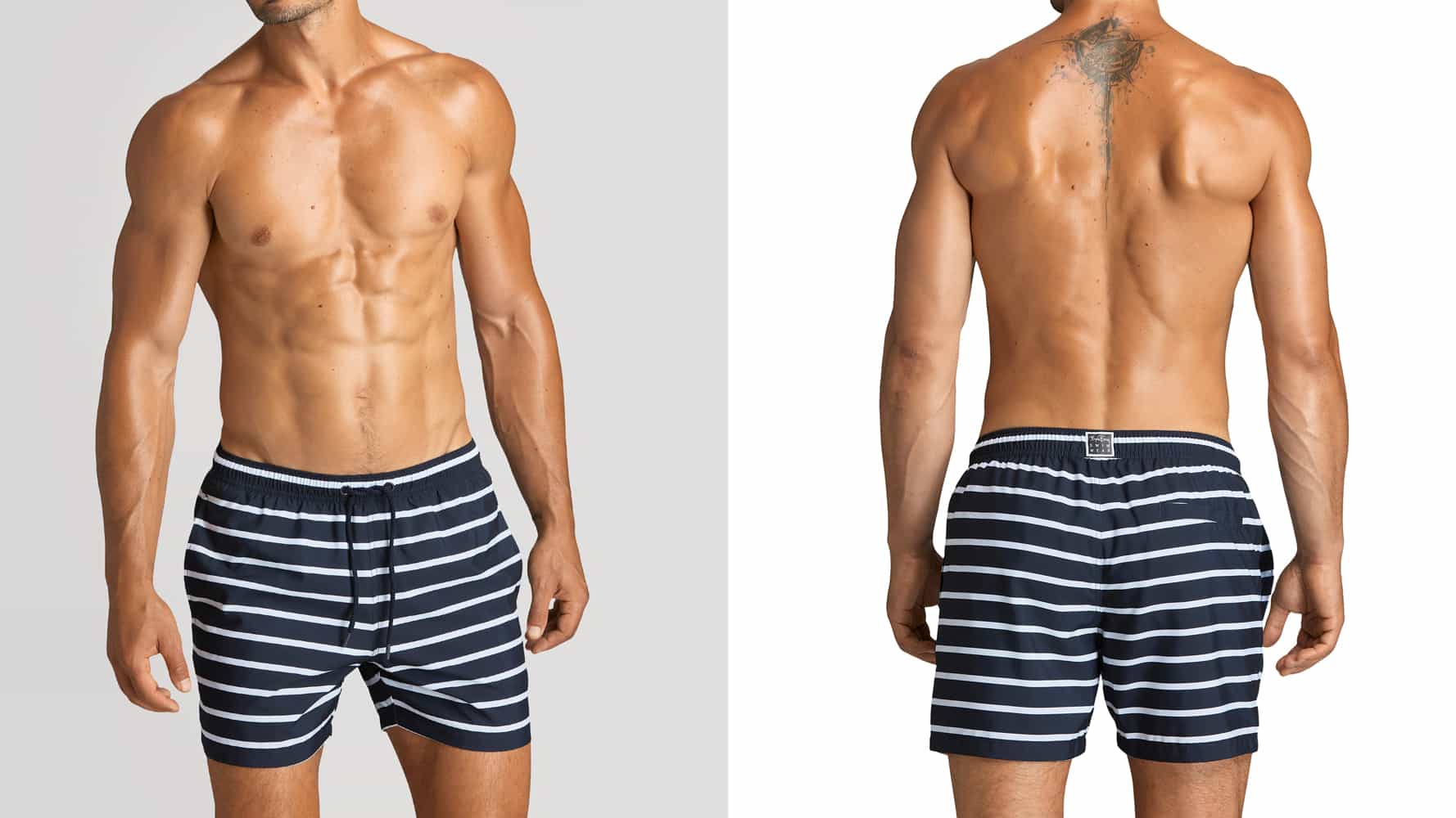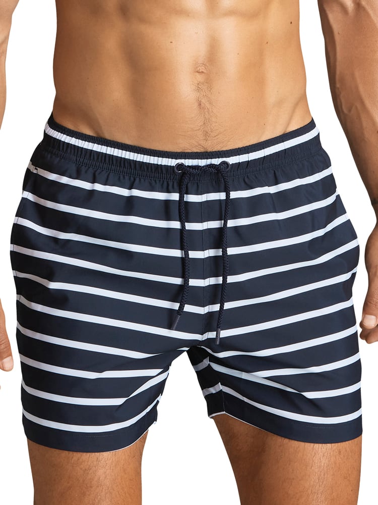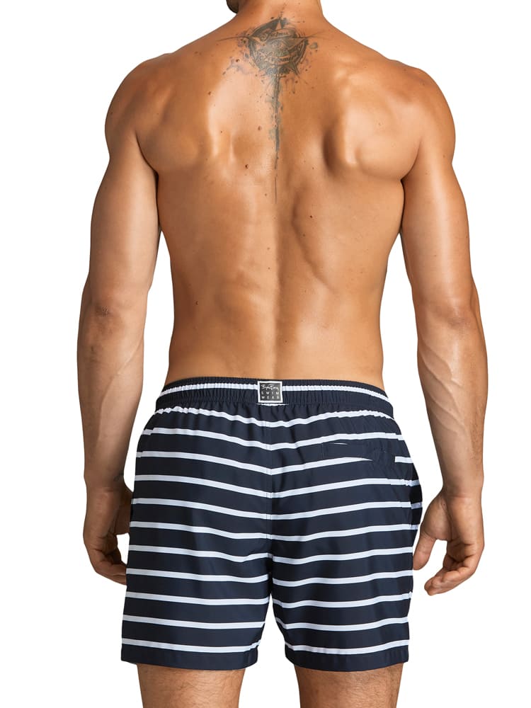 Een zomers zwemshort met een mooie print, gemaakt van 100% milieuvriendelijk gerecycled polyester. Polyester is waterafstotend waardoor deze snel droogt. Het zwemshort is uitgevoerd met een binnenbroek van mesh, heeft zakken aan de linker en rechterzijde en een achterzak met klittenband om je bezittingen veilig in te bewaren. Het zwemshort heeft een elastische tailleband van met trekkoord aan de buitenzijde om het beachshort perfect op maat te brengen.