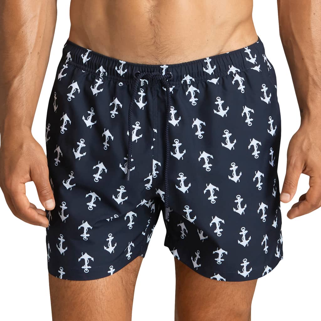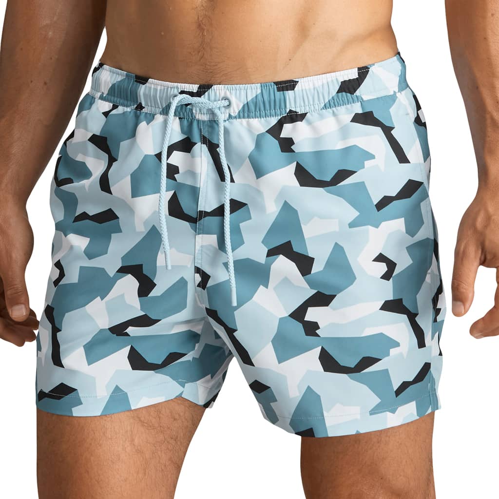 Een zomers zwemshort met een mooie print, gemaakt van 100% milieuvriendelijk gerecycled polyester. Polyester is waterafstotend waardoor deze snel droogt. Het zwemshort is uitgevoerd met een binnenbroek van mesh, heeft zakken aan de linker en rechterzijde en een achterzak met klittenband om je bezittingen veilig in te bewaren. Het zwemshort heeft een elastische tailleband van met trekkoord aan de buitenzijde om het beachshort perfect op maat te brengen.