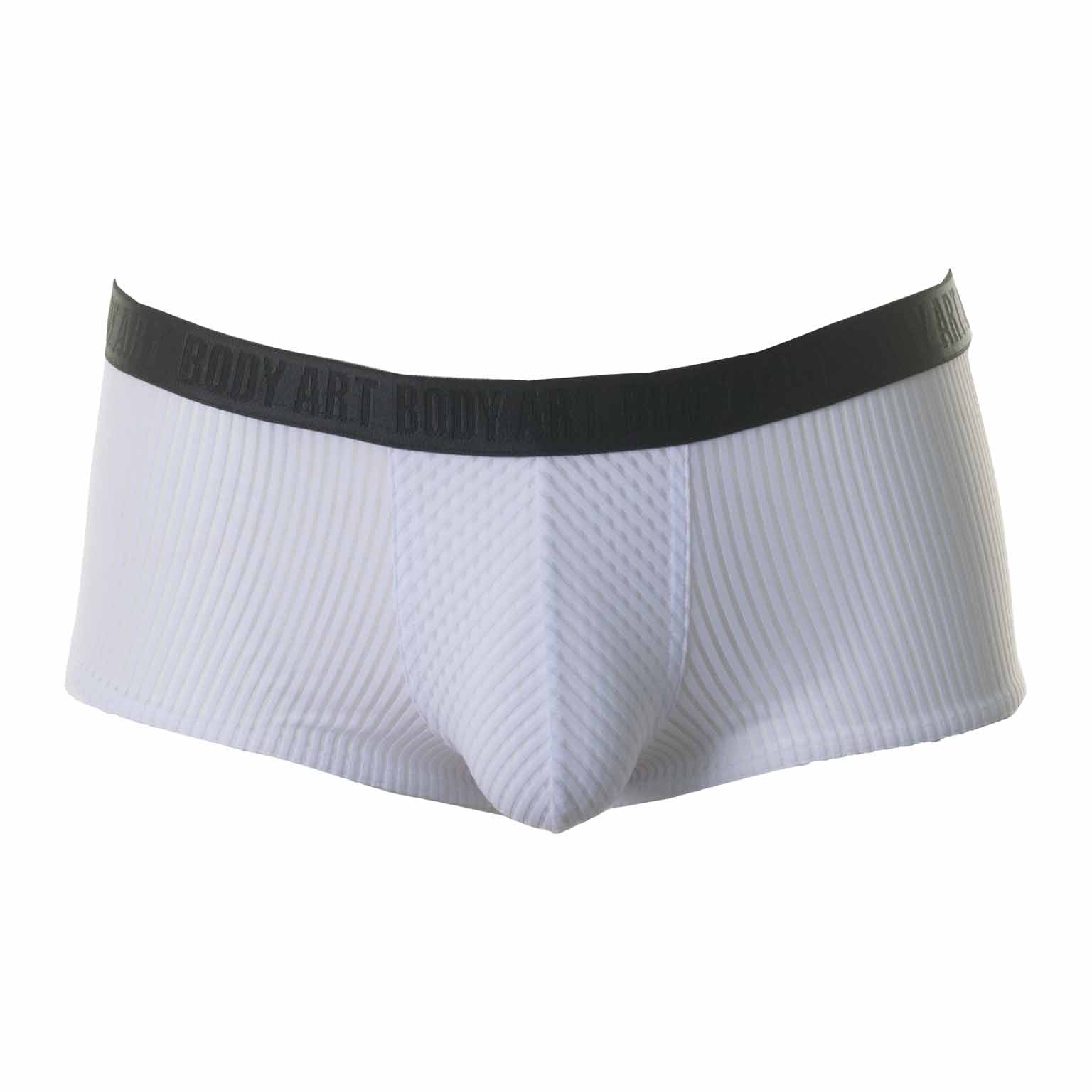 De Rhea Minipant van Body Art is een elegante, maar toch uitdagende korte boxer, die laag op de heupen wordt gedragen. De stof is rondom licht transparant waardoor de huid doorschijnt. De pouch is dubbel gevoerd, waardoor deze niet zo doorschijnend is als de stof rondom en de minipant nog wat verborgen weet te houden. De stof is gemaakt van zacht en comfortabel microfiber, wat nauw aansluit op de huid zodat deze vrijwel onzichtbaar te dragen is onder strakke kleding. De minipant heeft een elastische heupband met daarop het Body Art logo. Beschikbaar in de kleuren wit en zwart.