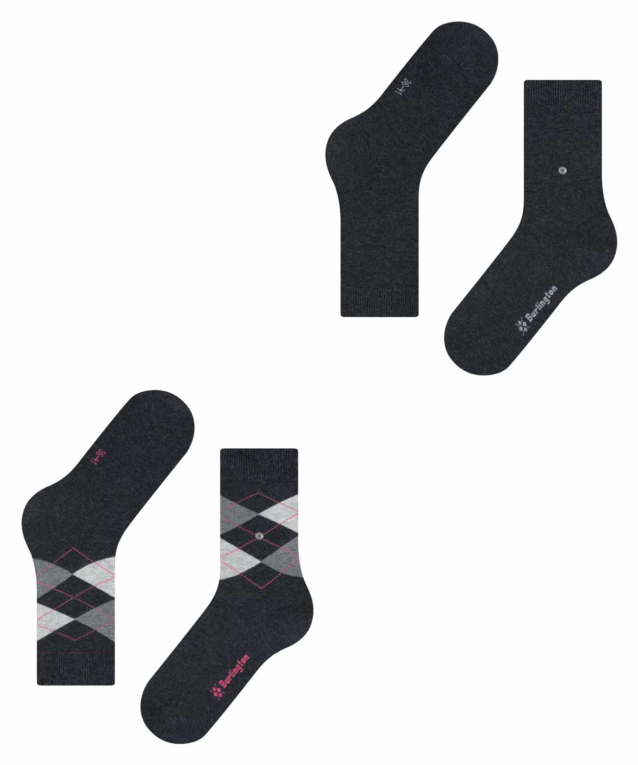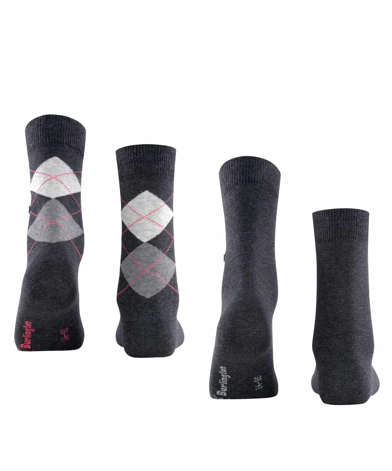 Deze dames sokken van Burlington staan garant voor een zachte steun voor de voet en zijn verkrijgbaar in een voordelige 2-pack. De sokken zijn gemaakt van gekamd katoen gemixt met polyamide voor een comfortabele fit. Naast de sok in een unikleur heeft deze multipack ook een sok met het bekende Burlington argyle-patroon, verkrijgbaar in een klassiek kleurenassortiment. Deze Every Day Mix sokken zijn perfect voor dagelijks gebruik.