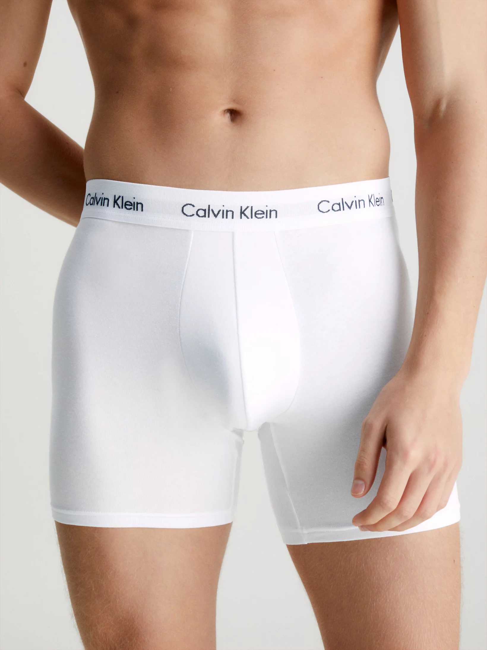 3 Boxer Briefs in een voordeelpack van Calvin Klein uit de Cotton Stretch-collectie. Deze heren boxers zijn langer dan de trunks en hebben een klassiek design, gemaakt van zachte katoen met genoeg stretch om de beste draagcomfort en pasvorm te garanderen. De boxers hebben een smalle kenmerkende elastische heupband met daarop het Calvin Klein logo. Beschikbaar in diverse kleurcombinaties.