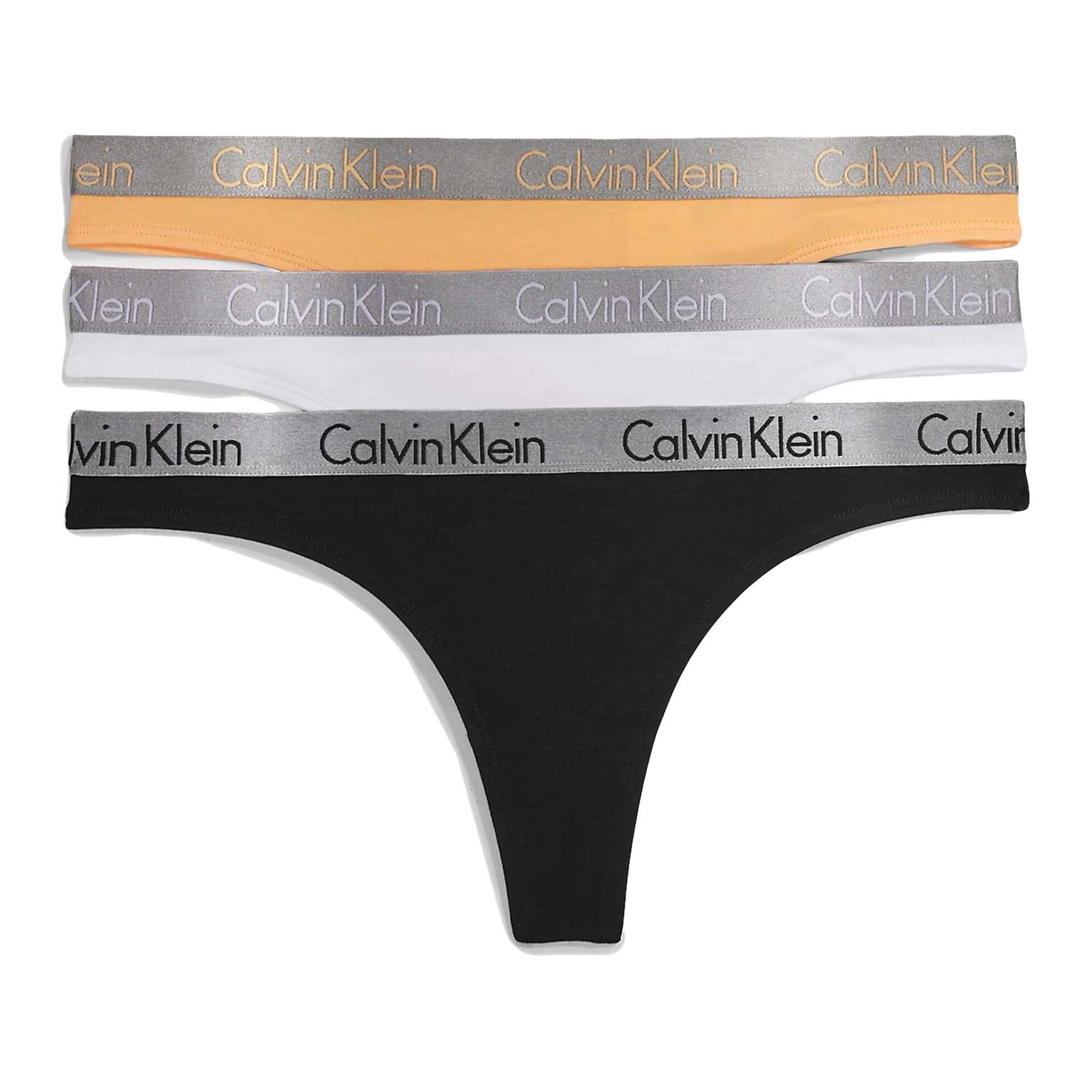 Drie effen dames strings met een contrasterende heupband van Calvin Klein in een voordeelpak, gemaakt van zacht stretch katoen wat heerlijk op de huid ligt. Op de heupband vind je het Calvin Klein logo terug. De multipacks zijn beschikbaar in twee kleur combinaties.