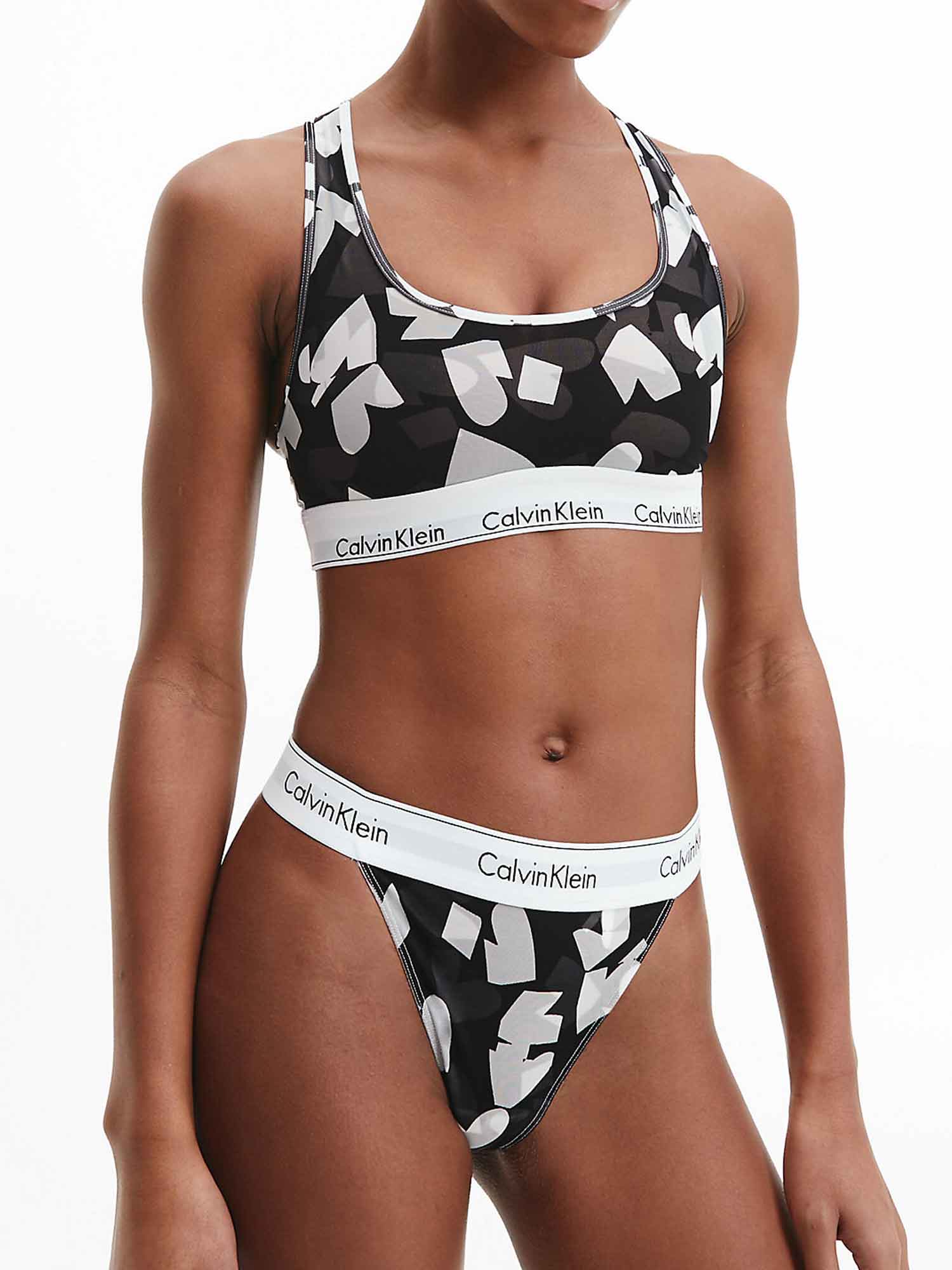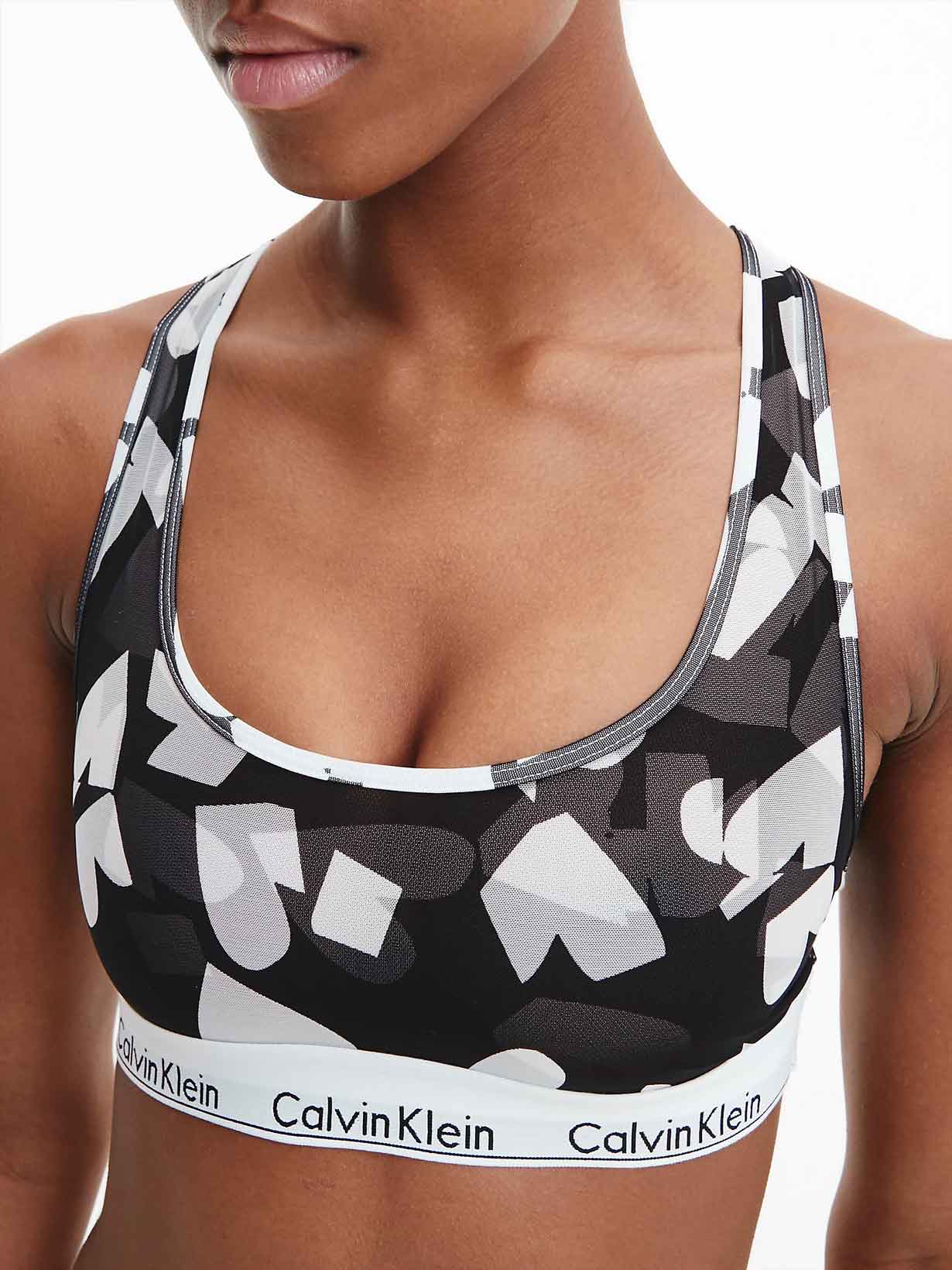 Geniet van deze dames bralette van Calvin Klein. Gemaakt van katoen, modal en elastaan, ademt deze bralette perfect en behoudt zijn vorm voor een lange tijd, terwijl het modal deze top zacht laat aanvoelen tegen de huid. Met het kenmerkende Calvin Klein-logo rond het onderste deel van deze top, houdt deze elastische band het kledingstuk stevig op zijn plaats. Verkrijgbaar in een opvallende zwart, wit en grijze grafische print. Combineer deze bralette met een bijpassende onderkant voor een complete set.