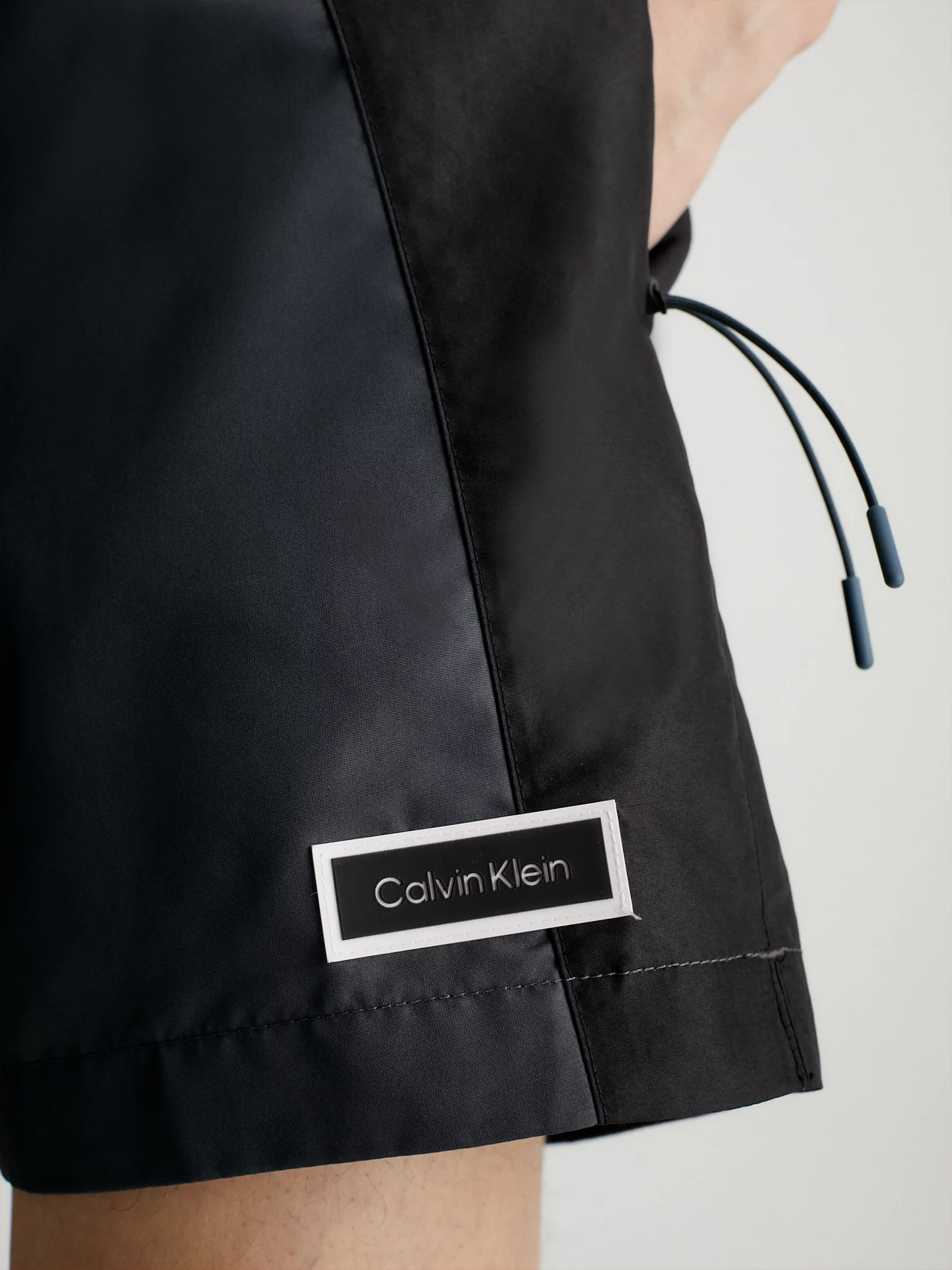 Stoere zwembroek van Calvin Klein met een opvallend ton sur ton effect op de zijkant van het short. Het zwemshort is gemaakt van 100% gerecycled polyester, wat snel droogt na een frisse duik. In de elastische tailleband bevindt zich een trekkoord om het zwemshort perfect op maat te brengen! Het zwemshort heeft handige steekzakken aan de linker en rechterzijde en een binnenbroek gemaakt van mesh materiaal voor een comfortabele fit. Het zwemshort heeft een moderne medium lengte.