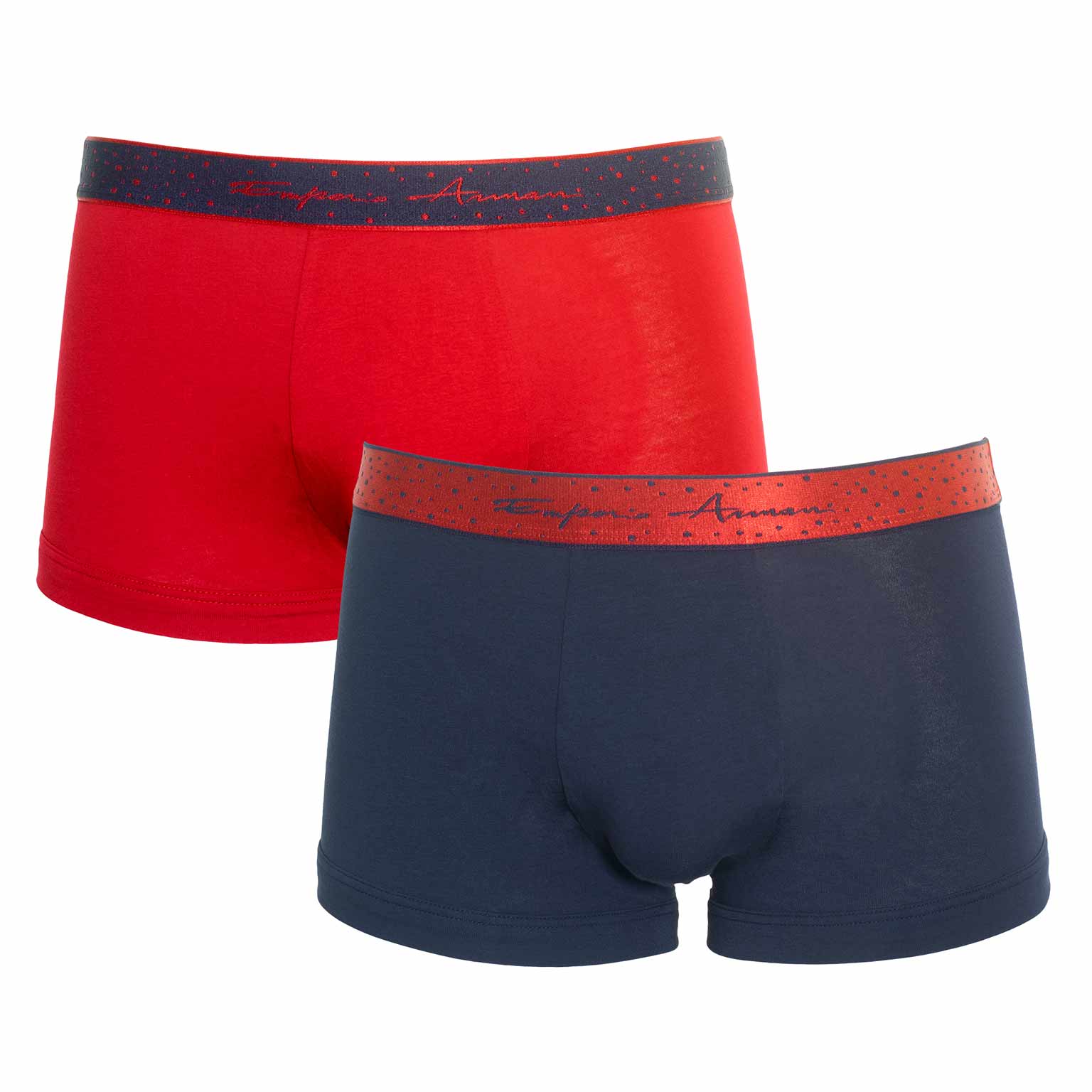 Een voordeelverpakking van 2 trunks van Emporio Armani. Verkrijgbaar in 2 verschillende kleurcombinaties. Hiermee kun je jouw ware stijl uitdrukken. Natuurlijke stoffen zijn gemakkelijk schoon te maken, ademen perfect en voeren vocht af, waardoor je je de hele dag comfortabel voelt. Perfect voor dagelijks gebruik en om op de bank te loungen.