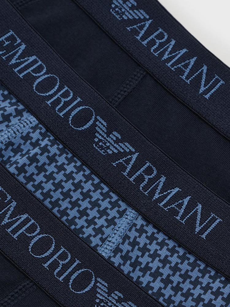 3 Trunks van Emporio Armani in een voordeelpack gemaakt van 100% katoen. De boxers zijn gebreiden in een jersey voor een elastische pasvorm en de beste fit. De perfecte heren boxer voor elke man die enkel 100% natuurlijke stoffen wil dragen. Het trunk model is een boxershort met kortere pijpjes met een chique, jong en fris uiterlijk waarbij je minder last hebt van oprollen van de pijpjes over het been. De boxer-set is verkrijgbaar in diverse kleurcombinaties, waarvan 2 boxers in een uni kleur en 1 boxer met een chique all-over print.