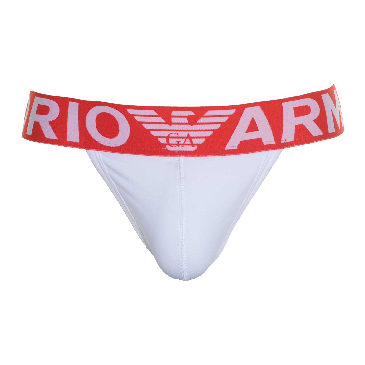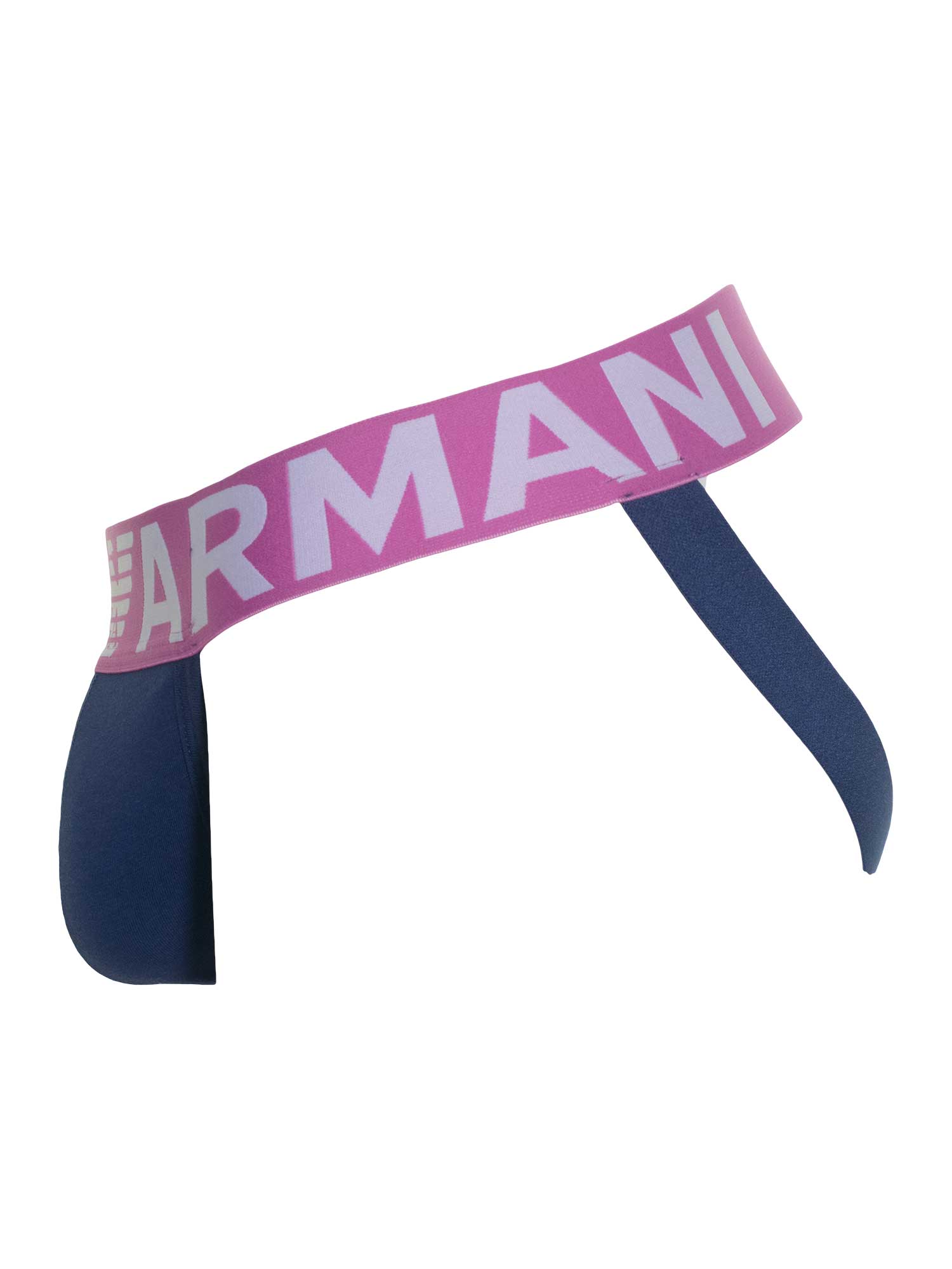 Een elastische band met een logo in een nieuw lettertype is het terugkerende thema in de hele Megalogo-collectie. Deze stretchkatoenlijn combineert het opvallende logo van het merk met het comfort van een onberispelijk ontwerp. De katoenen jockstrap voelt comfortabel aan tegen de huid, en de zachte bandjes bieden precies de juiste ondersteuning. De jockstraps hebben het Armani-logo op een contrasterende tailleband en zijn verkrijgbaar in 4 kleuren.