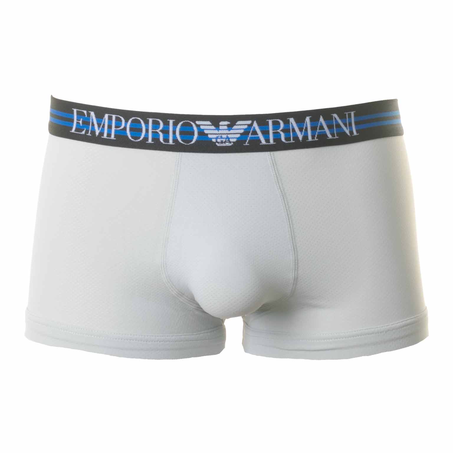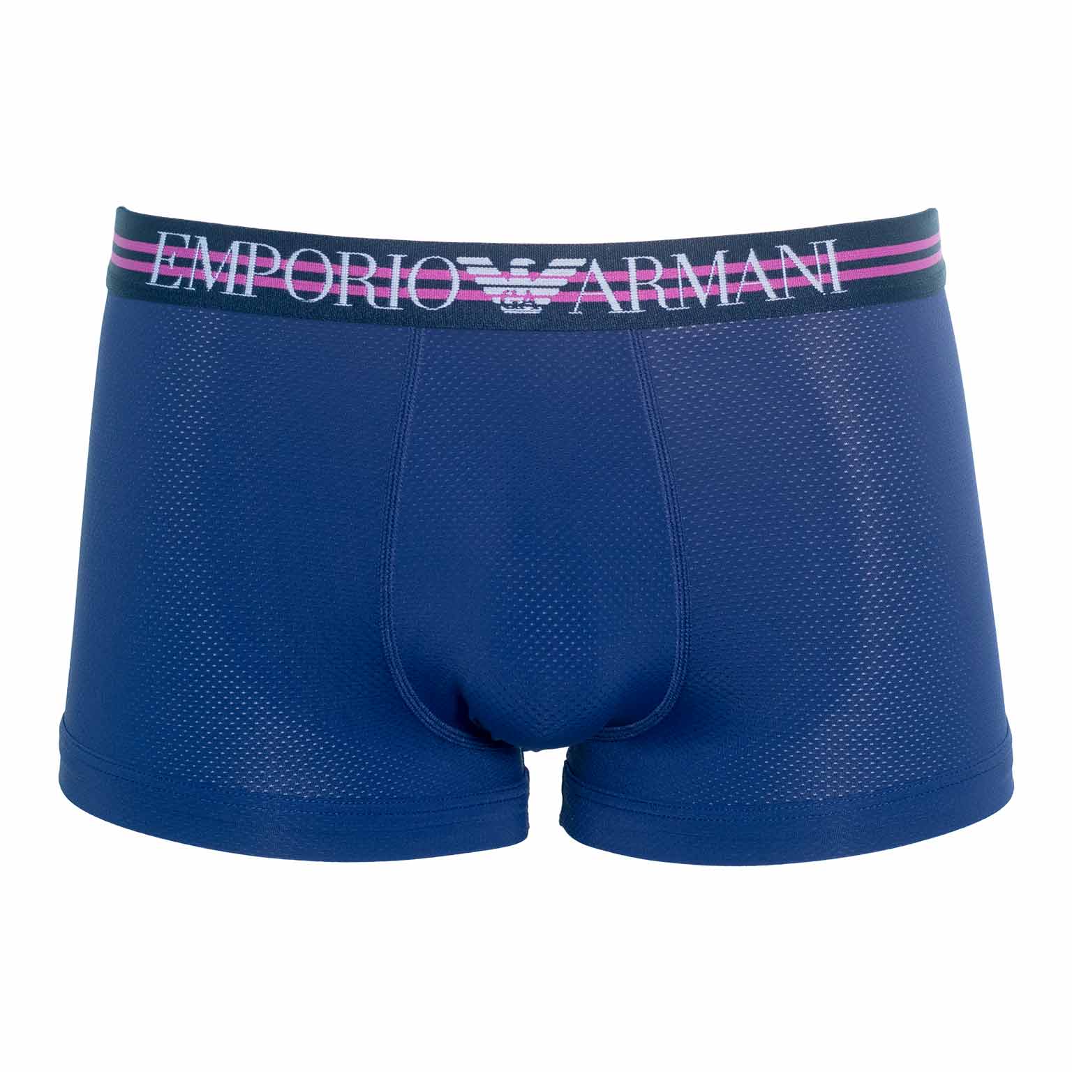 De iconische arend-tailleband accentueert deze stijlvolle mesh-microfiber trunk. Deze collectie combineert het erfgoed van Emporio Armani met een satijneffect, geleverd door de elastische band van microvezel. Het mesh-materiaal geeft deze trunk uitstekende ademend vermogen en een sportieve uitstraling. Het polyamide-materiaal biedt een geweldige vormbehoud en duurzaamheid, wat betekent dat deze trunk lang perfect blijft zitten. Verkrijgbaar in effen paars, zwart of grijs met een opvallende accentkleur in de tailleband.