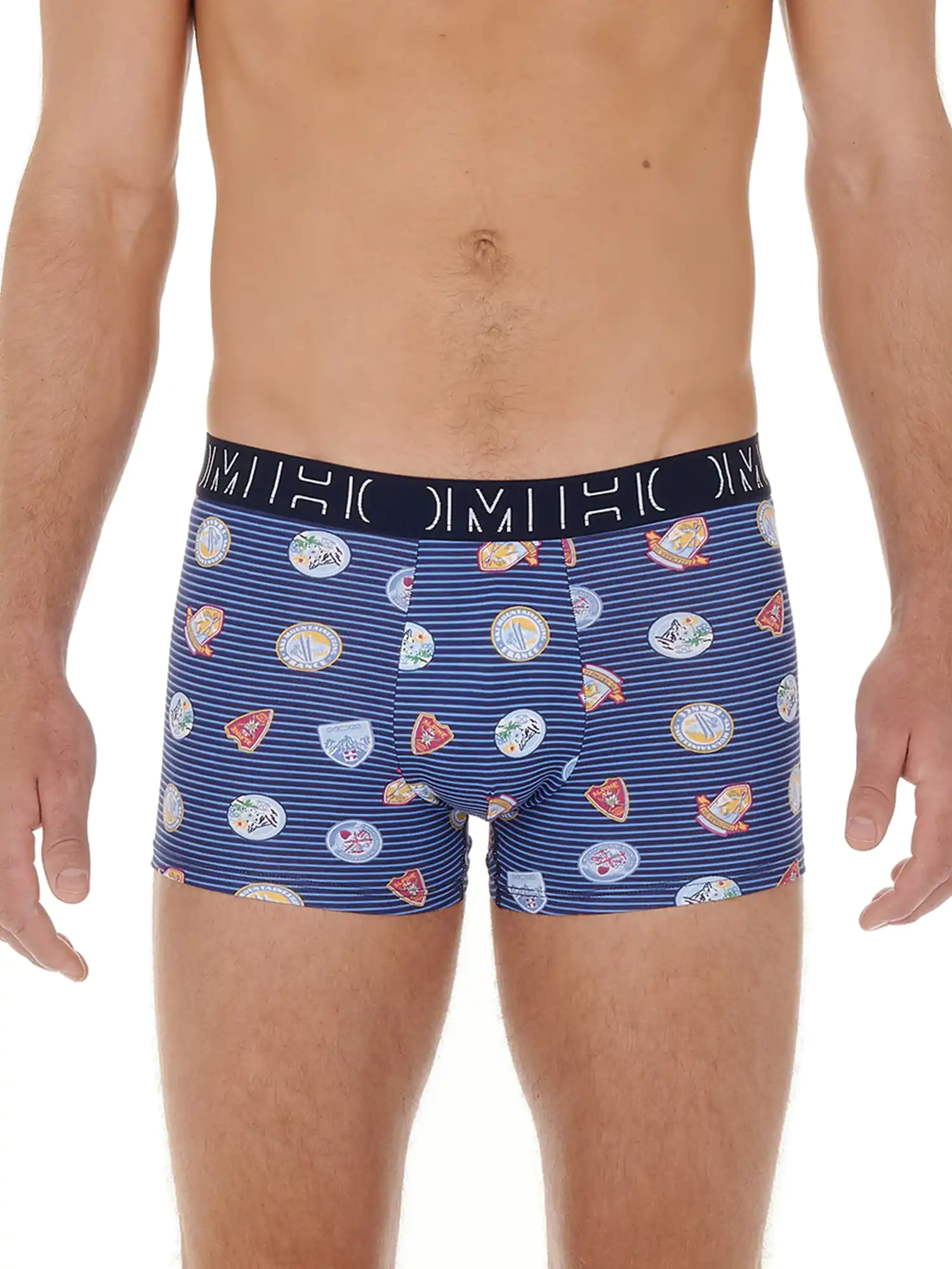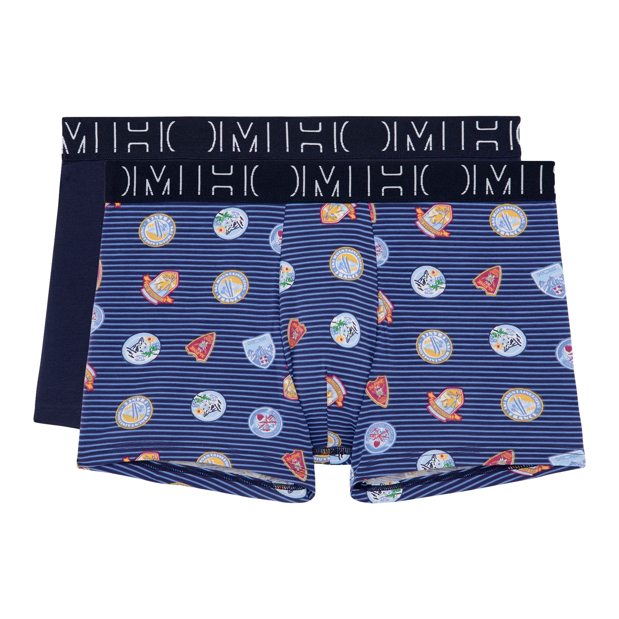 De 2p Boxer Briefs - Alf is een voordelige 2-pack. De boxers zijn onderdeel van de HOM BOXERLINES serie en gemaakt van gekamd stretch katoen. Deze heren boxers zijn geschikt voor dagelijks gebruik en uitgevoerd met een pouch aan de voorzijde voor extra ondersteuning en comfort. De BOXERLINES serie is gemaakt van een lichtere kwaliteit katoen dan de singlepacks. De Alf beschikt over één boxer in effen marine blauw en een boxer met een print met wintersport embleems.