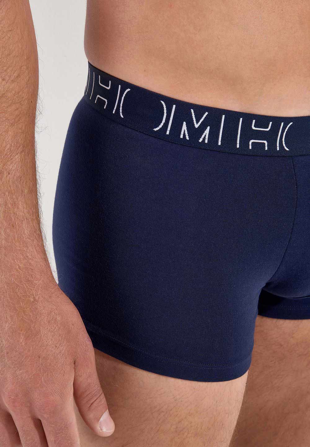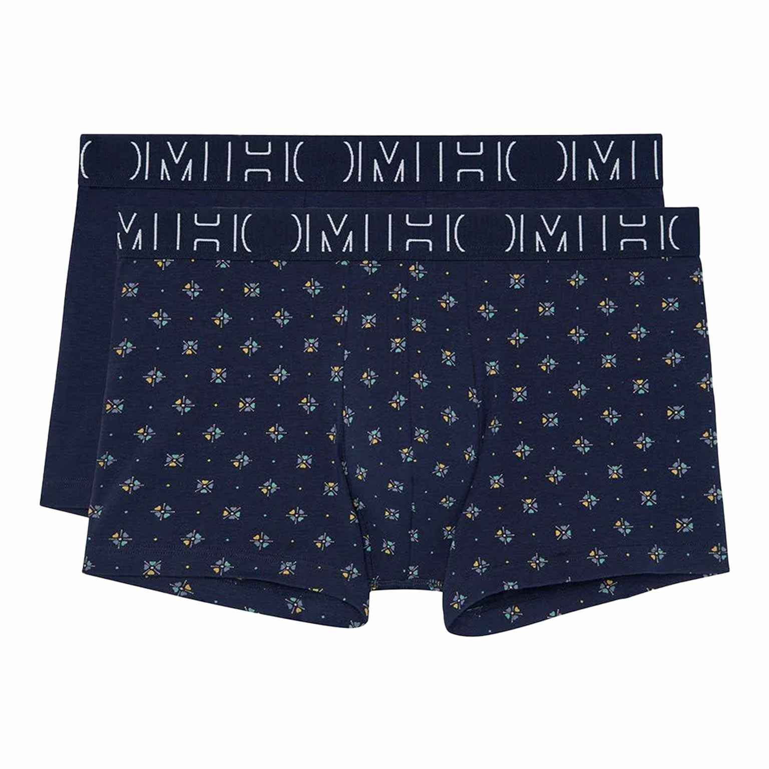 De Davide value-pack beschikt over één boxer in effen marine blauw en een boxer met een print.