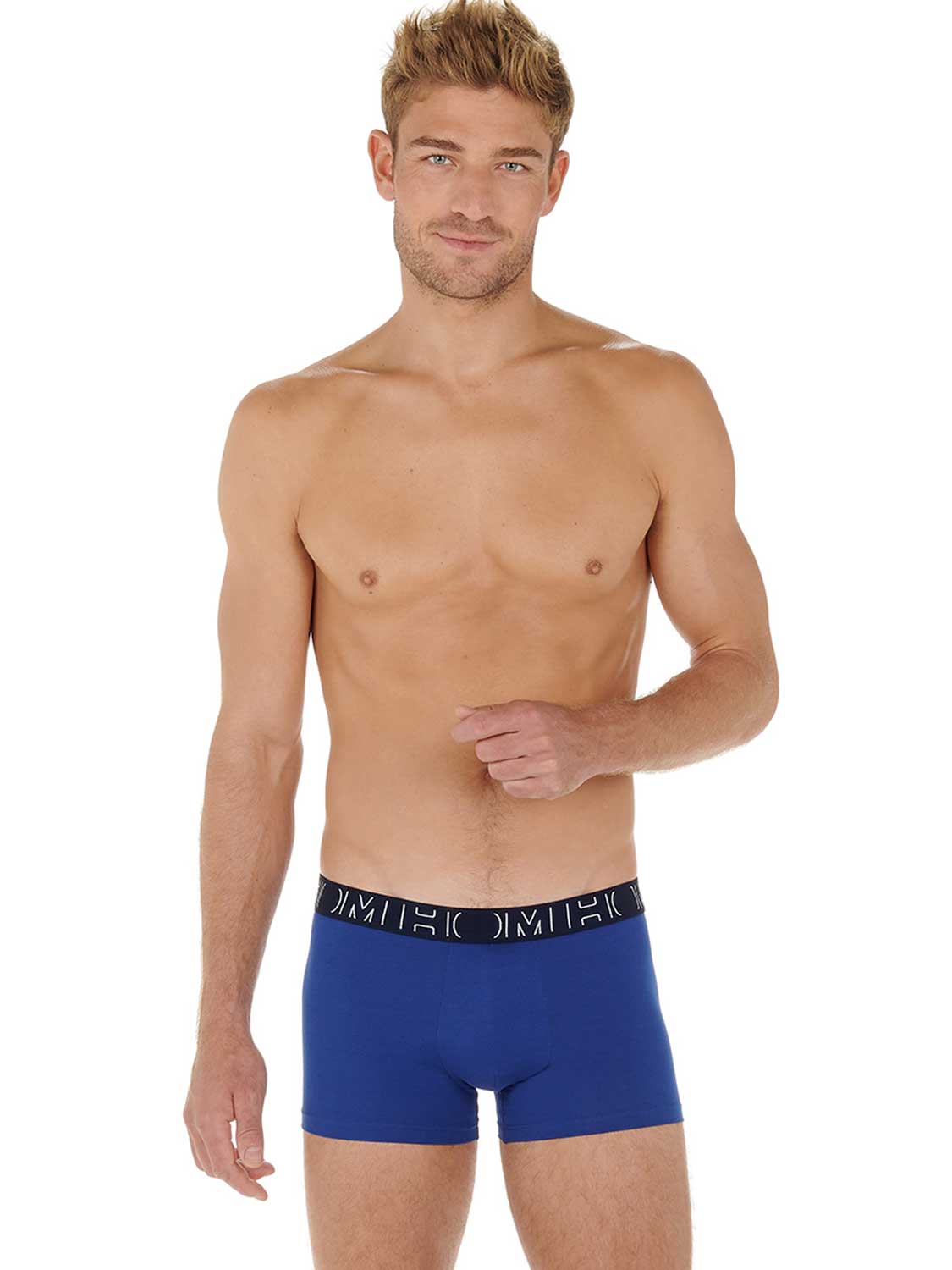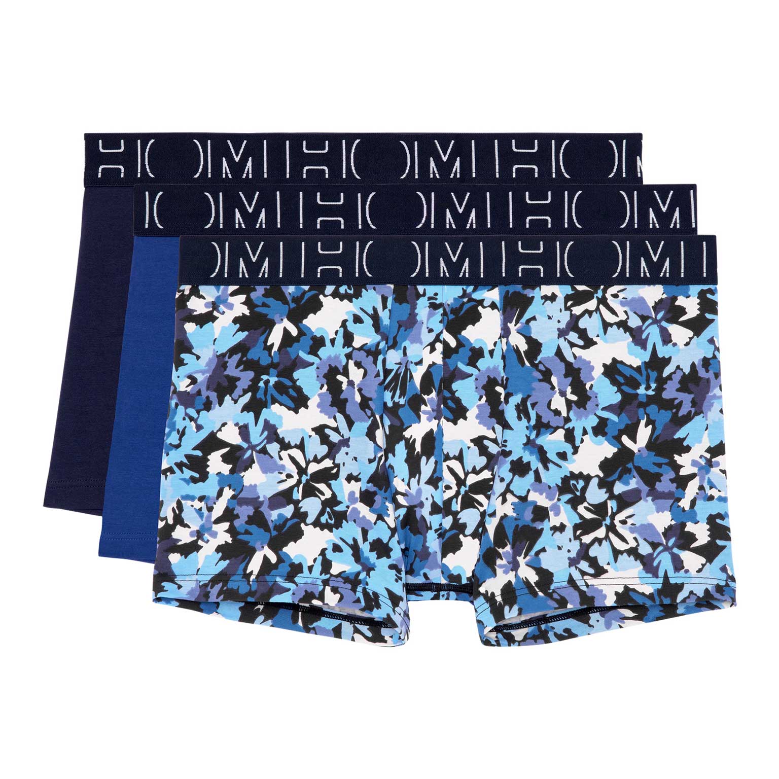 De 3p Boxer Briefs - Rocky is een voordelige 3-pack. De boxers zijn onderdeel van de HOM BOXERLINES serie en gemaakt van gekamd stretch katoen. Deze heren boxers zijn geschikt voor dagelijks gebruik en uitgevoerd met een pouch aan de voorzijde voor extra ondersteuning en comfort. De BOXERLINES serie is gemaakt van een lichtere kwaliteit katoen dan de singlepacks. Deze voordeelpack uitgevoerd in diverse blauwtinten beschikt over 2 effen boxers en 1 met een print.