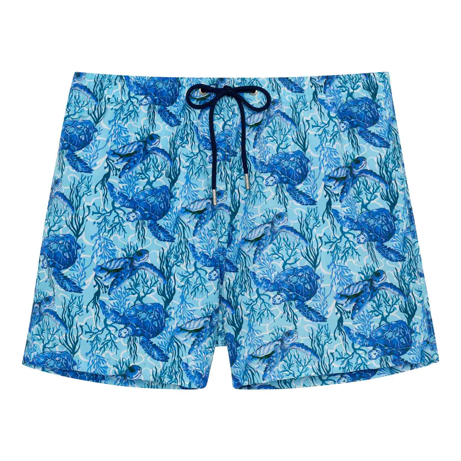 De Tartane - Beach Boxer heeft een verfrissende dierenprint uit de onderwaterwereld. Blauwe schildpadden op een turquoise achtergrond sieren dit aquatische ontwerp dat doet denken aan de zeebodem van de Caraïbische eilanden. De schildpad is een symbool van wijsheid, moed en doorzettingsvermogen. De Beach Boxer heeft steekzakken aan de linker- en rechterzijde in de naad en bevat een binnenvoering voor extra comfort en ondersteuning. Het trekkoord in de tailleband maakt het mogelijk om de Beach Boxer perfect af te stellen op jouw maat, zodat je met vertrouwen een verfrissende duik kunt nemen. De stof is gemaakt van polyester, waardoor de Beach Boxer snel droogt. Ideaal voor op het strand of op het terras daarna.