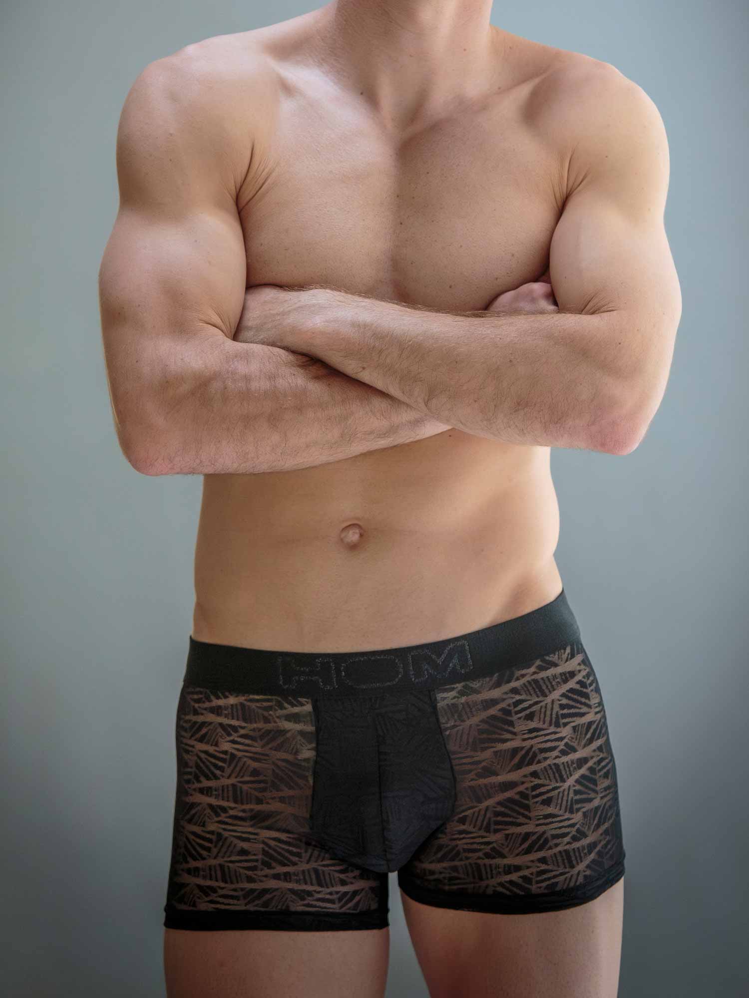 Ontdek de Ari - Boxer Brief van HOM, een stoere sensuele boxer uit de HOM Temptation serie. De Ari is gemaakt van zwart kant met een geometrische print, voor het stoere en tegelijkertijd sensuele effect. De transparante stof speelt op erotische wijze met de huid voor de ultieme verleiding.