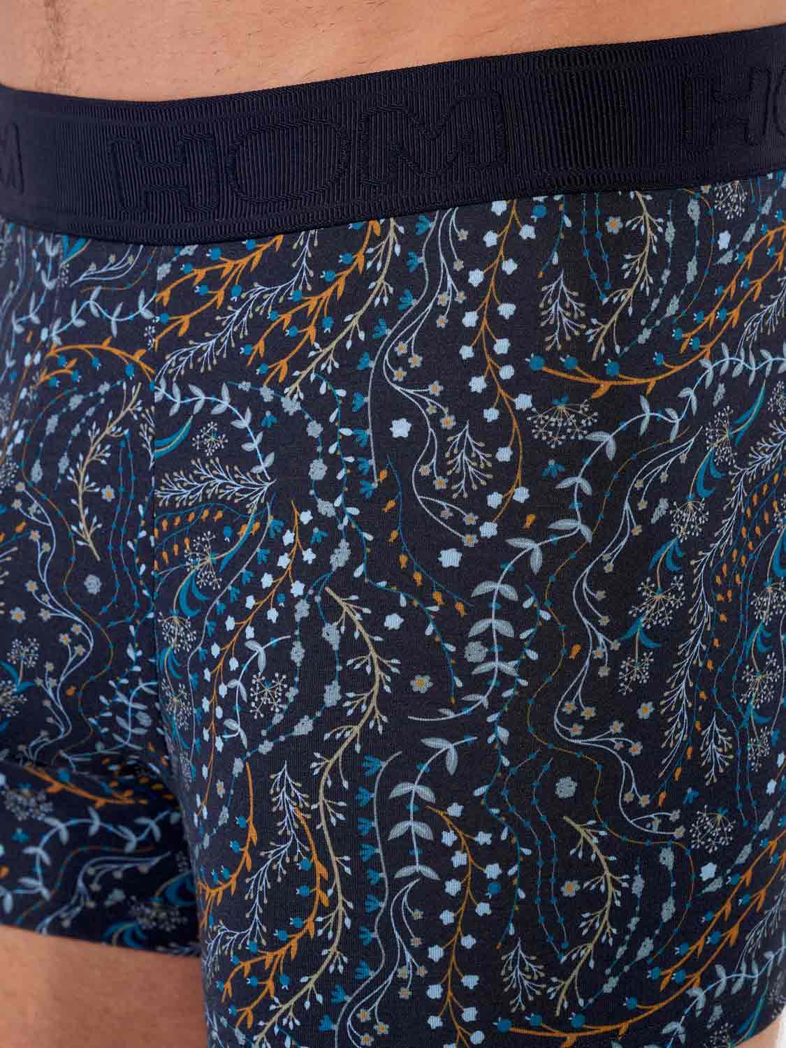 De Fontainebleau boxer briefs combineren een comfortabele pasvorm met een stijlvolle, natuurlijke uitstraling. Het botanische dessin, met fijne takjes en bladeren op een donkerblauwe achtergrond, geeft een subtiel seizoenstintje zonder in te leveren op elegantie. De ademende katoen-modal stof en zachte voering aan de voorzijde zorgen voor een aangenaam draaggevoel, de hele dag door.