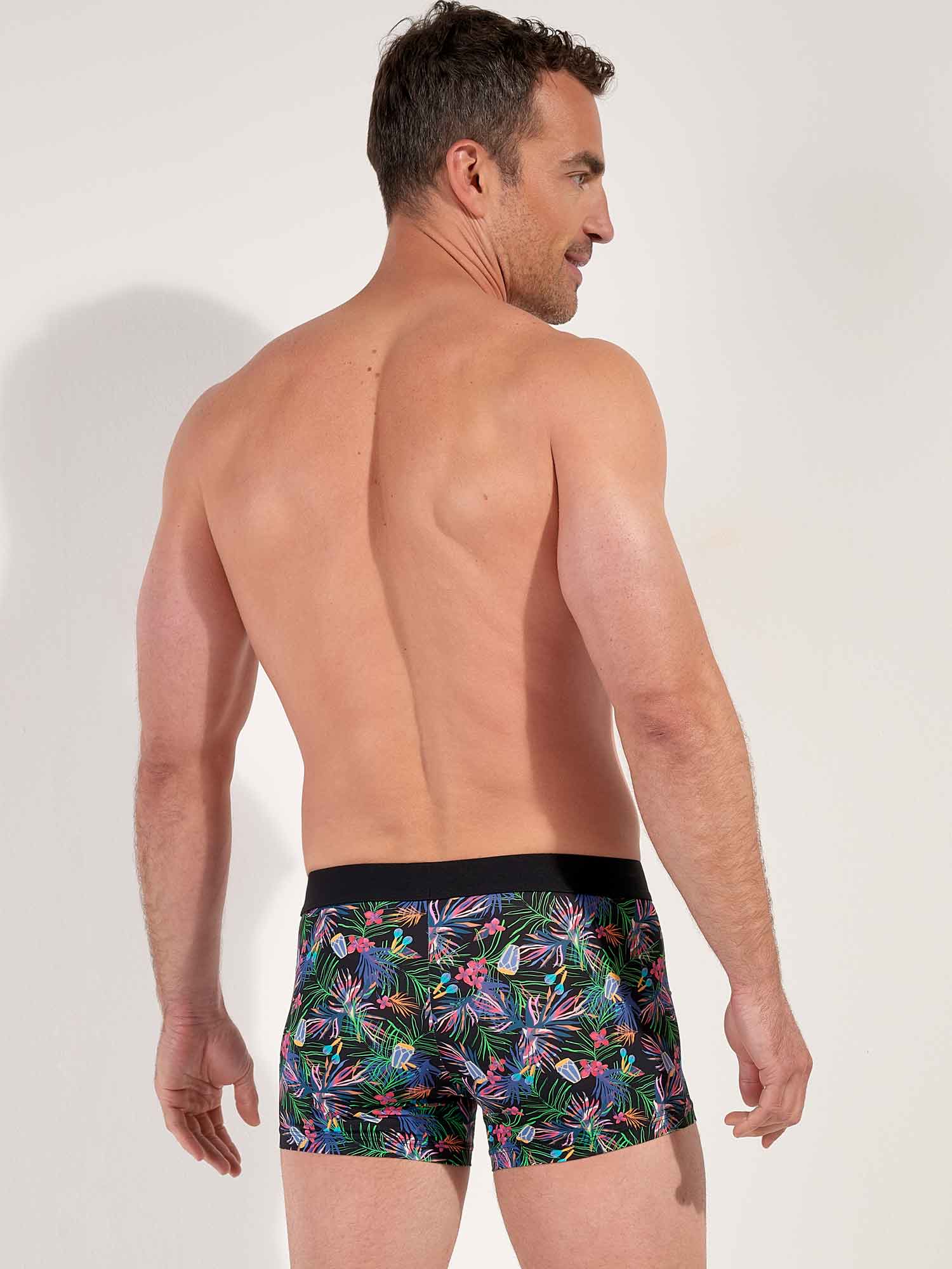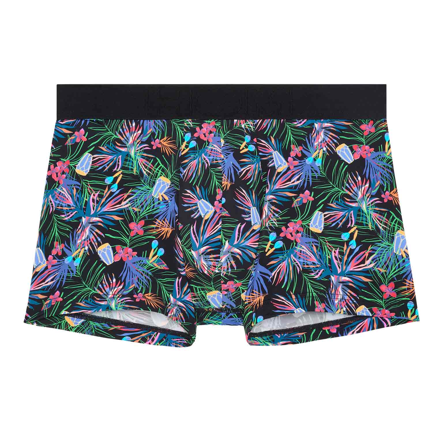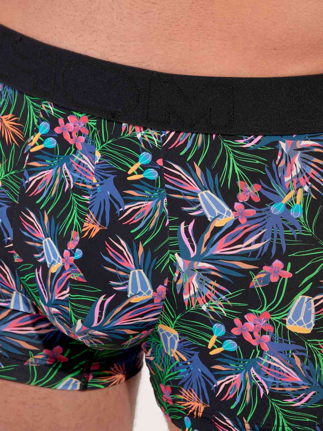 De Havana boxer briefs voor heren vieren de joie de vivre en feestelijke energie van Cubaanse nachten. De levendige bloemen en ritmische motieven spatten van kleur en doen denken aan warme zomeravonden, muziek en dans. Dankzij het zachte, soepele microfiber voelt deze boxer aan als een tweede huid en blijft hij de hele dag comfortabel. Microfiber is licht, zeer elastisch en ademend, voert vocht goed af, droogt snel en kreukt nauwelijks, ideaal voor dagelijks gebruik en op reis.