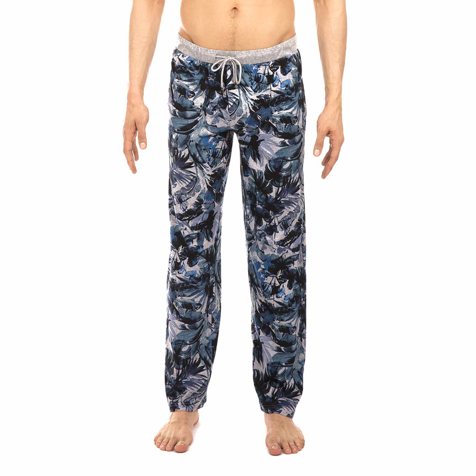 De Jungle - broek heeft boorden aan de pijpen voor een stevige pasvorm, wat ook helpt om de warmte vast te houden. De broek heeft een junglebladprint in blauw, grijs, zwart en wit. De taille is voorzien van een trekkoord voor een perfecte, op maat gemaakte pasvorm. Aan de linker- en rechterkant bevinden zich zijzakken, zodat je handen ook heerlijk warm blijven!