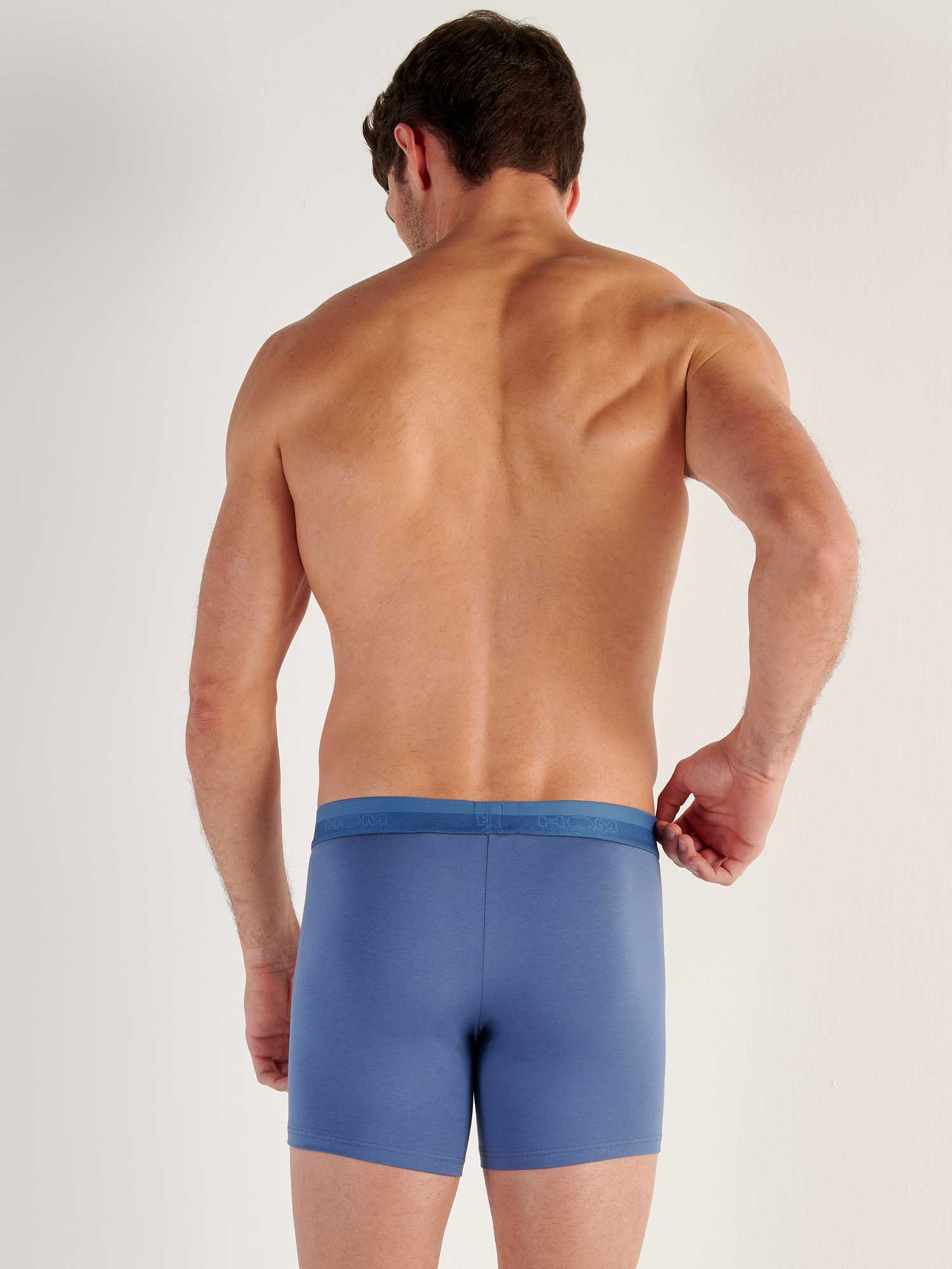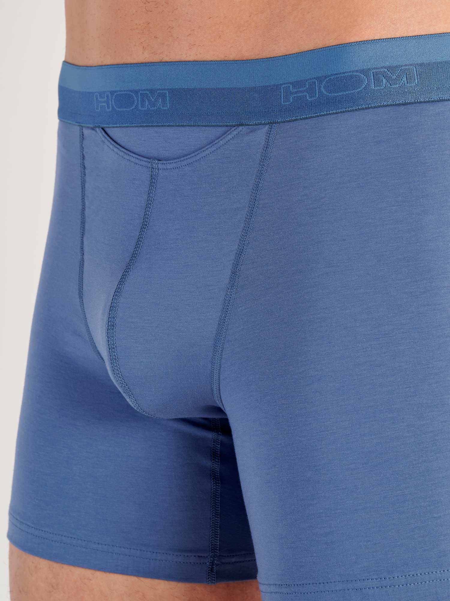 De HO1 Original - Long Boxer voor het beste draagcomfort en grootste gemak van HOM. De boxer heeft langere pijpen dan de reguliere boxer brief en is uiteraard uitgevoerd met de horizontale opening (gulp) en gemaakt van een mix van modal en katoen voor een zachte touch. Katoenmodal ademt goed en drijft vocht perfect af door de toevoeging van modal. De stof is gemakkelijk te reinigen en zeer bestendig tegen slijtage door wrijving. De gemerceriseerde heupband geeft een licht glanzend effect voor een luxe uitstraling en heeft het HOM logo in ton sur ton.
