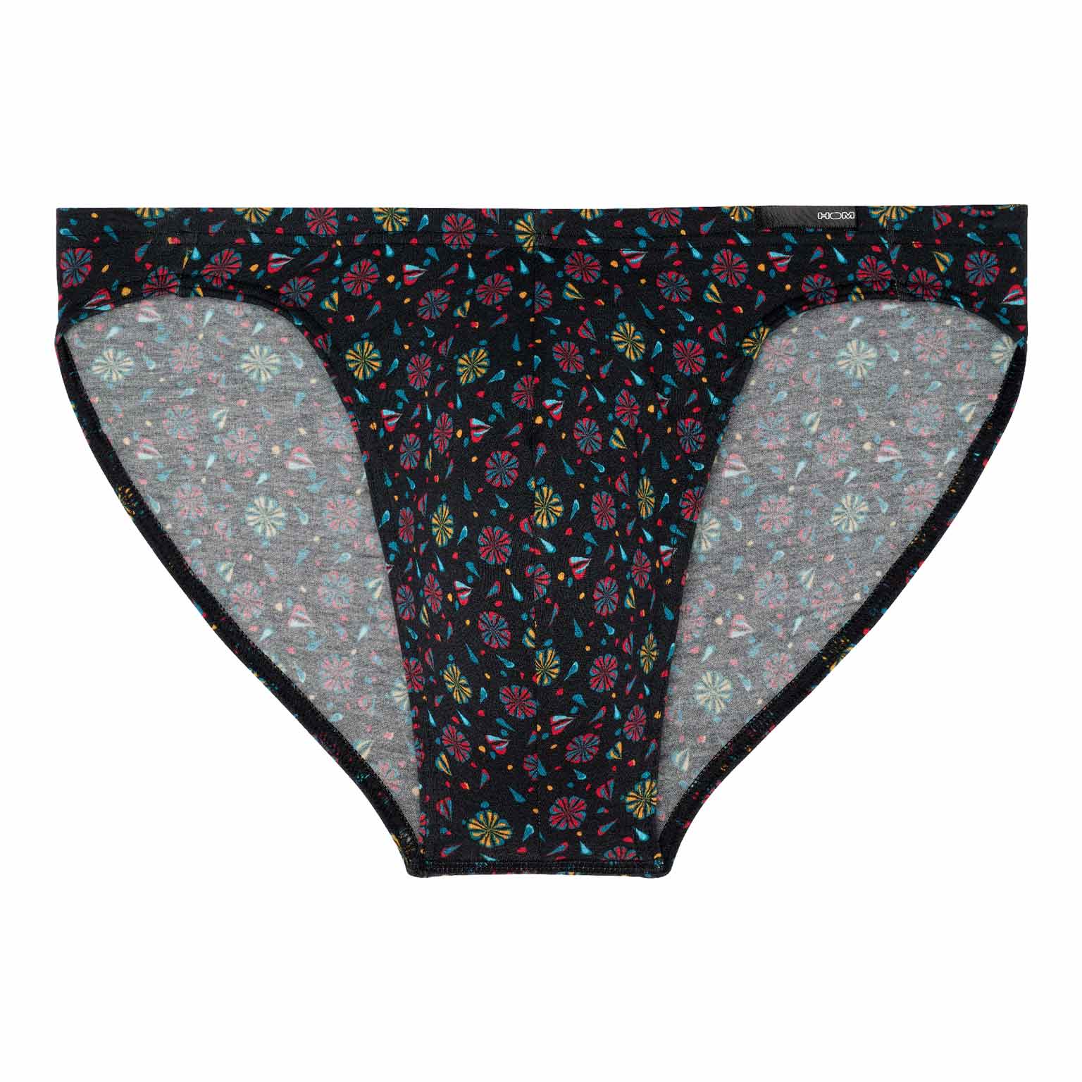 De Menorca - Comfort Micro Briefs is gemaakt van hoogwaardig katoenmodal en uitgevoerd met een comfort heupband, waarbij de stof is doorgetrokken en naar binnen is geslagen over de elastische band voor extra comfort. De heren micro slip heeft een abstracte bloemenprint op een zwarte achtergrond. Linksvoor op de comfortband is een klein label van HOM geplaatst.