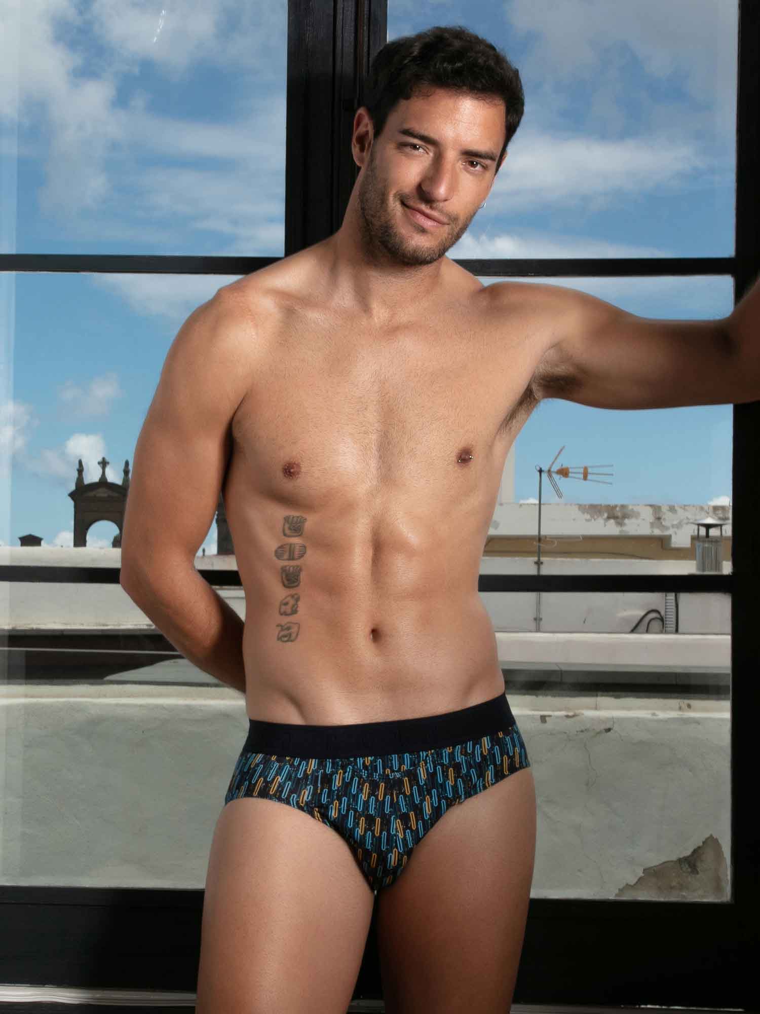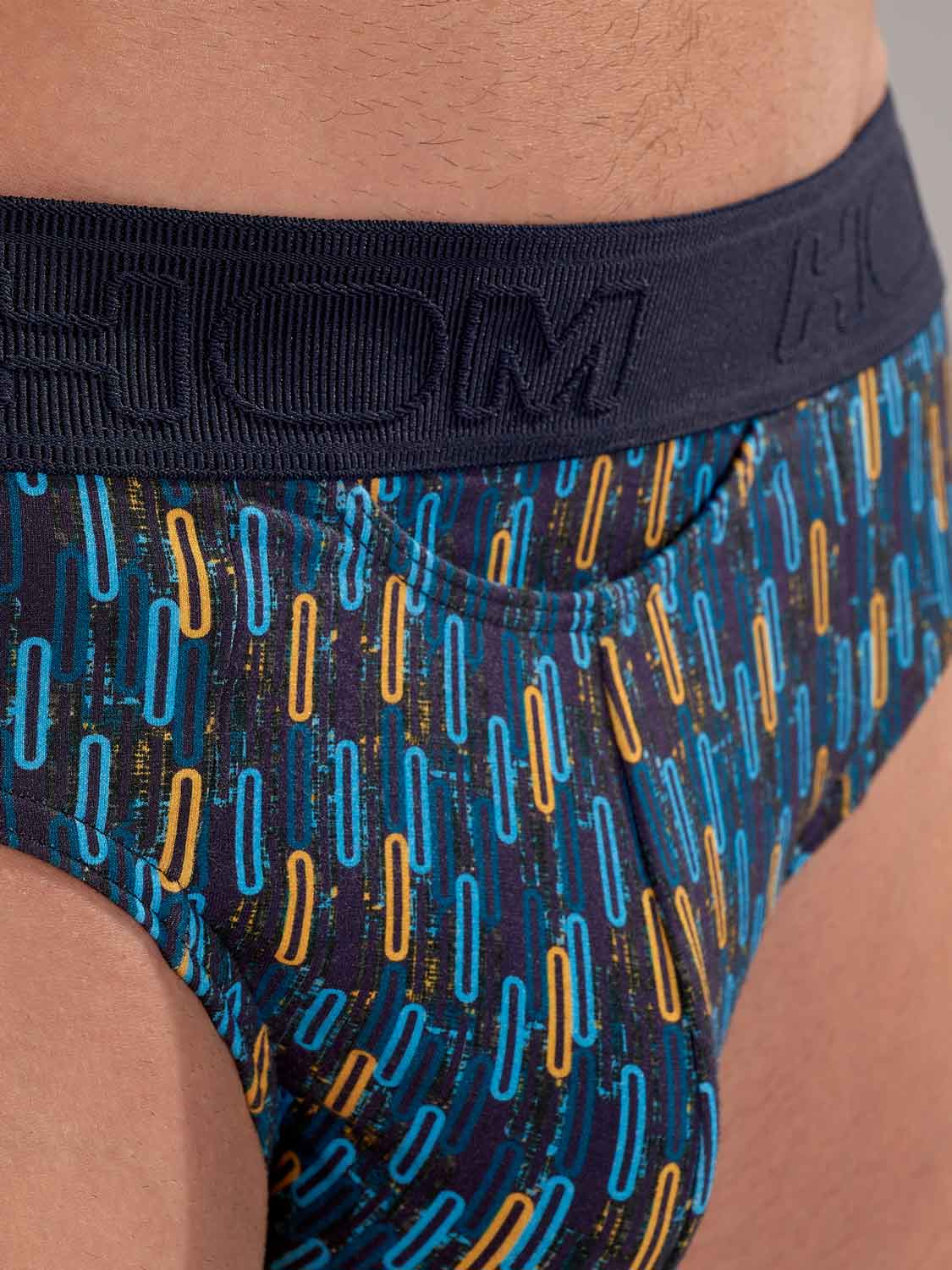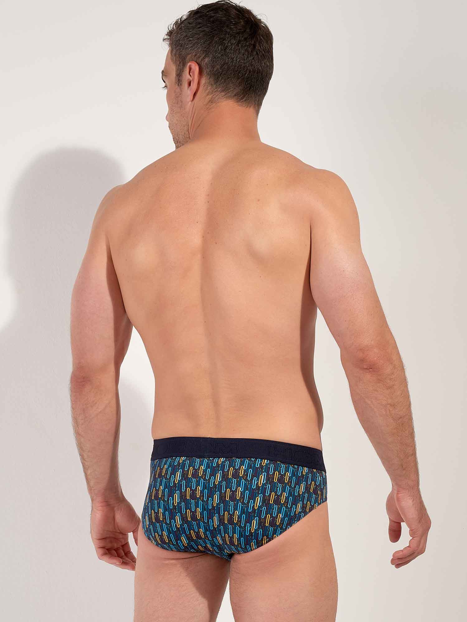 De HOM Westgate mini briefs HO1 geven je een strakke, gestroomlijnde look met dezelfde retro energie. De contrasterende ovale motieven in blauw en geel op een navy achtergrond verwijzen naar de dynamiek van geometrische kunst uit de jaren 50, geïnspireerd door de visuele durf van Las Vegas. Gemaakt van een premium mix van katoen, modal en elastaan voelt de stof uitzonderlijk zacht en soepel aan, en blijft hij sterk voor dagelijks gebruik. De gepatenteerde HO1 horizontale opening, ook wel de horizontale fly, biedt ergonomisch comfort en makkelijke toegang voor zowel rechts- als linkshandigen. Een subtiele elastische versteviging aan de voorzijde zorgt voor een natuurlijke, precieze pasvorm, terwijl de voile afwerking de lijnen onder kleding clean en verfijnd houdt. Een zelfverzekerde essential met onmiskenbare HOM stijl.