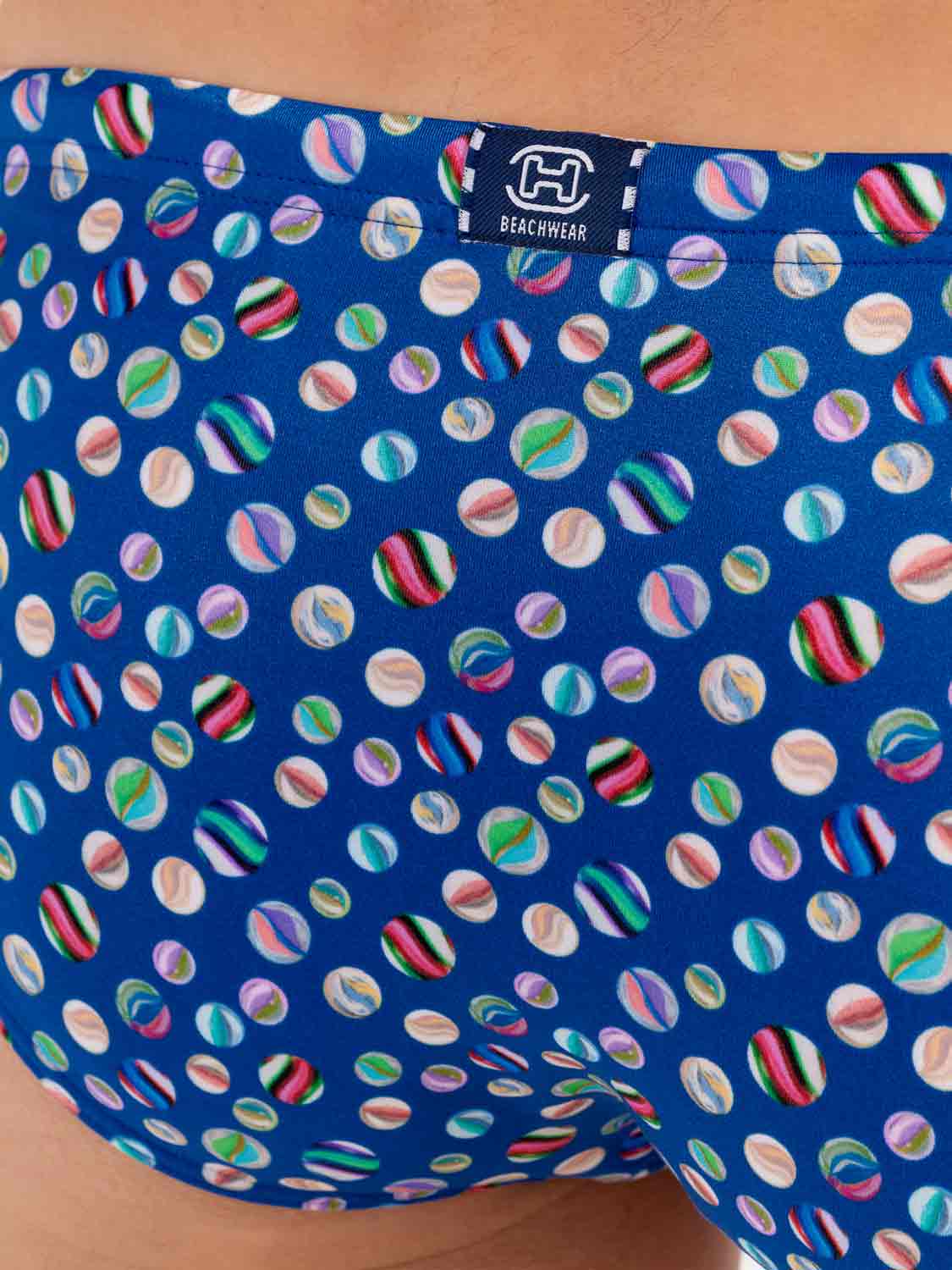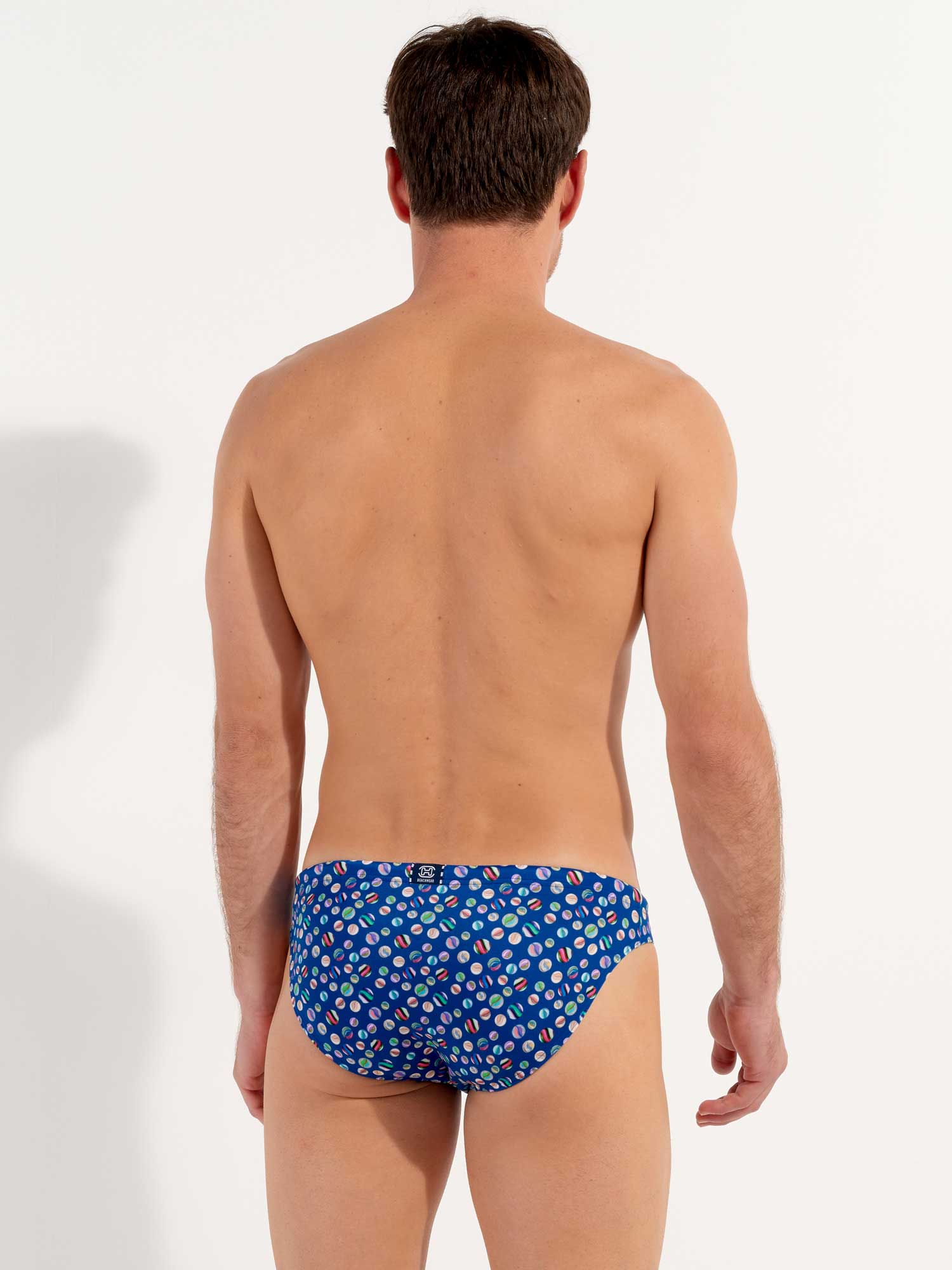 De Socoa - Swim Micro Briefs maken deel uit van de zomercollectie zwemkleding van HOM. Figuratieve print met gekleurde knikkers op een blauwe achtergrond voor een speelse en nostalgische stijl. De stof is elastisch, sluit mooi aan op de huid en is niet doorschijnend. De zwembroek heeft een zachte binnenvoering van schuim voor extra comfort. Omdat dit micro briefs zijn, zitten ze lager op de heupen. Het trekkoord in de tailleband zorgt ervoor dat je ze perfect op maat kunt afstellen voor een stevige en comfortabele pasvorm.