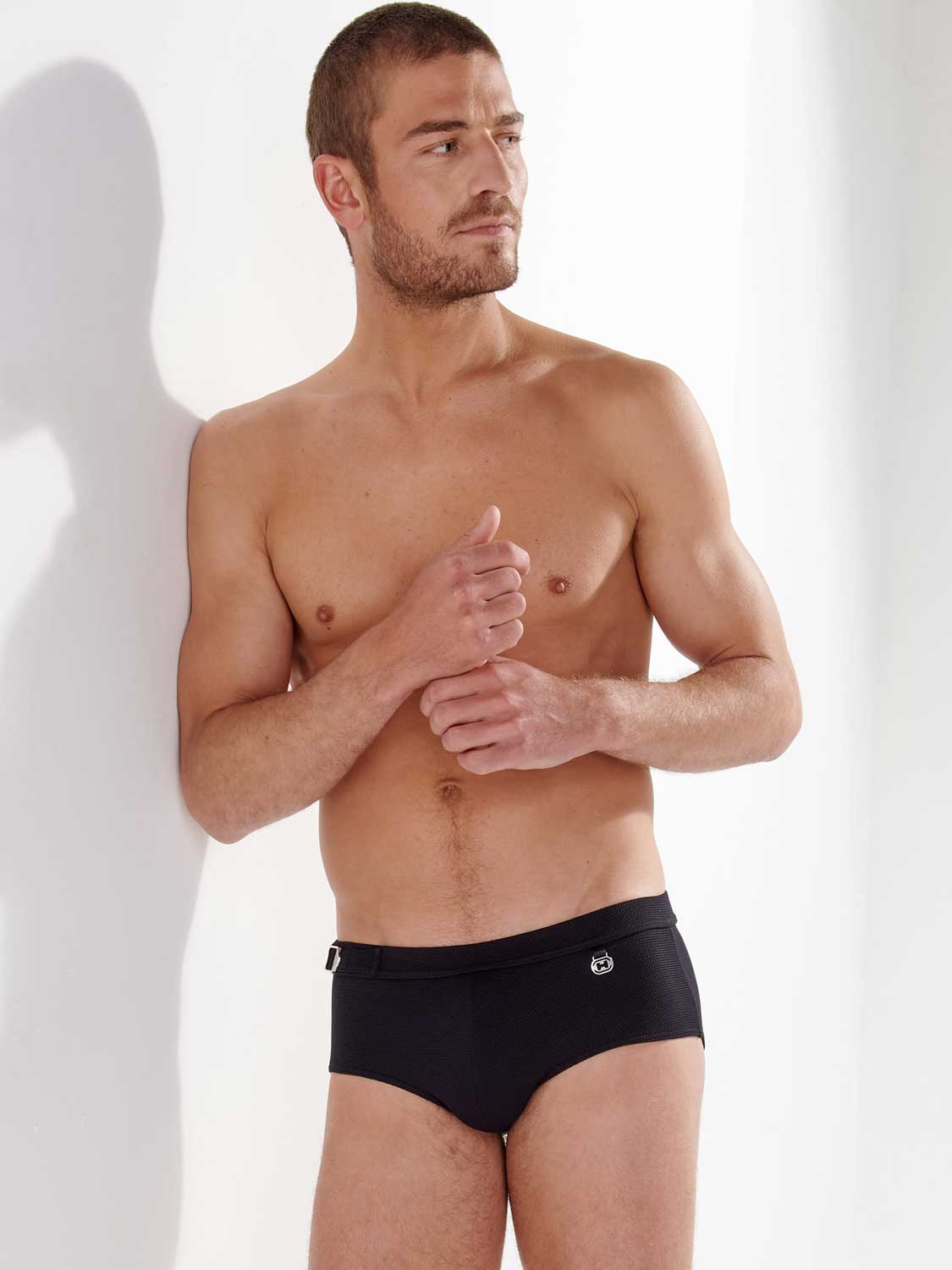 De Ian - Swim Midi Briefs uit de Heritage lijn van HOM, met een eigen unieke styling, voor de modebewuste man, die graag goed voor de dag komt en houdt van een de eigentijdse heritage look. De zwembroek is uitgevoerd in de kleur zwart en jacquard gebreid voor een subtiel patroon en reliëf. Samen met de riem en gesp linksvoor heeft deze zwembroek een eigentijdse James Bond stijl, voor een opvallende elegante look. De zwembroek betreft een midi model die je hoog op de heupen draagt. De zwembroek is laag uitgesneden waardoor de zwembroek robuust voor de dag komt. Een prachtig mode-item voor op het strand of in het zwembad.