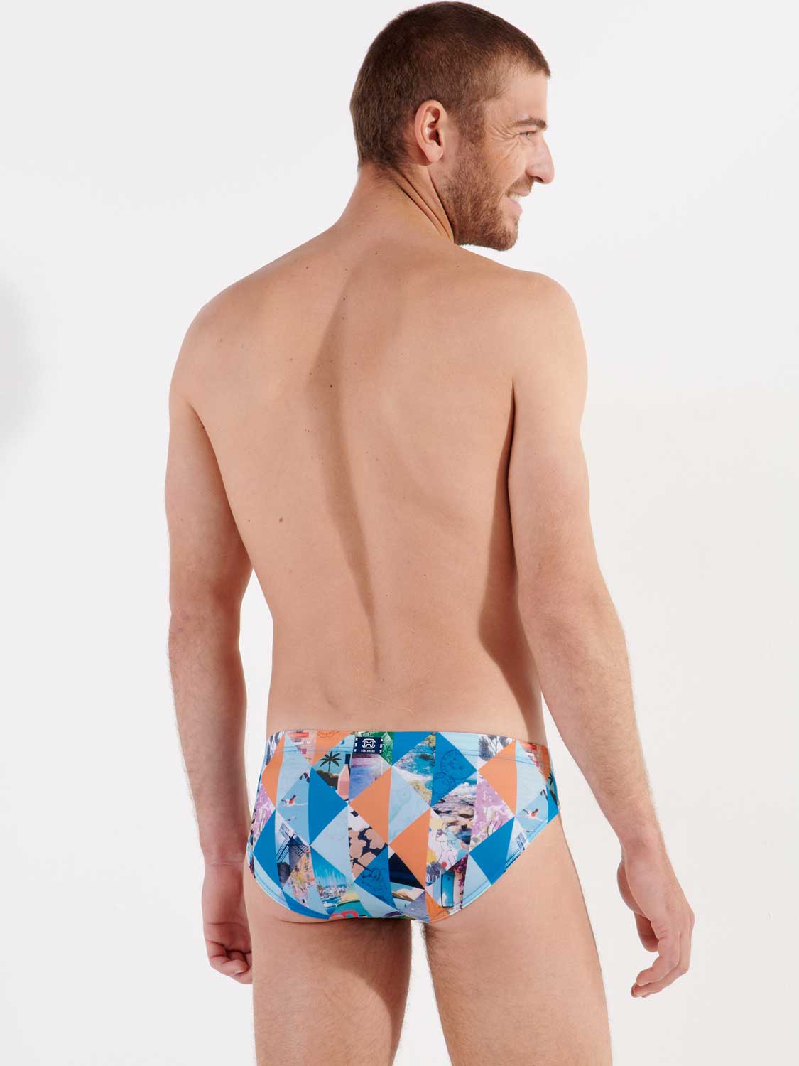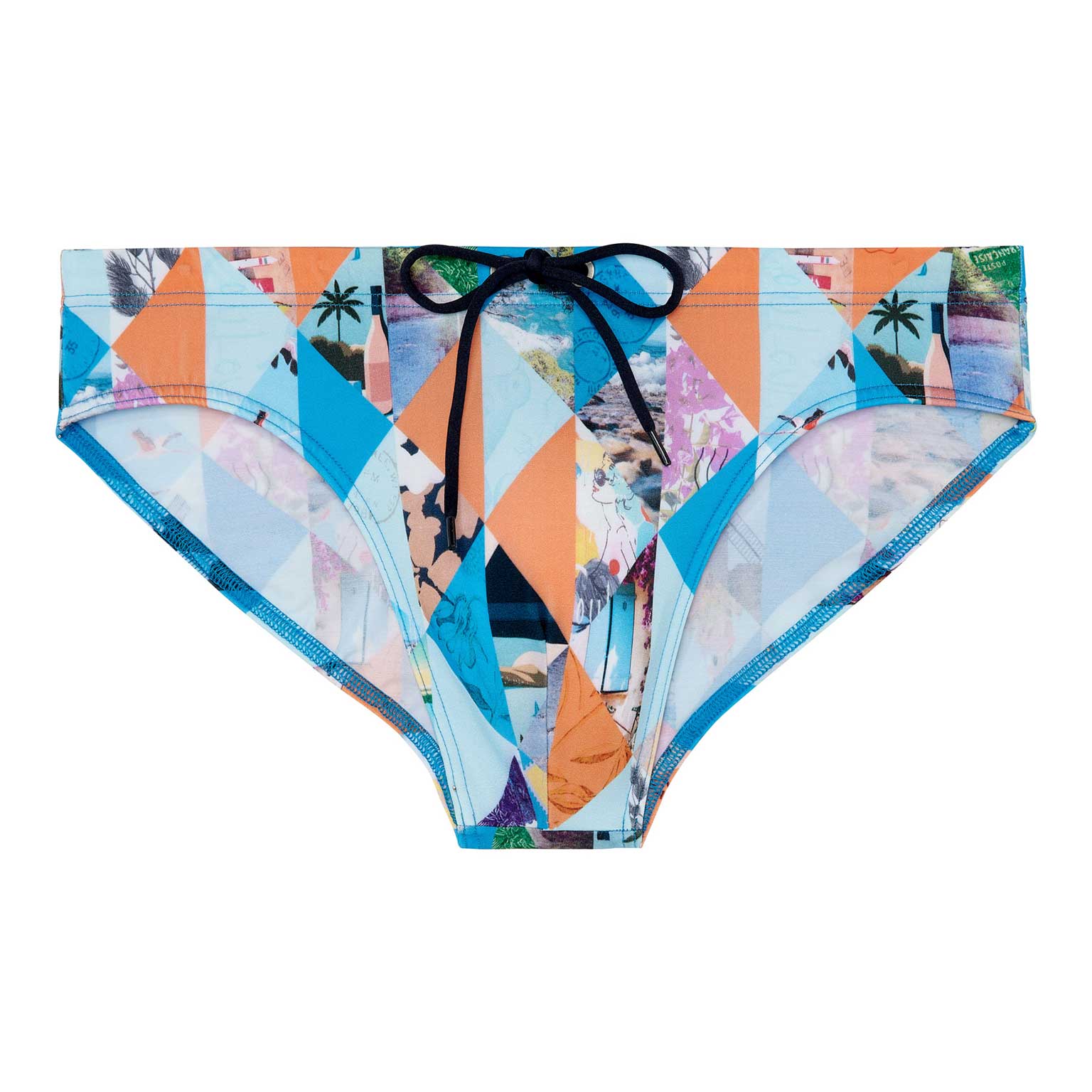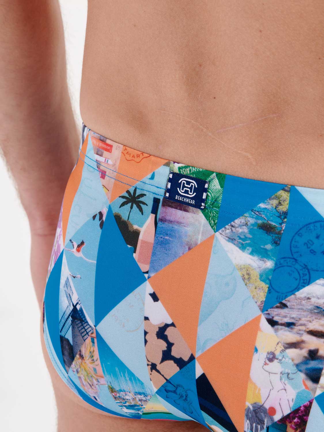De Port Cros - Swim Mini Briefs straalt een vakantiegevoel uit met zijn geometrische kleurrijke print met foto's van prachtige vakantieoorden langs de zee, met lange stranden. De stof van de zwembroek is elastisch, sluit mooi aan op de huid en schijnt niet door. Het betreft een mini briefs model, waardoor je de zwembroek hoger op de heupen draagt. Met het trekkoord in de heupband breng je de zwemshort perfect op maat. Een prachtig mode-item voor op het strand of in het zwembad.