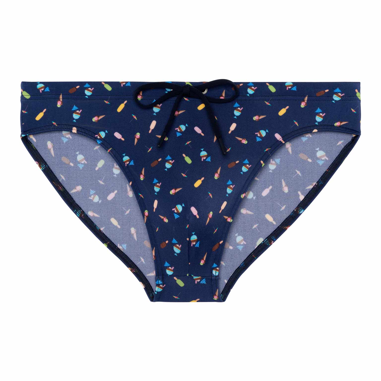 De Summer - Swim Mini Briefs maken deel uit van de zomercollectie zwemkleding van HOM. De print toont kleurrijke ijsjes op een marineblauwe achtergrond en roept de zoetheid en verfijning van zomervakanties op. De stof is elastisch, sluit mooi aan op de huid en is niet doorschijnend. Omdat dit een mini brief is, zit de zwembroek hoger op de heupen. Het trekkoord in de tailleband maakt het mogelijk om de zwembroek perfect af te stellen op jouw maat voor een stevige en comfortabele pasvorm.