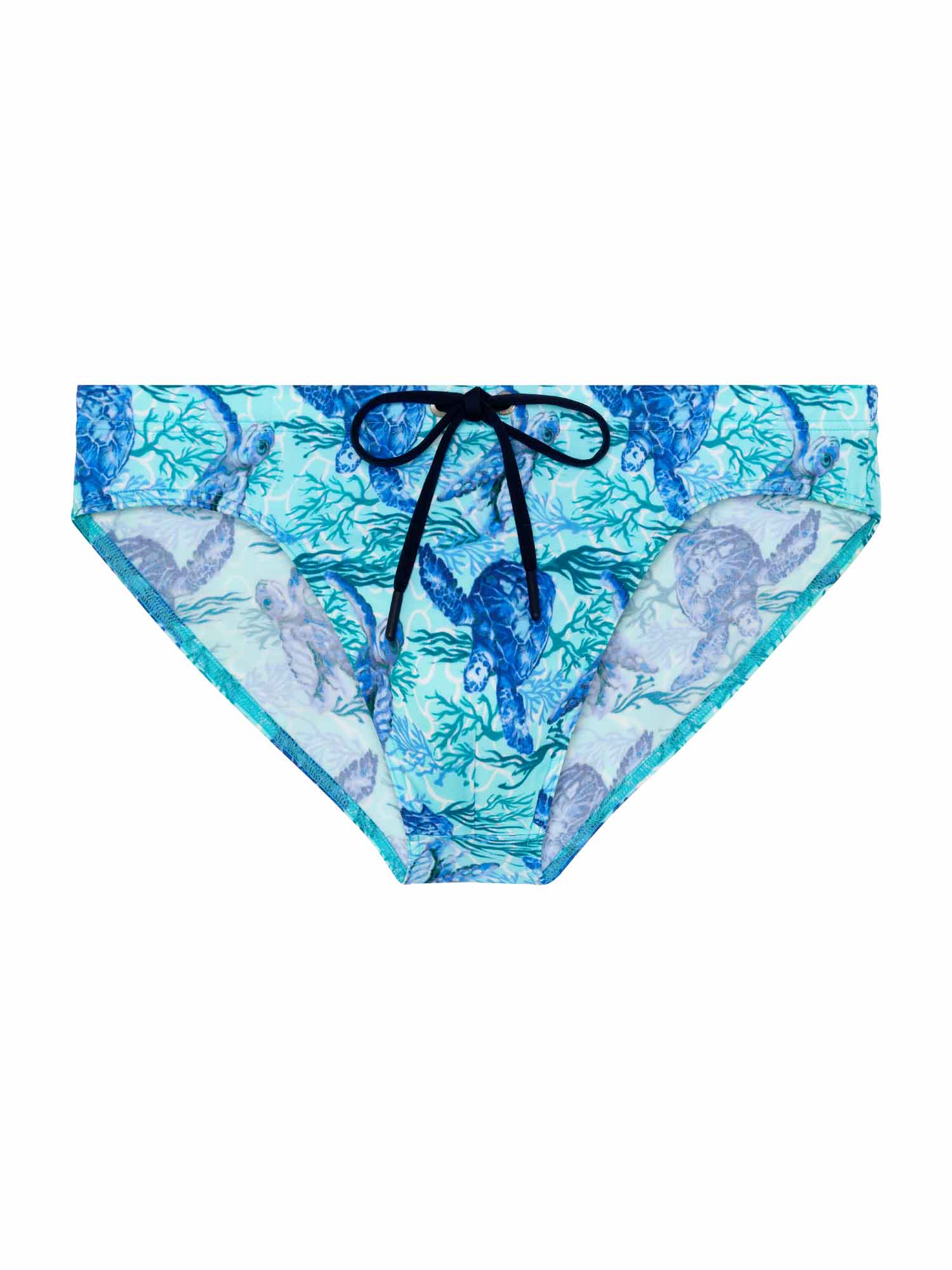 De Tartane - Swim Mini Briefs maken deel uit van de zomercollectie zwemkleding van HOM. Blauwe schildpadden op een turquoise achtergrond sieren dit waterachtige ontwerp dat doet denken aan de zeebodem rond de Caribische eilanden. De schildpad staat symbool voor wijsheid, moed en doorzettingsvermogen. De stof is elastisch, sluit mooi aan op de huid en is niet doorschijnend. Omdat dit mini briefs zijn, zitten ze hoger op de heupen. Het trekkoord in de tailleband zorgt ervoor dat je de zwembroek perfect kunt afstellen op jouw maat voor een stevige en comfortabele pasvorm.