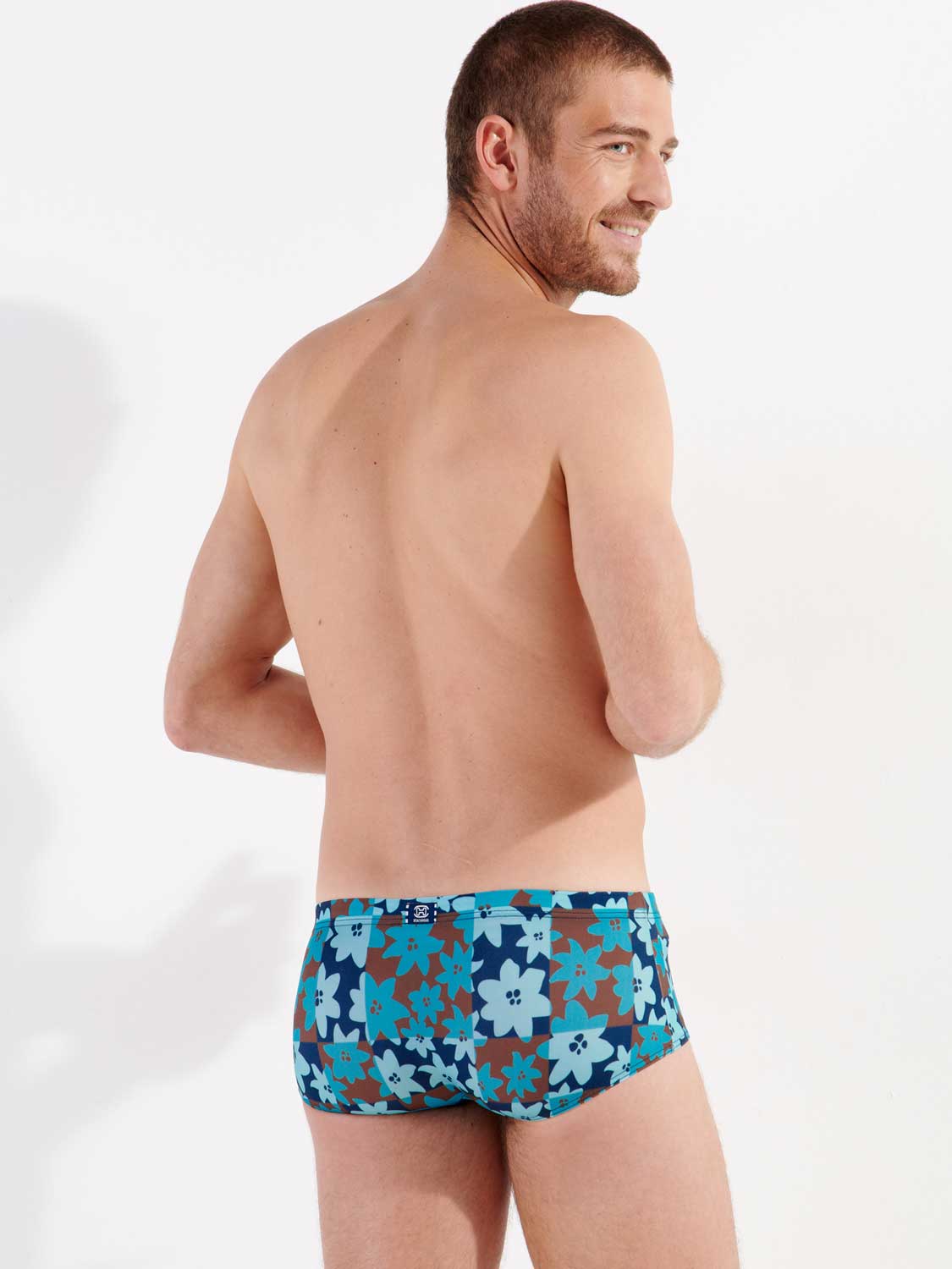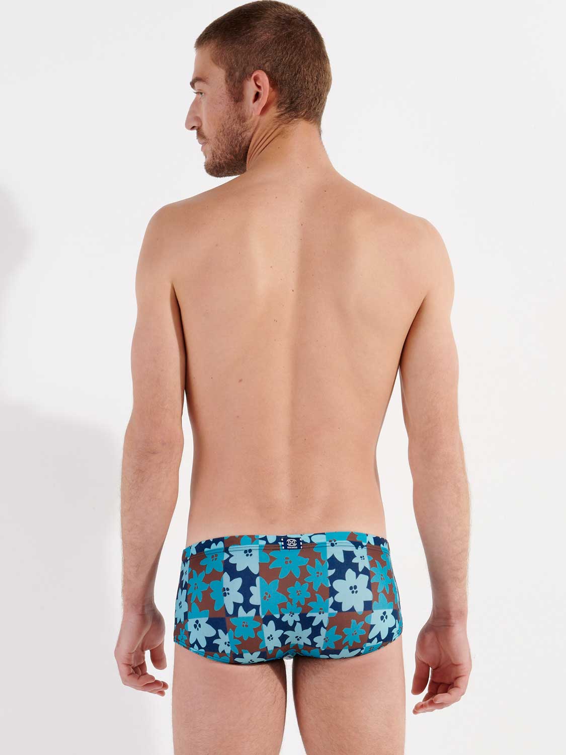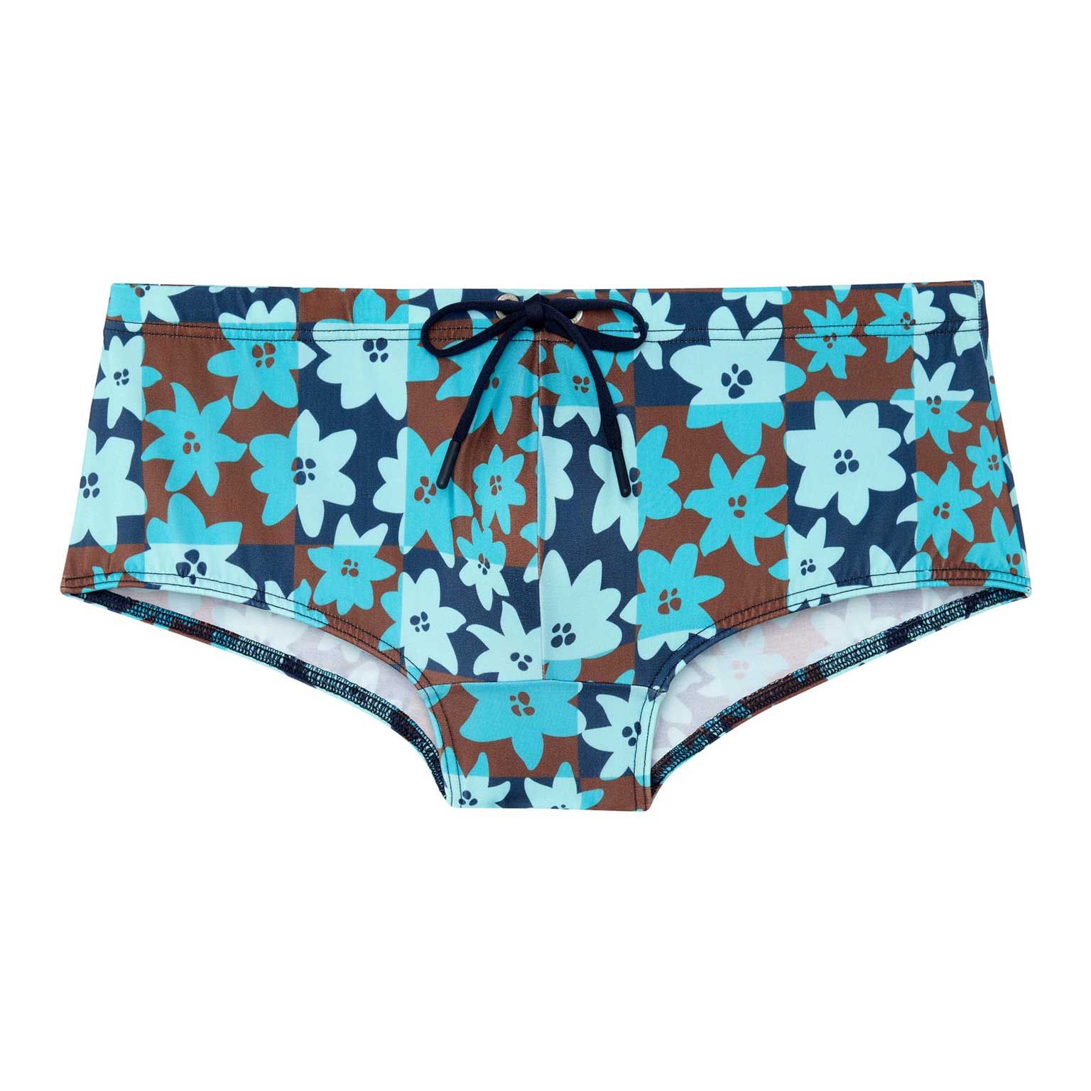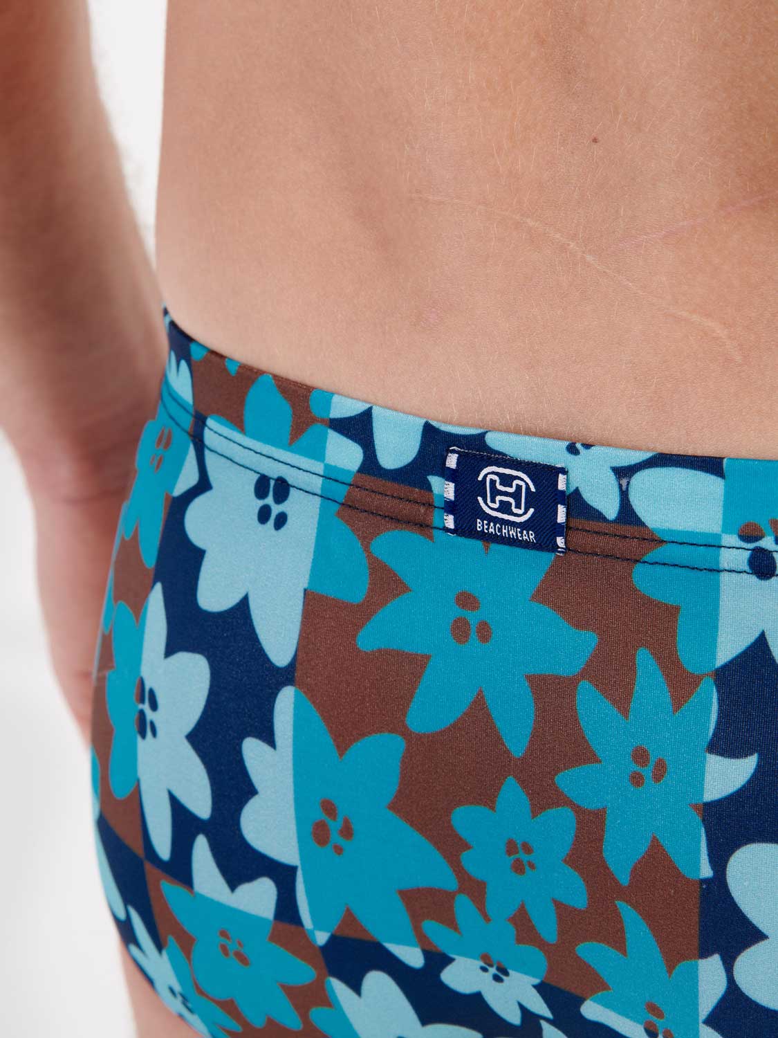 De Mervyn - Swim Trunk heeft een abstracte bloemen print in de kleuren blauw en bruin. De stof is elastisch, sluit mooi aan op de huid en schijnt niet door. Omdat deze zwemboxer een trunk model is, draag je deze lager op de hopen en heeft deze kortere pijpjes dan een regulier zwemshort voor een echte modieuze retrolook. Met het trekkoord in de heupband breng je de zwemshort perfect op maat. Een prachtig mode-item voor op het strand of in het zwembad.