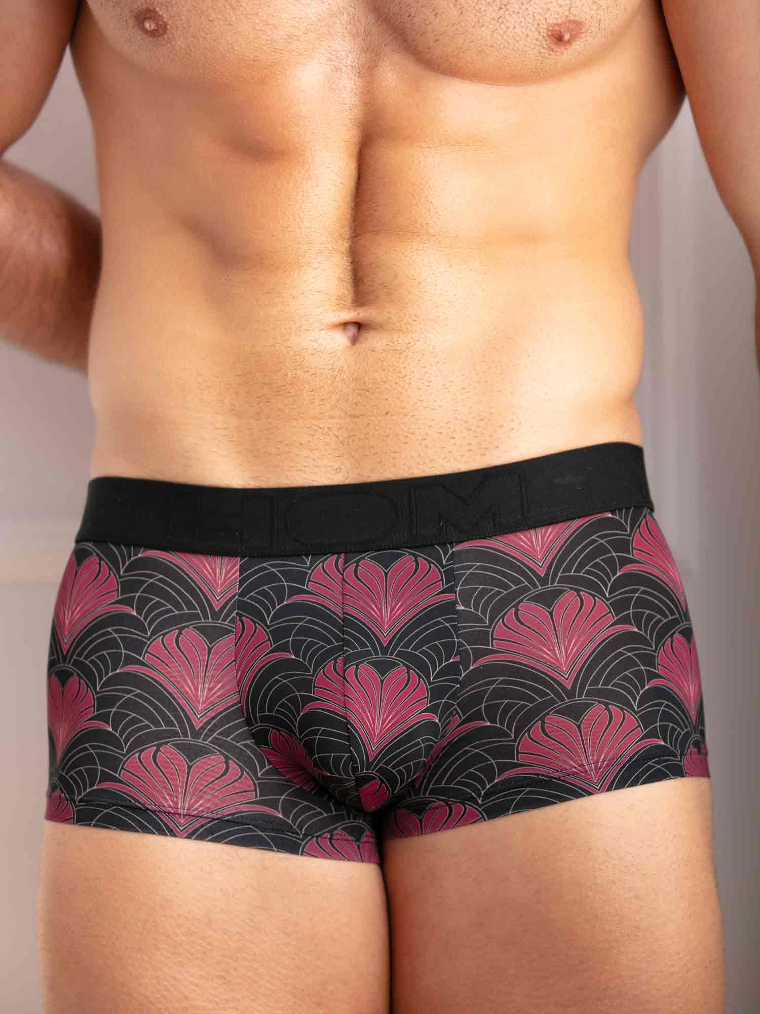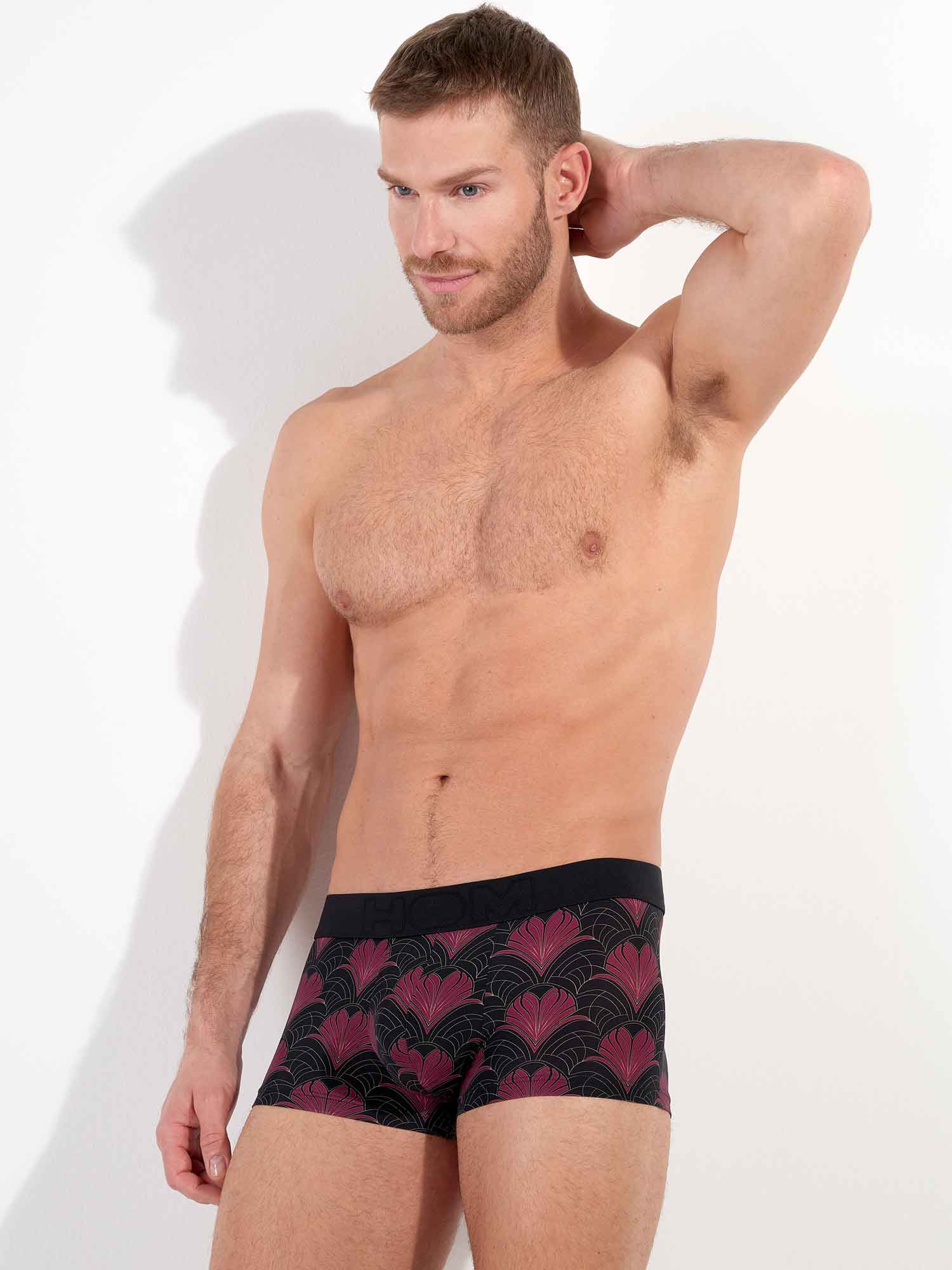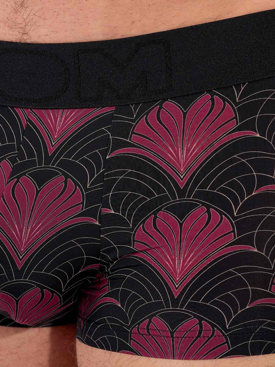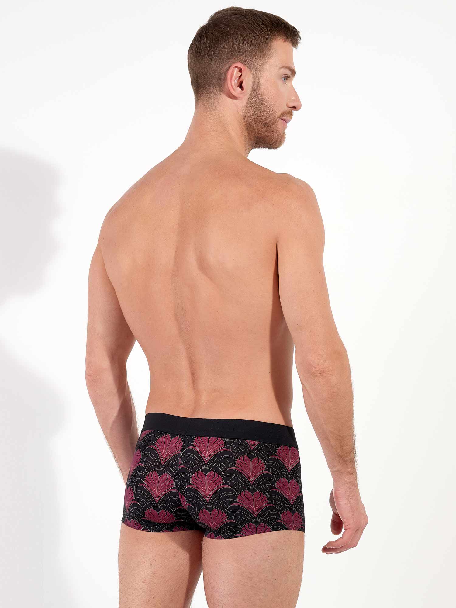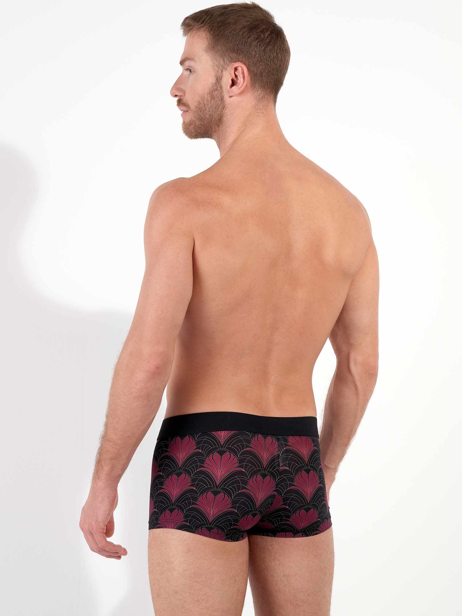 De Carlyle trunk brengt een eerbetoon aan de elegantie van het Art Deco-tijdperk. De diepzwarte basis wordt verrijkt met een luxueus patroon in bordeaux en goud, dat doet denken aan bloeiende veren of florale waaiers. De gladde microvezel voelt heerlijk aan tegen de huid, terwijl de naadloze tailleband zorgt voor een perfecte pasvorm zonder afdrukken. Een stijlvolle keuze voor wie graag verfijning combineert met sensualiteit. De trunk is te combineren met het bijpassende shirt tot een complete set.