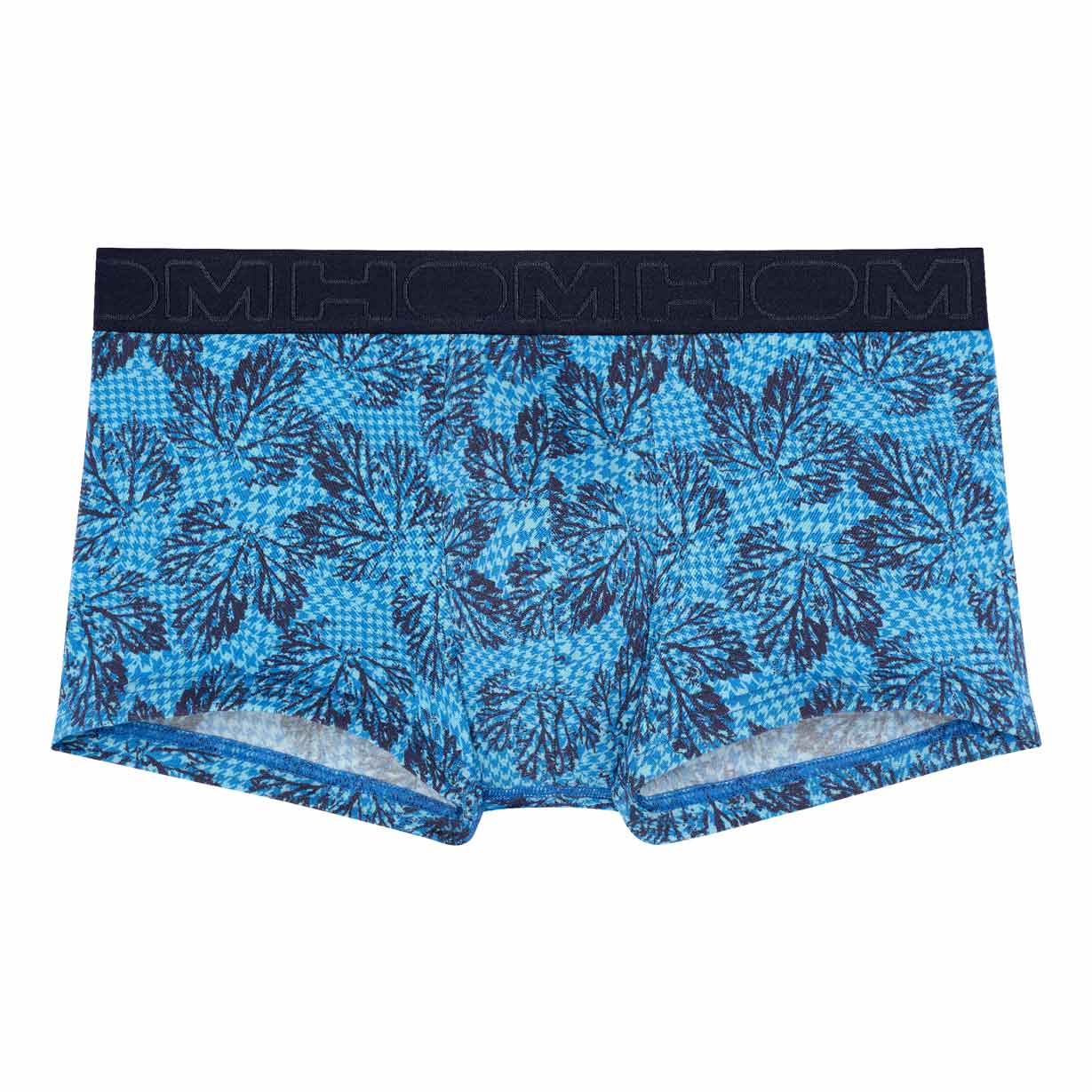 De Douro - Trunk is gemaakt van hoogwaardig katoenmodal, waardoor deze zacht en comfortabel voelt op het lichaam. De douro heeft een opvallende vegetatie print in de kleur marine blauw op een lichtblauwe achtergrond. De elastische heupband is uitgevoerd met het HOM Logo rondom in ton sur ton.Het trunk model ligt lager op de heupen dan een reguliere boxer voor een modieuze look en heeft korte pijpen.