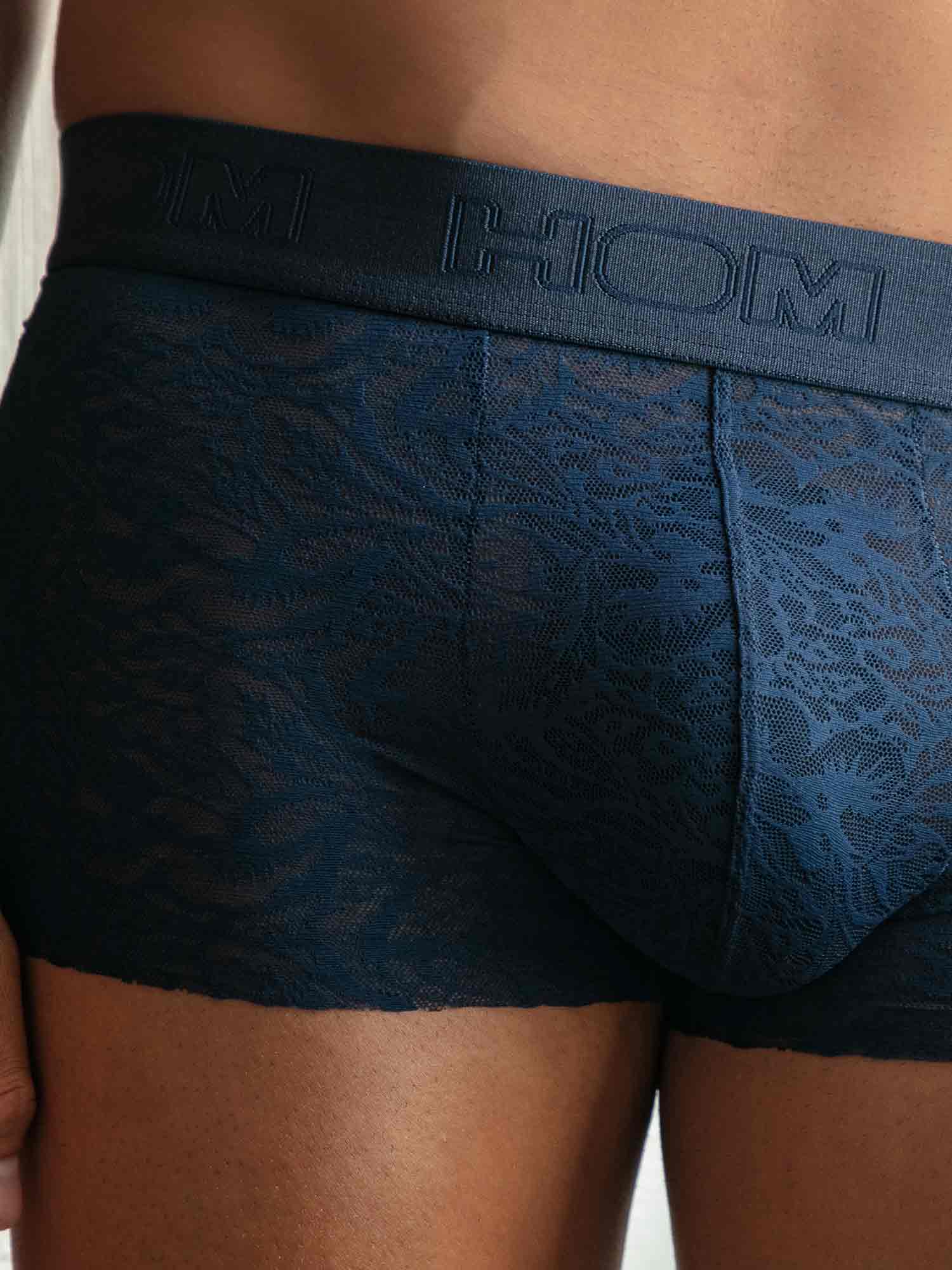 De Free Cut Lace - Trunk is een sensuele toevoeging aan de HOM Temptation-lijn. De Free Cut Lace is gemaakt van een sierlijke mesh met een prachtig bladerpatroon, waardoor je het gevoel krijgt dat je je in de tropen bevindt. De transparante stof speelt op erotische wijze met de huid voor een sensueel effect. En dankzij de freecut-technologie hoeft de stof niet gesloten te worden met een naad bij de pijpen.