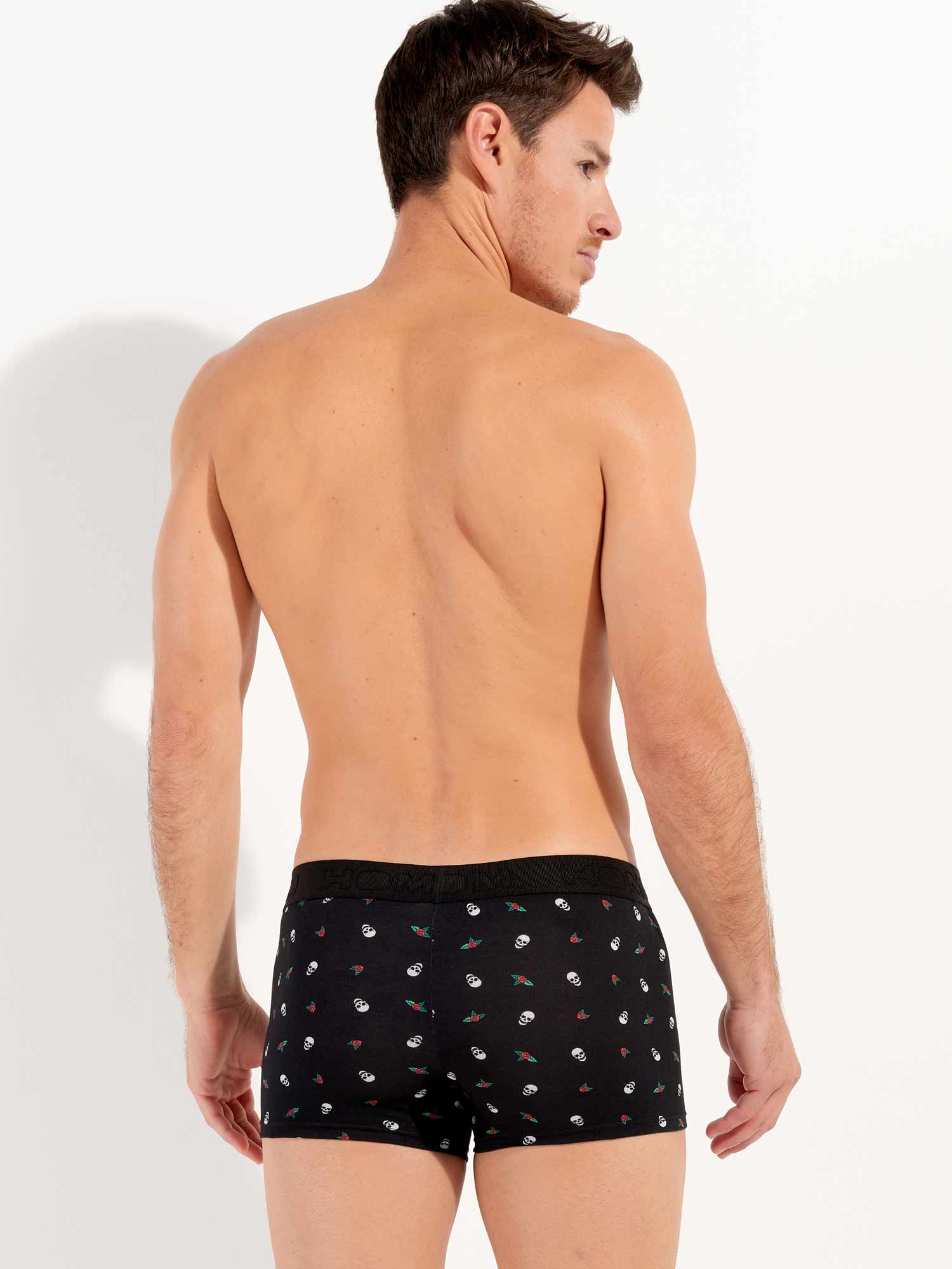 De Nevada - Trunk is gemaakt van hoogwaardig katoen-modal, waardoor deze zacht en comfortabel voelt op het lichaam. De Nevada heeft een print met een opvallend contrast van illustraties van schedels en rode rozen. De elastische heupband heeft een rib met het HOM-Logo geborduurd in ton sur ton. Het trunk model ligt lager op de heupen dan een reguliere boxer voor een modieuze look en heeft korte pijpen.