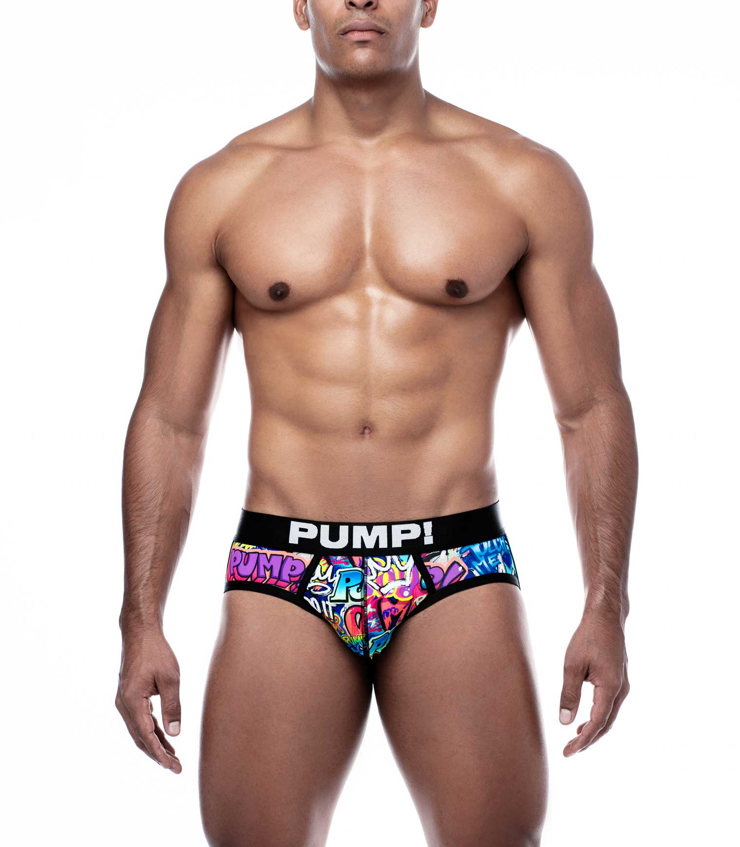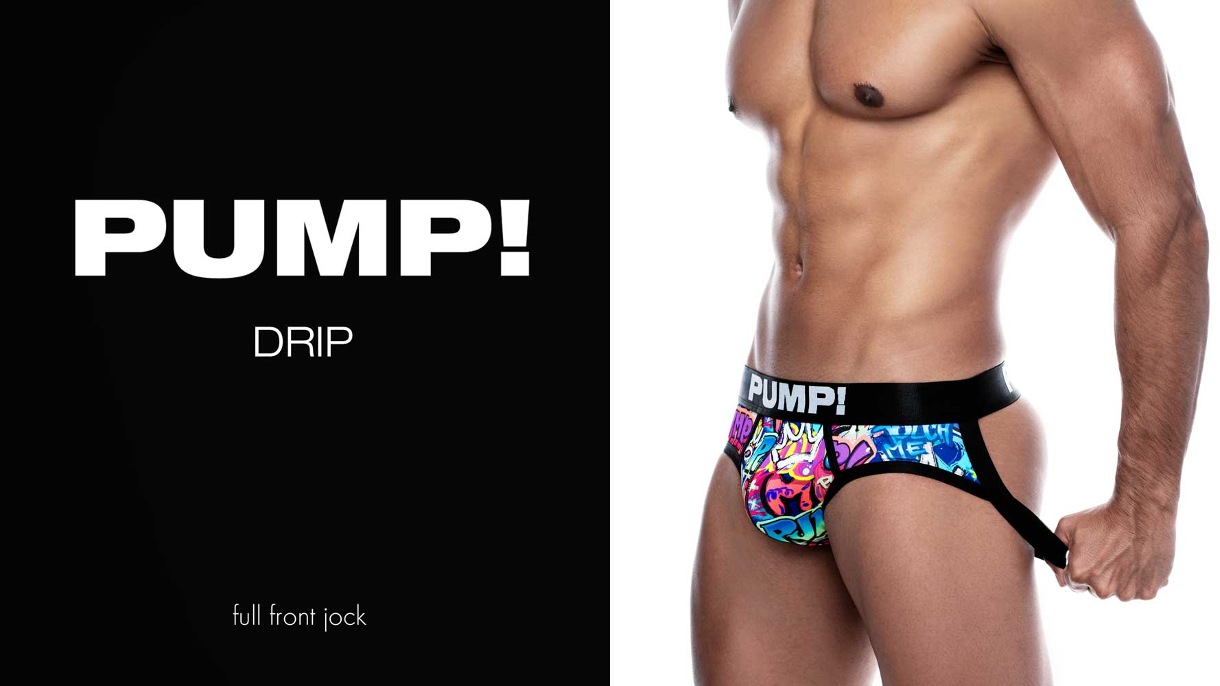 Maak een statement met de PUMP! Drip - Full Front Jock. Met een breed voorpaneel dat druipt van gewaagde kleuren geïnspireerd op graffiti. Met deze jock trek je zeker de aandacht in de kleedkamer of slaapkamer. De plaatsing van de print is bij elk exemplaar anders, waardoor elke Jock uniek is. De stof is gemaakt van een flexibele vochtafvoerende polyester microvezelstof, waardoor je een droog en comfortabel gevoel houdt wanneer je de jockstrap draagt. De zwarte tailleband, geaccentueerd met het klassieke witte PUMP! logo en de zachte straps zorgen voor een verstevigde fit en ondersteuning.