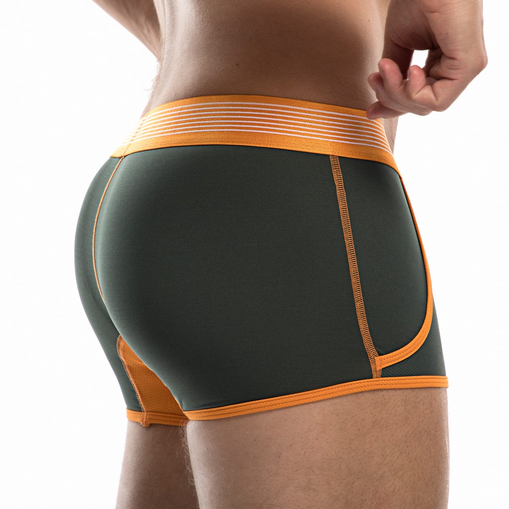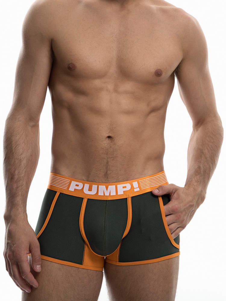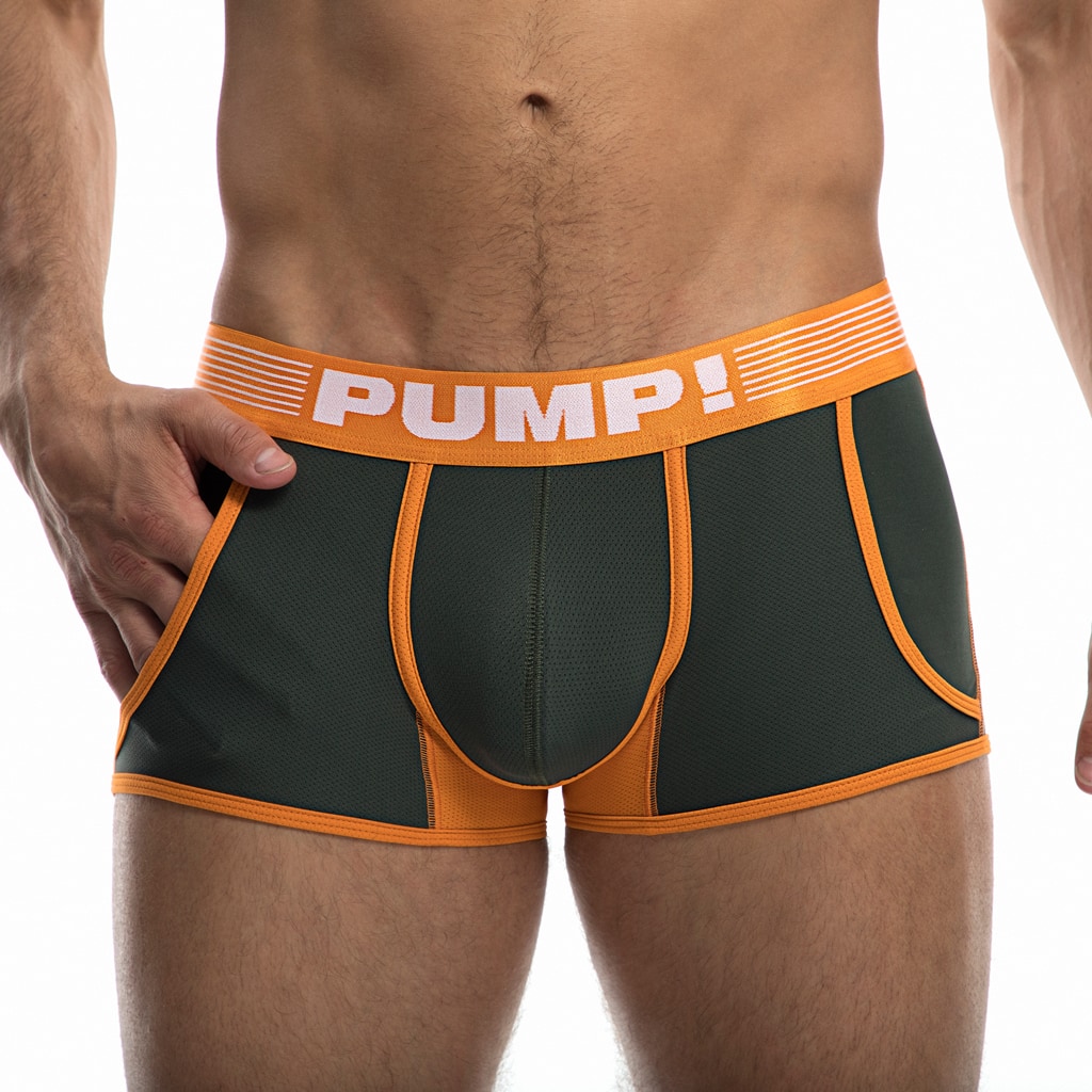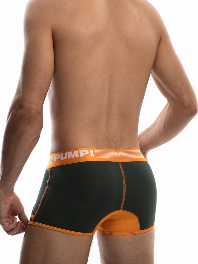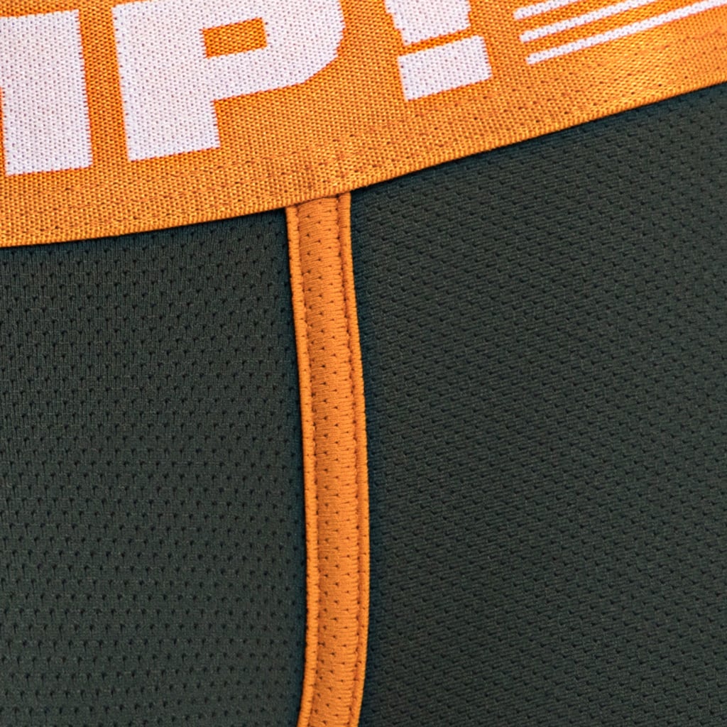 Wees aan de leiding met de PUMP! Squad Jogger. Ontworpen met een gestroomlijnde en comfortabele pasvorm met een zacht fijnmazig mesh op het lichaam, de benen en de cup, voor optimaal ademend vermogen en vocht afvoer. De Jogger is uitgevoerd in een groene leger kleur met oranje biezen en stiksels en heeft een PUMP! tailleband met een breedte van 4cm. De Jogger heeft gemakkelijke steekzakken aan de linker en rechter zijde.