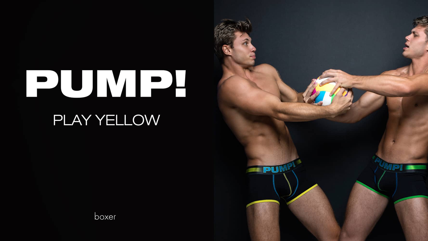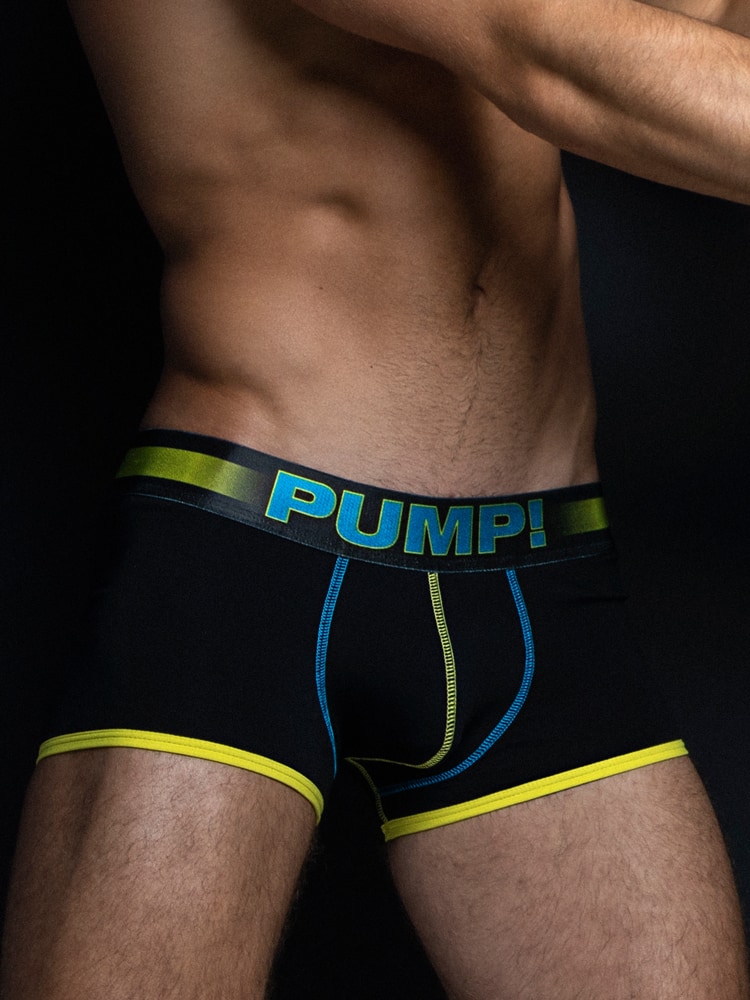 De nieuwe PLAY serie van PUMP! Underwear. De boxers zijn speels uitgevoerd met een heupband van 4,5 cm breed. De PLAY boxers zijn gemaakt van stretch katoen voor de perfecte fit en de Yellow boxer is uitgevoerd met gele en blauw gekleurde stiksels en biesjes.