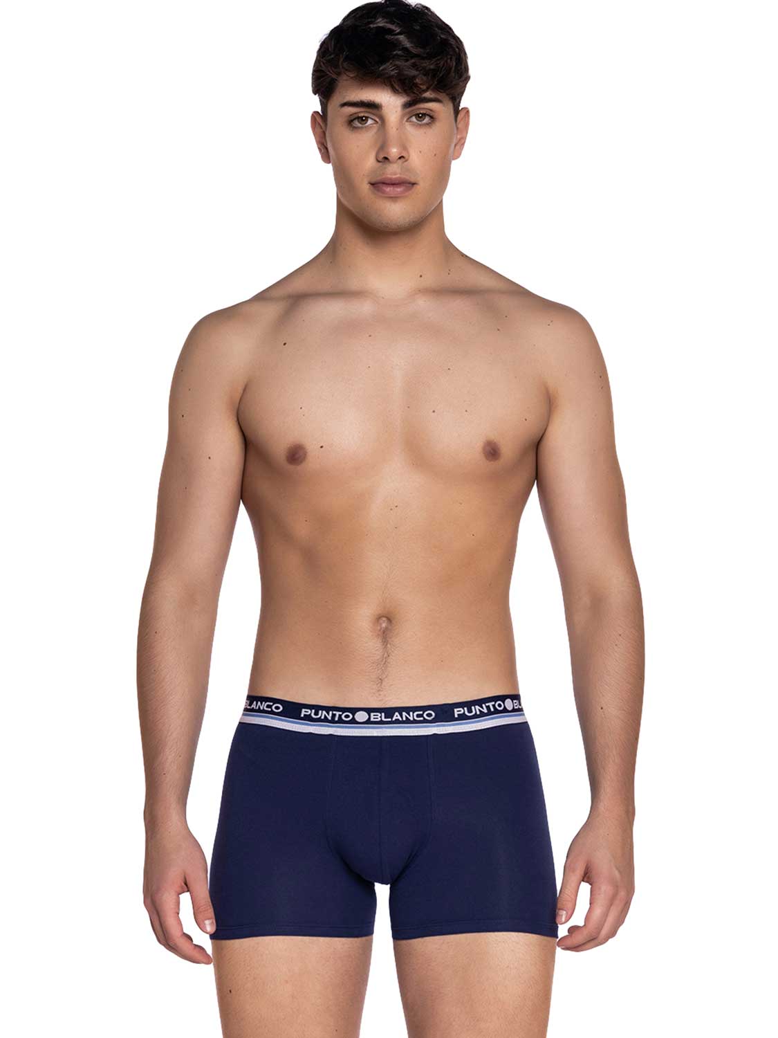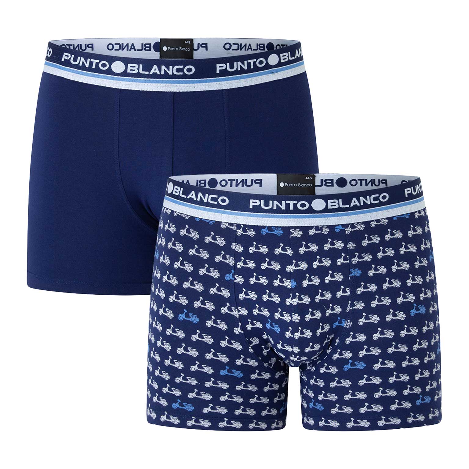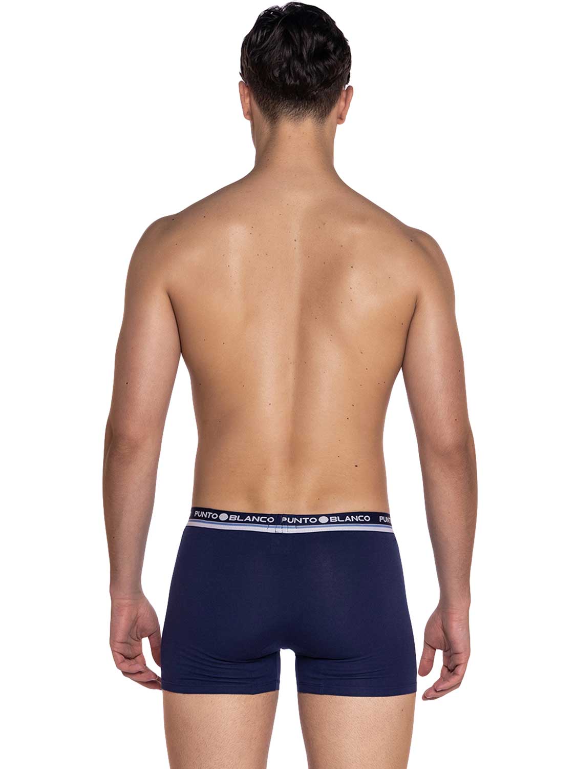 De Navy is een multi-pack met 2 boxers gemaakt van biologisch katoen. Biologisch katoen komt van een katoenveld met planten die niet genetisch gemodificeerd zijn en waar geen pesticiden worden gebruikt. De boxers hebben een klassiek design, waarvan 1 in effen marine blauw en de ander met een print. De comfortabele elastische heupband is uitgeveord met het Punto Blanco logo rondom.