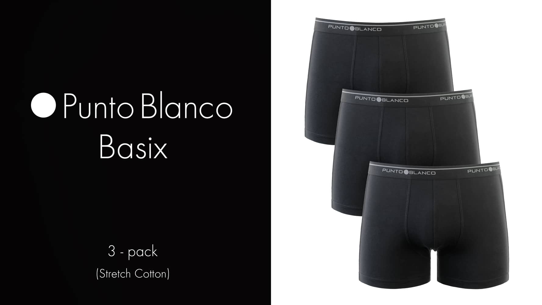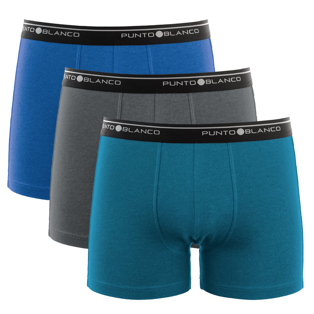 De Basix serie staat voor eenvoud; goed ondergoed en voordelig geprijsd. De Basix zit al jaren in het assortiment van Punto Blanco en heeft zichzelf dan ook al overtuigend bewezen. Met de Basix Boxer Briefs koop je een goede degelijke boxer, geschikt voor alledaags gebruik. De Basix boxers zijn gemaakt van 93/7 stretch katoen voor een comfortabele fit die langer behouden blijft. Dit voordeelpack beschikt over 3 boxers in diverse kleurcombinaties met een contrasterende elastische heupband met daarop het Punto Blanco logo rondom. Het logo is aan de voorzijde niet gecentreerd.