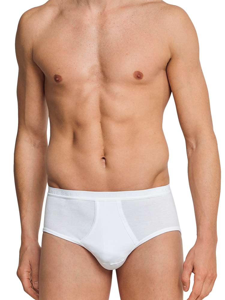 De Original Feinripp heren slip van SCHIESSER, een klassieker verkrijgbaar in een voordelige 2-pack: Deze herenslip uit de "Original Classics" serie van SCHIESSER-serie overtuigt de veeleisende man met hoogwaardig materiaal en optimaal draagcomfort. Deze klassieke heren slip is gemaakt van 100% super gekamd katoen met een fijne rib wat aangenaam zacht aanvoelt op de huid en rond gebreiden waardoor je geen last hebt van vervelende zijnaden. In combinatie met de elastische tailleband zit deze Original Feinripp onderbroek perfect, zelfs na vele wasbeurten tot 95 graden.