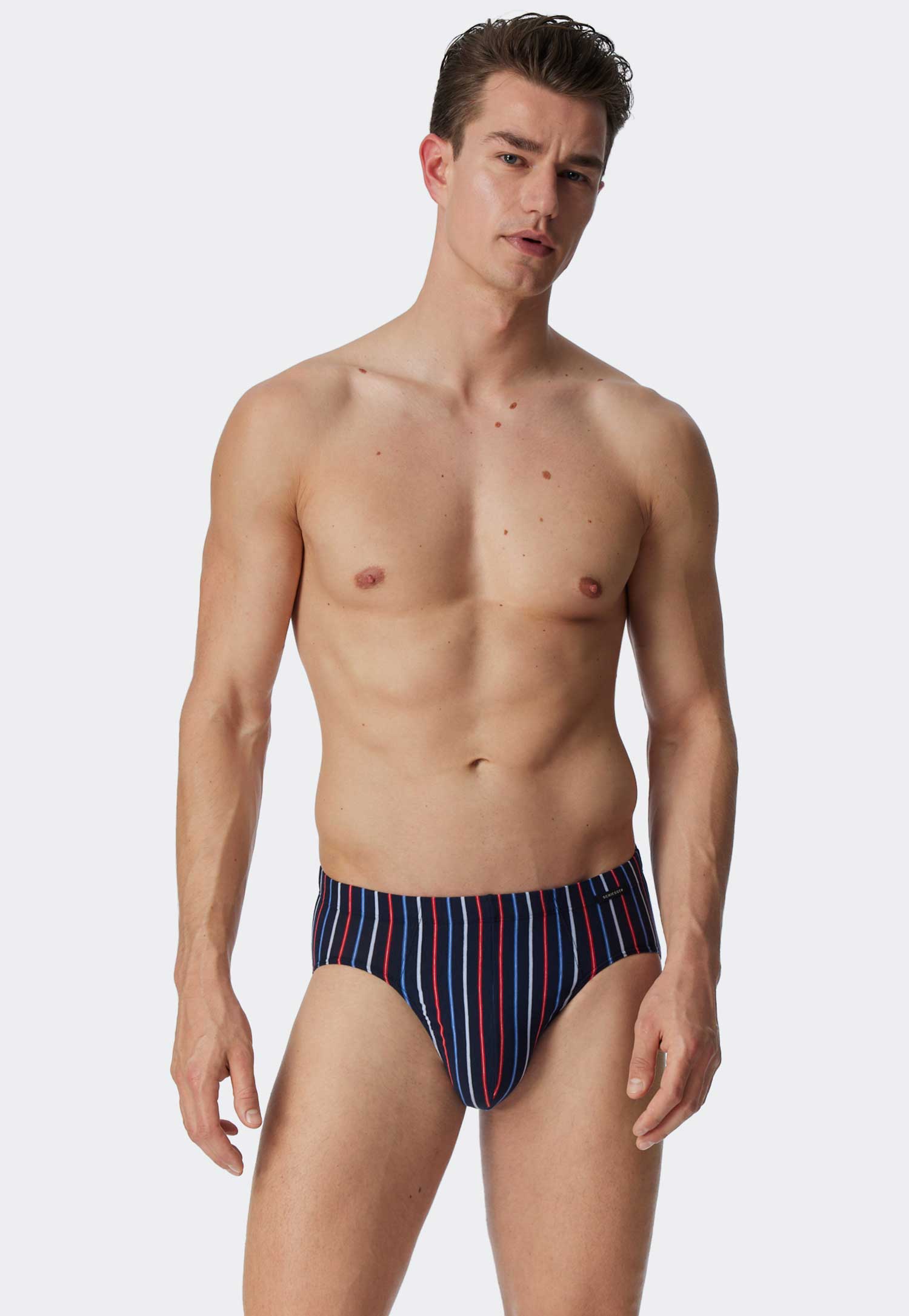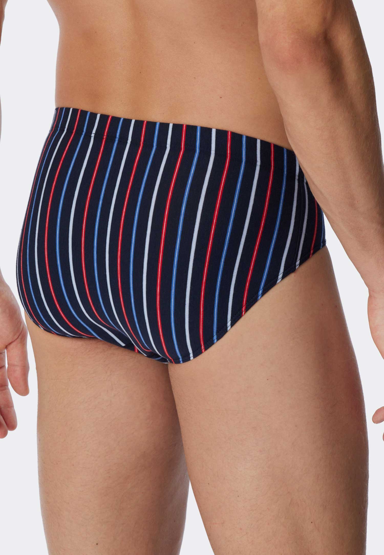Heren slip gemaakt van biologisch katoen uit de Daywear collectie van Schiesser. De slip heeft een print met verticale strepen. Doordat de slip is gemaakt van katoen, is deze makkelijk te reinigen en voelt deze aangenaam zacht. Uitgevoerd met een onzichtbare heupband.