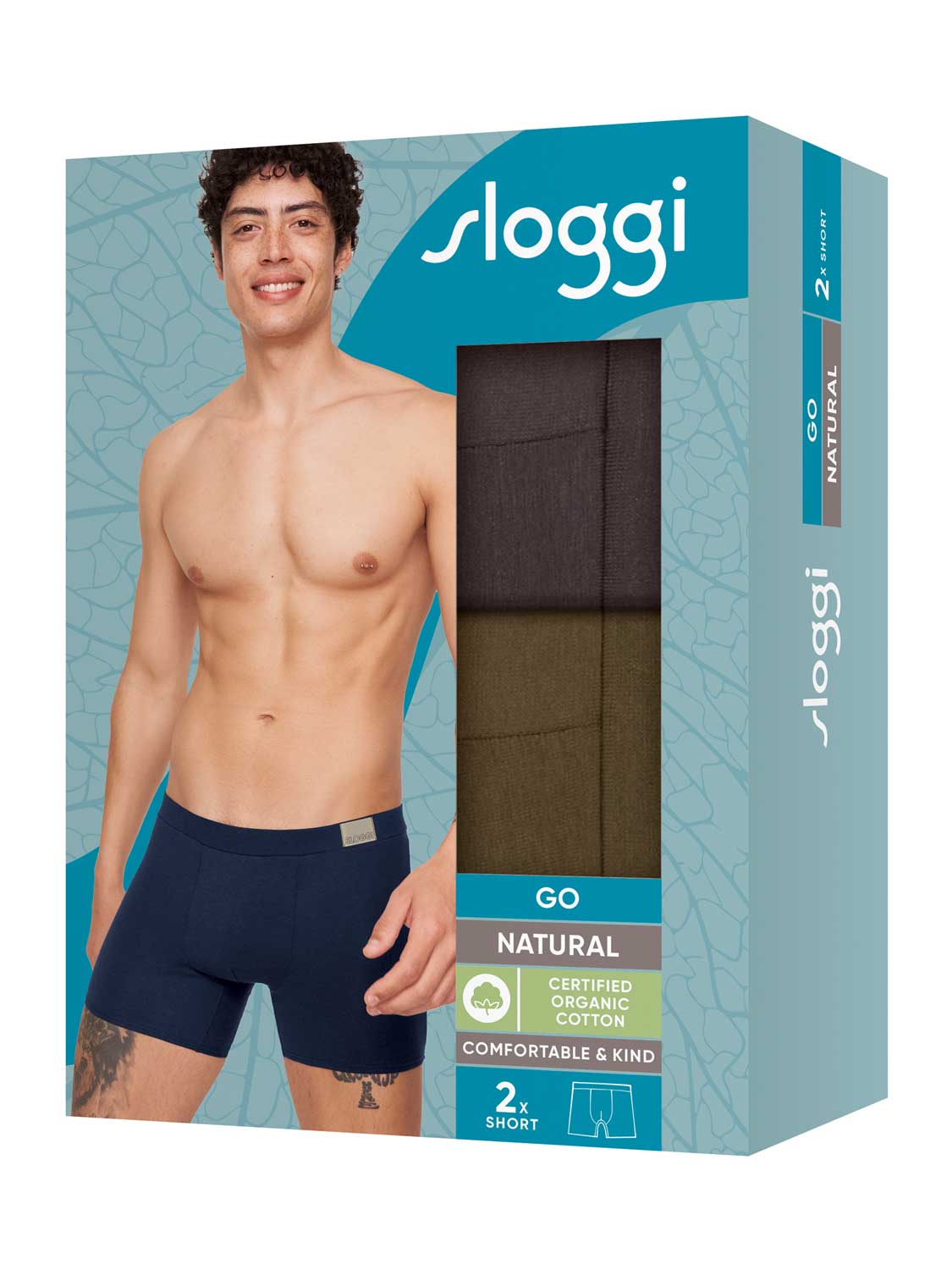 Met de Go Natural Serie van Sloggi draag je organisch katoen, wat geteeld is zonder gebruik van pesticiden. De Go Natural is gemaakt van een comfortabel 95/5 - stretch katoen, zodat het ondergoed perfect aansluit op je lichaam. De Go Natural komt in een 2-pack met twee effen heren boxers uitgevoerd met een elastische effen tailleband met linksvoor een klein Sloggi label geborduurd.