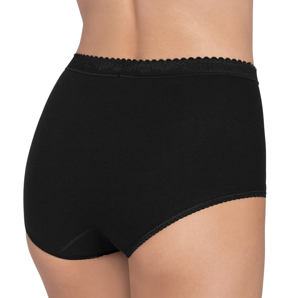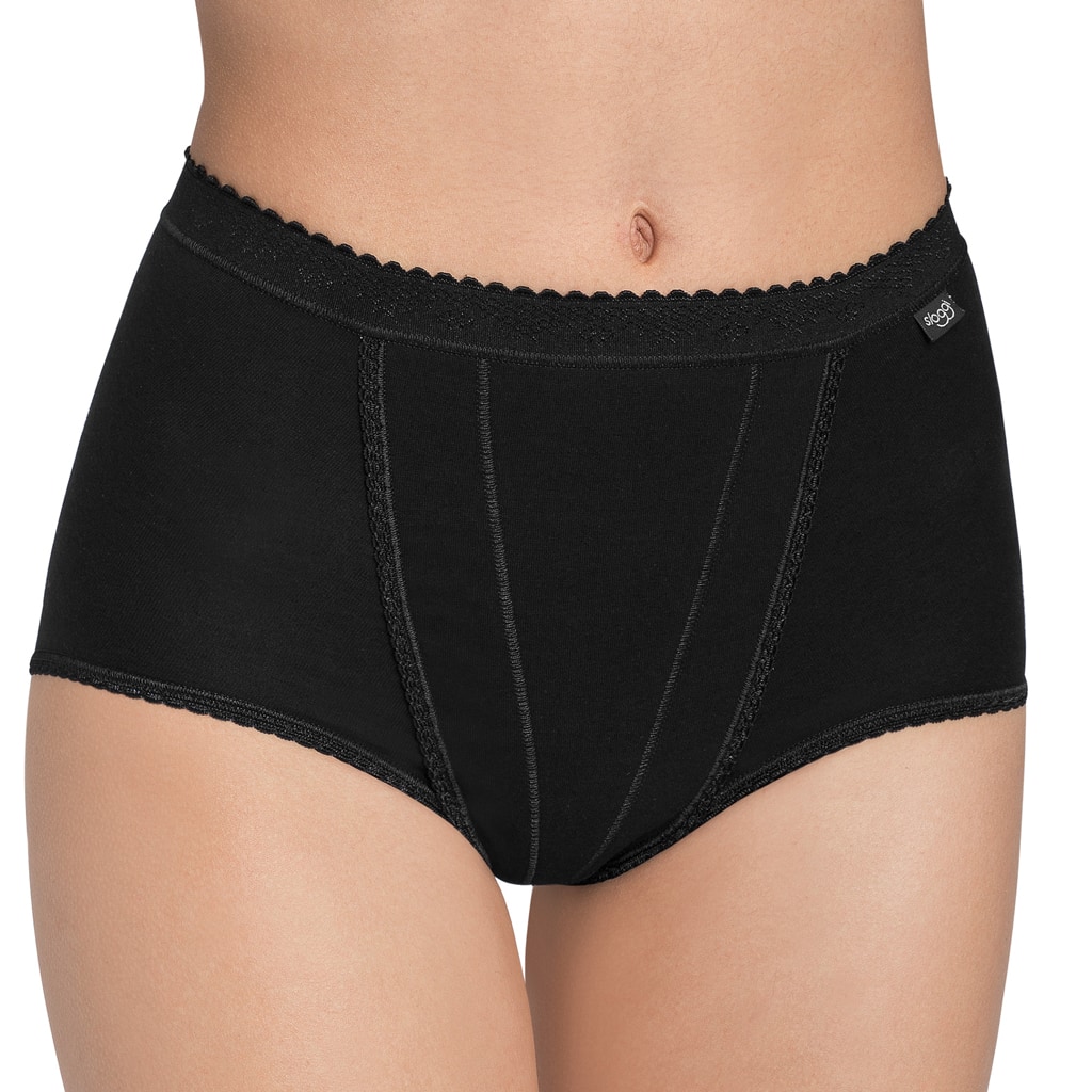 De Maxi slip uit de Sloggi Control serie is verkrijgbaar in de kleuren wit en zwart. De Maxi Control is een corrigerende slip die een lichte correctie geeft aan de buik zonder je bewegingsvrijheid te beperken. De slip heeft een klassieke snit die hoog op de heupen valt en laag is uitgesneden waardoor deze hoge zijdelen heeft, zoals je gewend bent van een maxi slip. De voorzijde is dubbel ingezet en verzorgt de lichte buikcorrectie. De maxi Control slip sluit goed aan op je lichaam door een zachte vormvaste elastische heupband die niet in de huid trekt. Deze Sloggi slip is het perfecte ondergoed voor wanneer je net wat beter en zelfverzekerder, maar zonder te veel poespas voor de dag wilt komen.