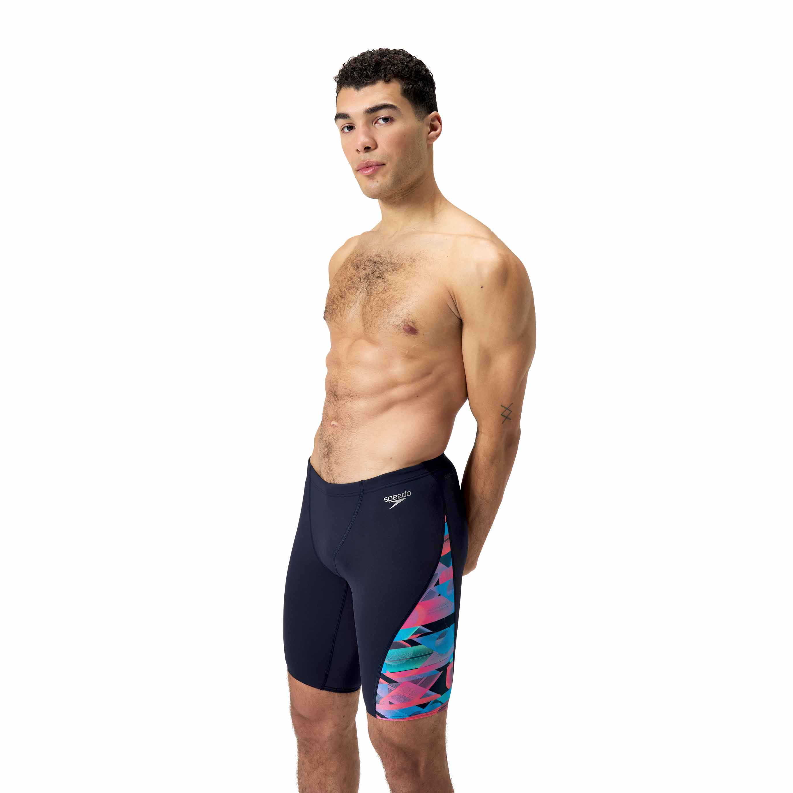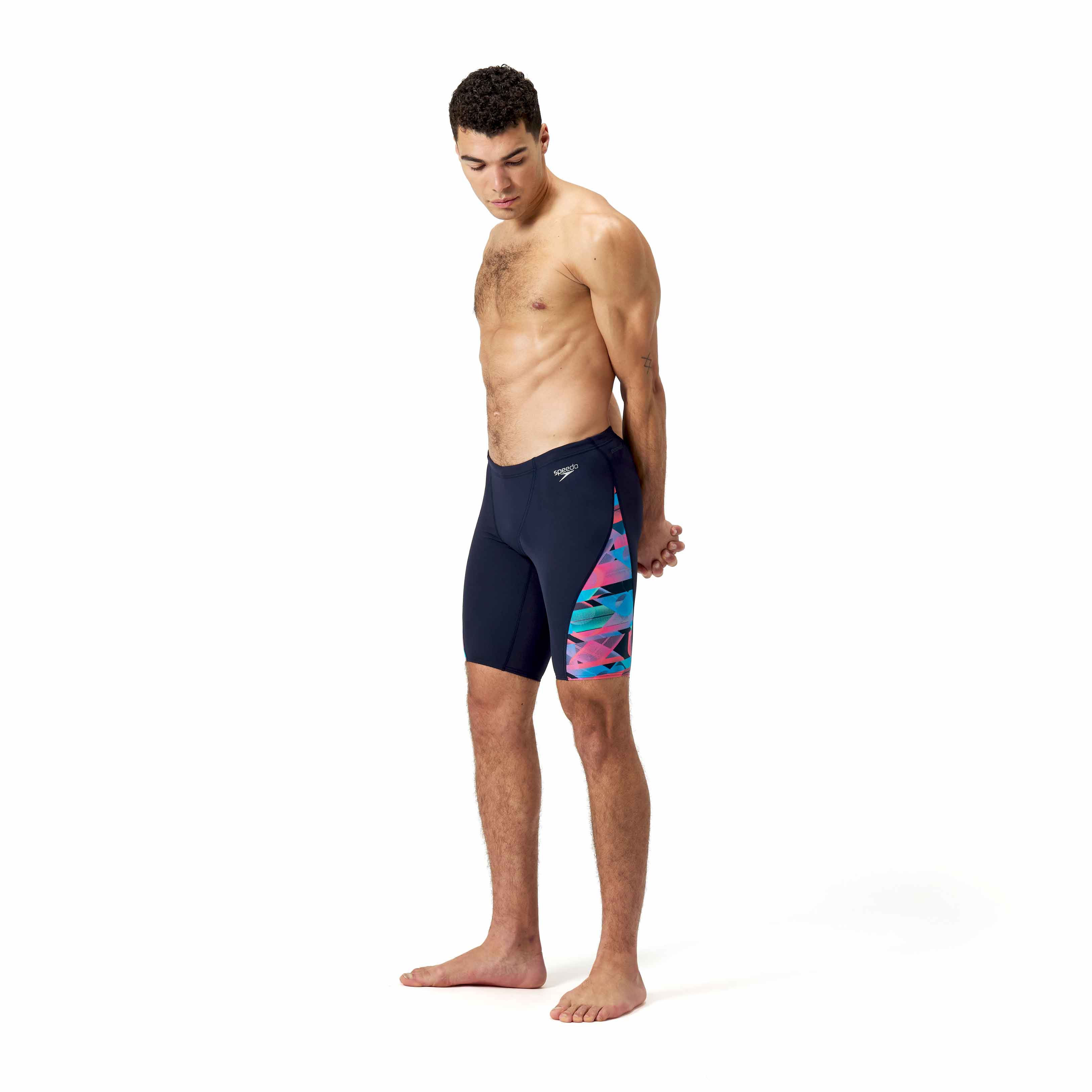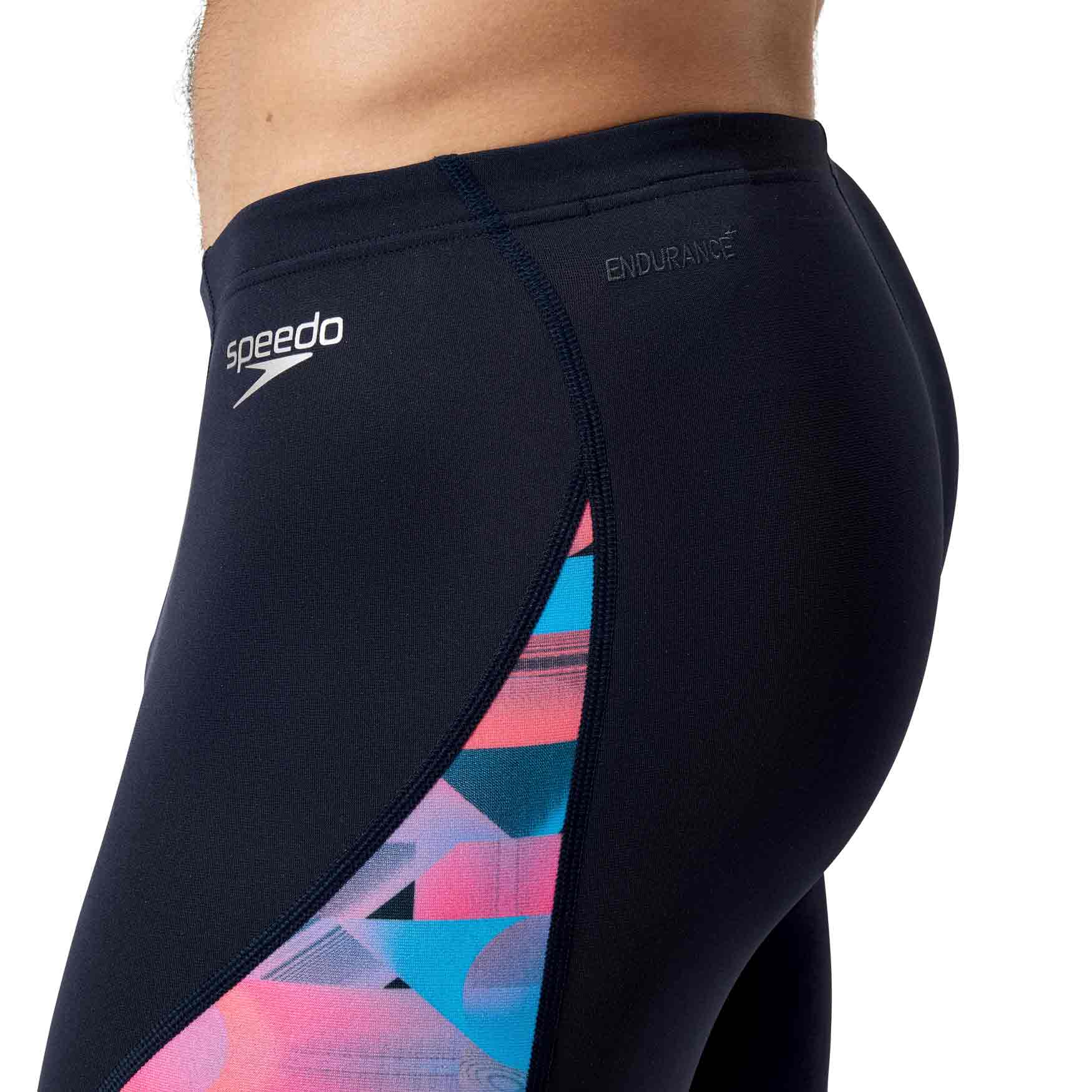 De Eco+ Jammer - V-cut is gemaakt van Eco Endurance+, waardoor de jammer 100% chloorbestendig is, snel droogt en vele malen langer mee gaat dan reguliere zwemkleding. De jammer heeft een V-cut panel voor een gestroomlijnde pasvorm en integrale ondersteuning voor een optimaal gevoel van zekerheid. Met het trekkoord in de heupband kun je de pasvorm perfect op maat brengen. De nieuwe Endurance+ stoffen zijn gemaakt van gerecycled materiaal. De jammer heeft een prachtige contrasterende abstracte print langs het been.