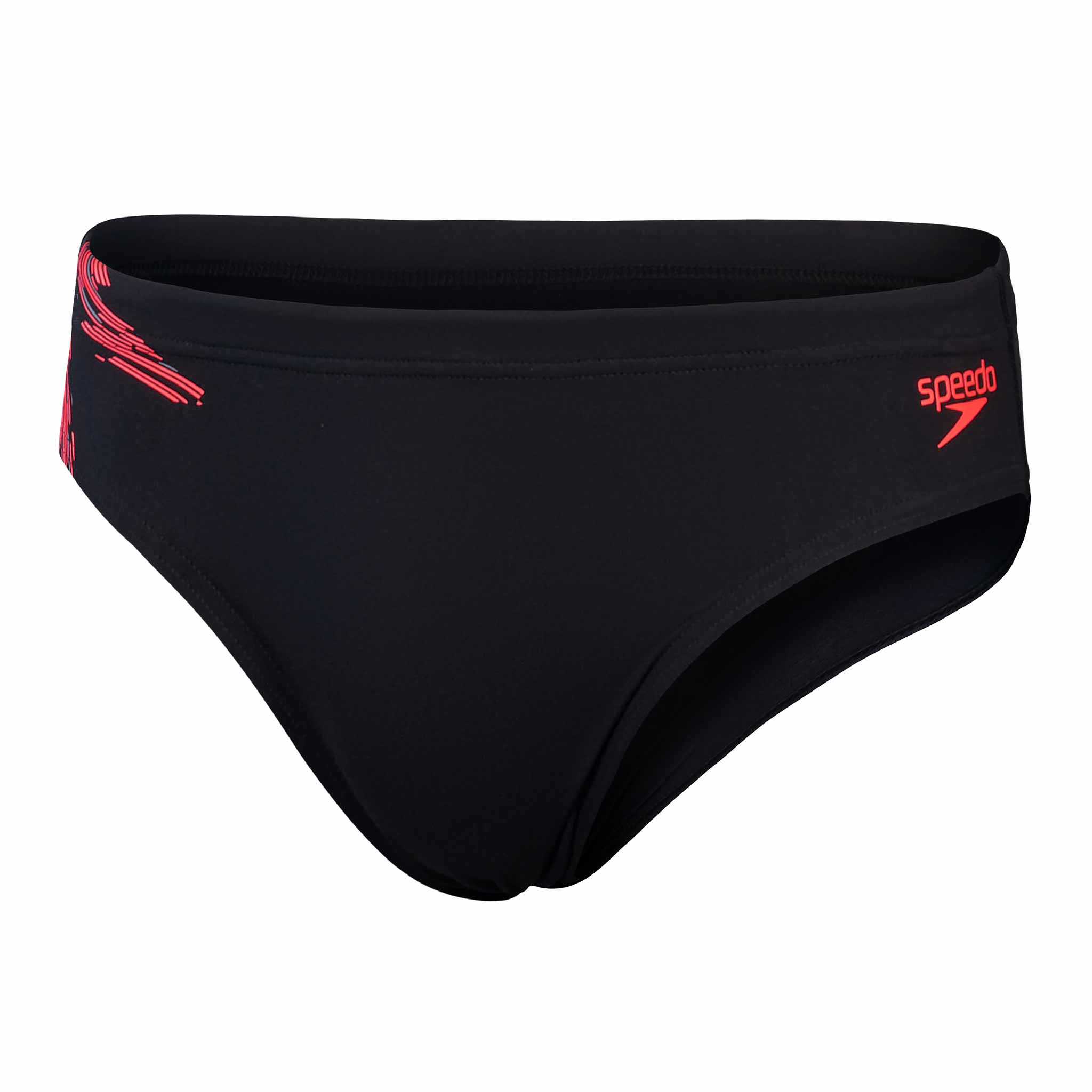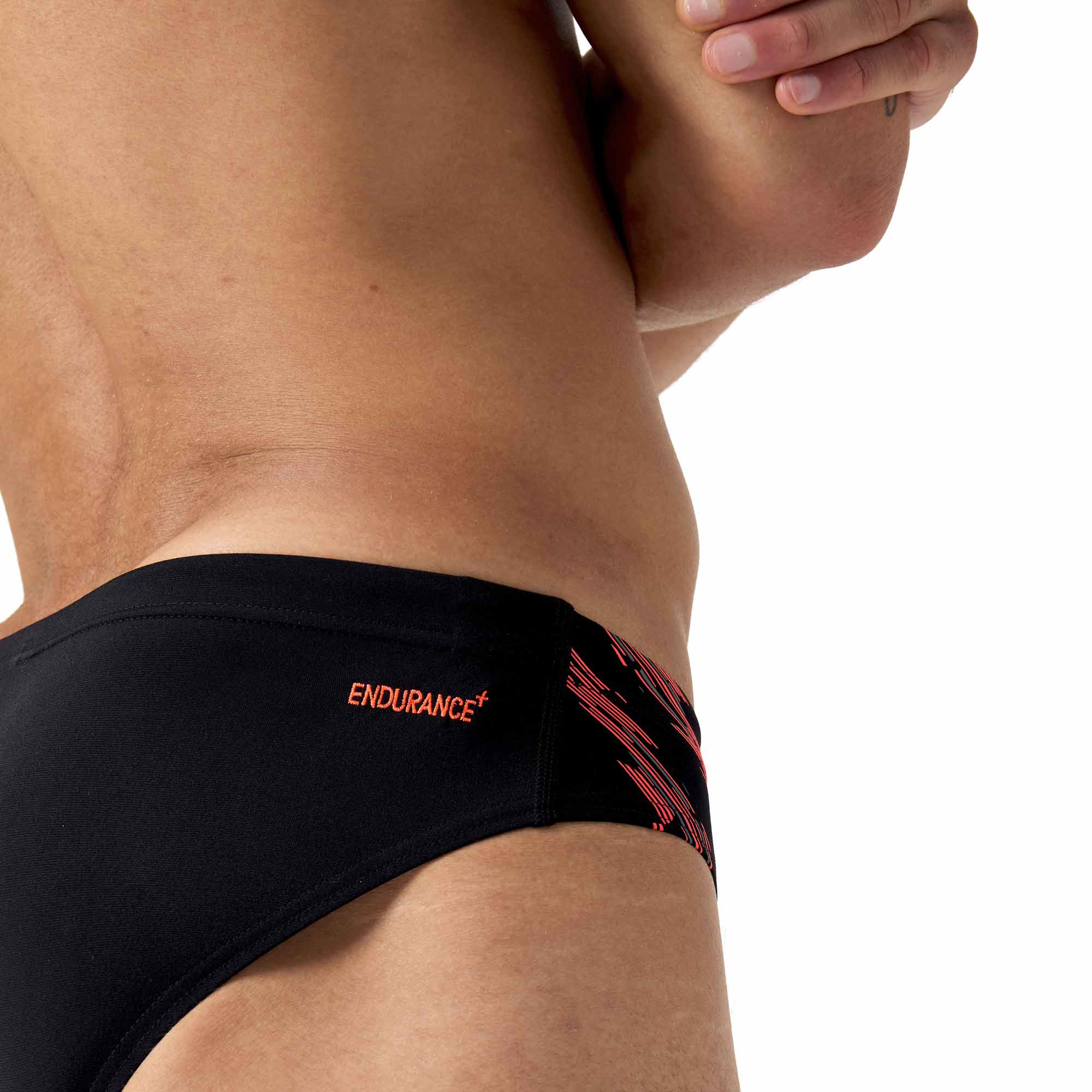 Eco+ 7cm Swimbrief van Speedo, perfect voor je training en uitgevoerd met een geometrische print. De zwemslip is gemaakt van Eco Endurance+, wat chloor afstotend is, snel droogt en vele malen langer mee gaat dan reguliere zwemkleding. Met het trekkoordje in de taille aan de binnenzijde van de zwembroek kun je deze perfect op maat brengen. Eco Endurance+ is gemaakt van gerecycled materiaal.