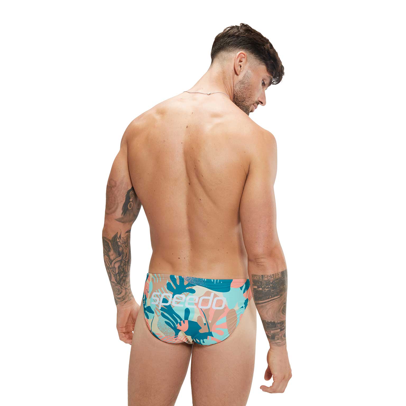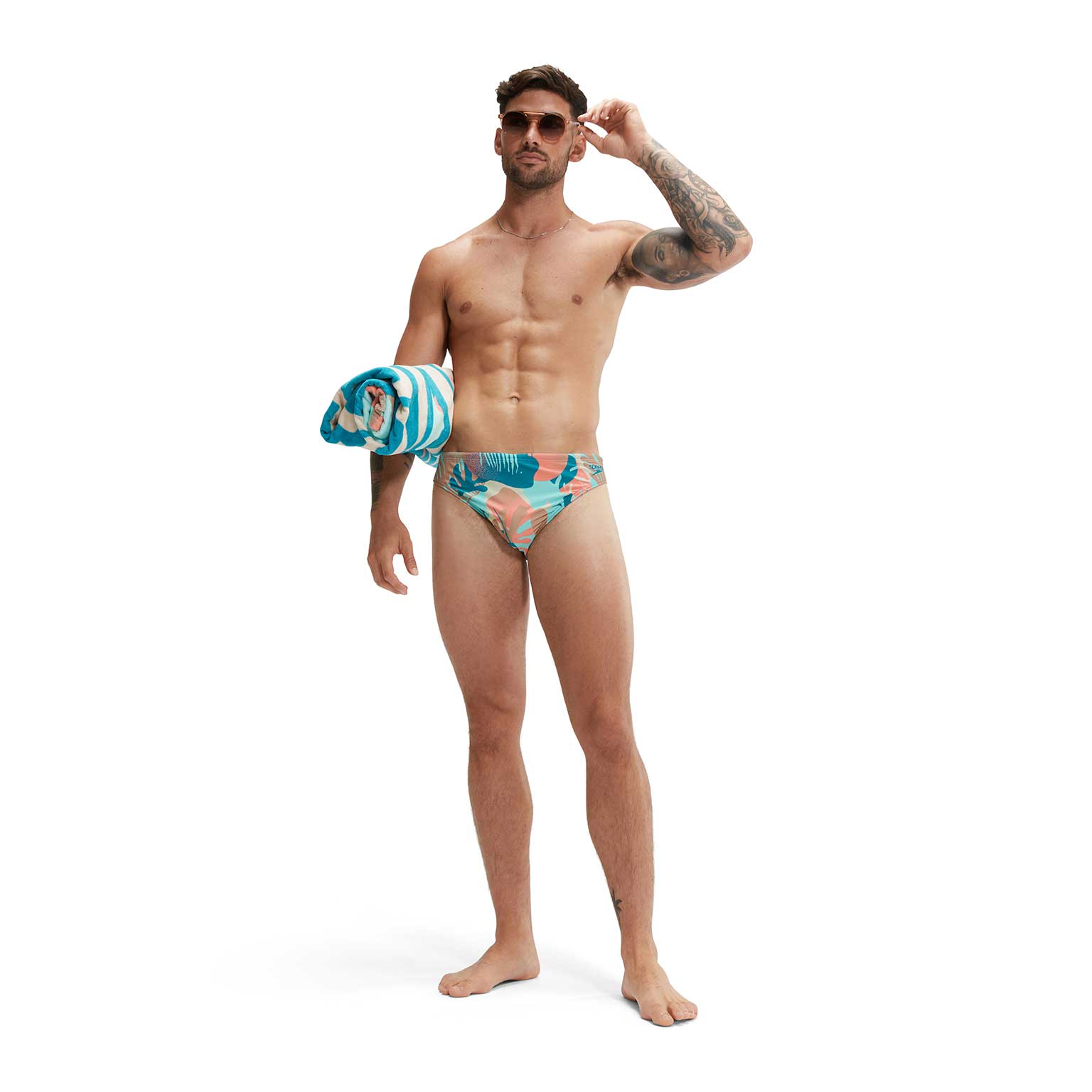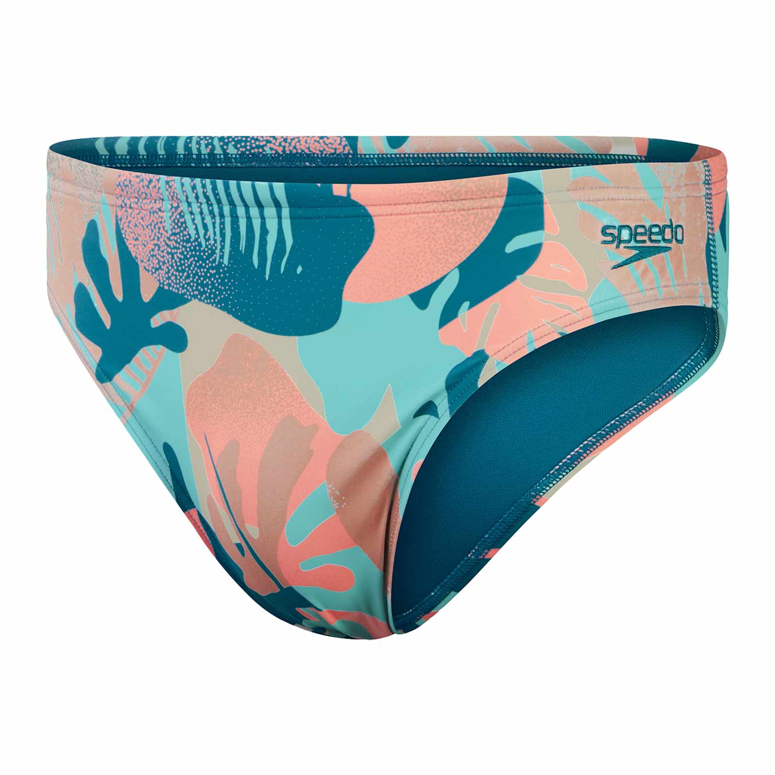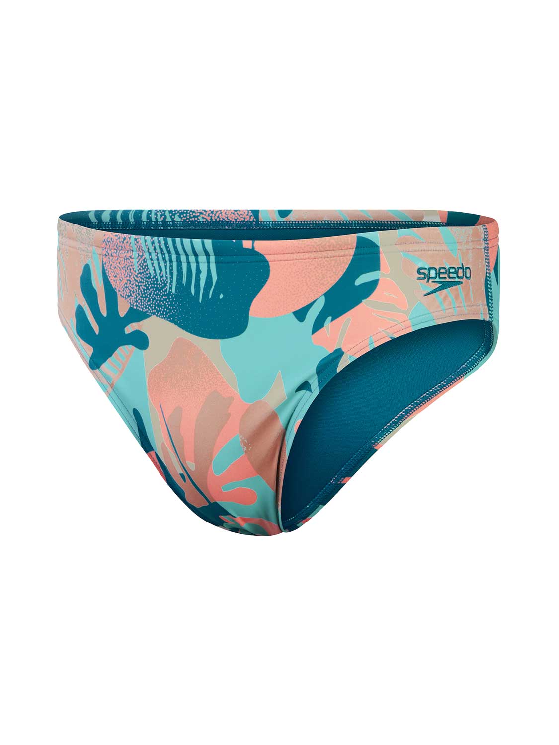 Deze Escape 5cm Brief straalt een relaxte Aussie-stijl uit en neemt je mee terug naar onze roots met een prachtige bladerprint geïnspireerd op het Australische plantenleven. De comfortabele slip heeft een Speedo-logo in retrostijl aan de achterkant en een taille met trekkoord in de heupband voor een verstevigde fit tijdens het zwemmen. De zwemslip is gemaakt van ECO EnduraFlex-stof waardoor deze door het elastaan direct comfortabel zit. De perfecte zwemslip voor op het strand of een relaxte vakantie.
