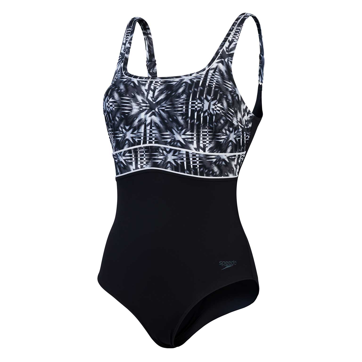 De Contour Eclipse is een sculpture badpak uit de Shaping collectie van Speedo en de vervanger van de countourlustre. De sculpture stof sluit perfect aan op het lichaam en accentueert de vrouwelijke rondingen voor een mooi gestroomlijnd figuur, zonder in te leveren op draagcomfort. Het badpak biedt een medium borstondersteuning verweven in de stof en heeft een all-over shaping effect. De verstelbare schouderbandjes zorgen ervoor dat je het badpak perfect op maat kunt brengen. De Contoure Eclipse is uitgevoerd met een rechte neklijn die nog voldoende ruimte biedt voor de dame die boven iets breder is of een grotere cup nodig heeft. De sculpture stof gaat tot 2x langer mee dan standaard badkleding wanneer je in chloor zwemt, waardoor je langer van je badpak kunt genieten.
