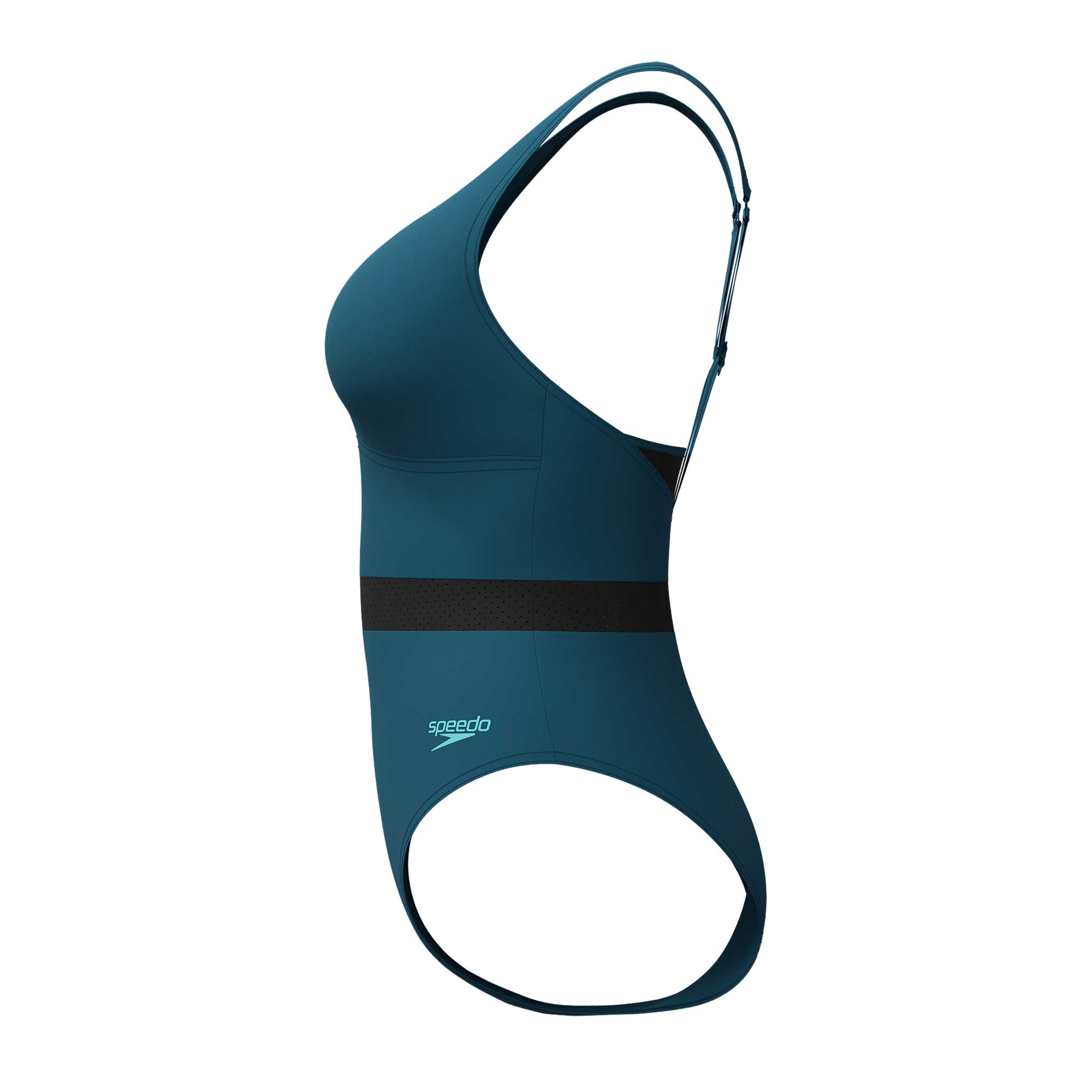 Ga stijlvol naar het strand of het zwembad met de Shaping - Luniaglow. Dit Speedo badpak heeft een prachtig nieuw design met een opvallende flatterende band van mesh rondom je taille. Waardoor de Luniaglow een echte eye-catcher is. De rug heeft een V-vorm, zodat je al te veel belemmeringen door het water kunt bewegen. Met de verstelbare bandjes breng je de cup perfect op maat voor optimaal comfort en ondersteuning tijdens een training. De Luniaglow is gemaakt van een sculpture stof waardoor deze een ligt shaping effect geeft met extra ondersteuning voor de buste. De sculpture stof gaat tot 2x langer mee dan standaard badkleding wanneer je in chloor zwemt, waardoor je langer van je badpak kunt genieten.