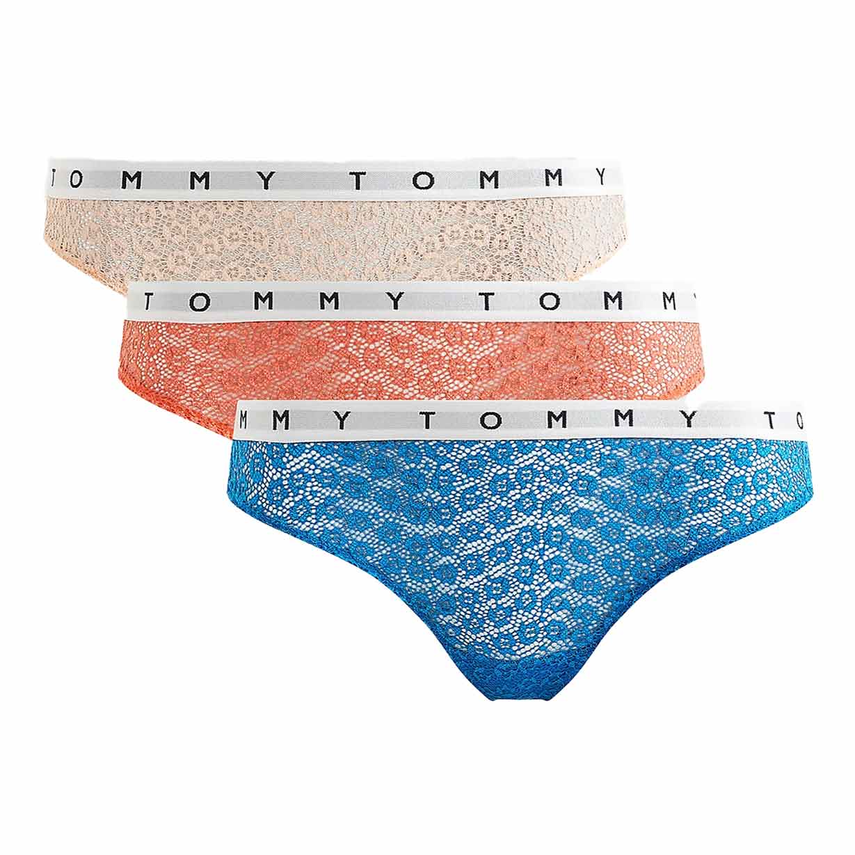 3 Dames strings van Tommy Hilfiger strings, voordelig in een multipack. De strings zijn gemaakt van sierlijk kant gemaakt van microfiber die nauw aansluit op de huid. De fijne elastische tailleband is versierd met het Tommy Hilfiger logo. Het kruisje van de string heeft een dubbele laag voor extra bescherming. De multipacks bevatten 3 strings ieder in een eigen kleur, zodat je kunt afwisselen. Beschikbaar in diverse kleurcombinaties.