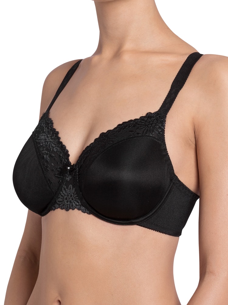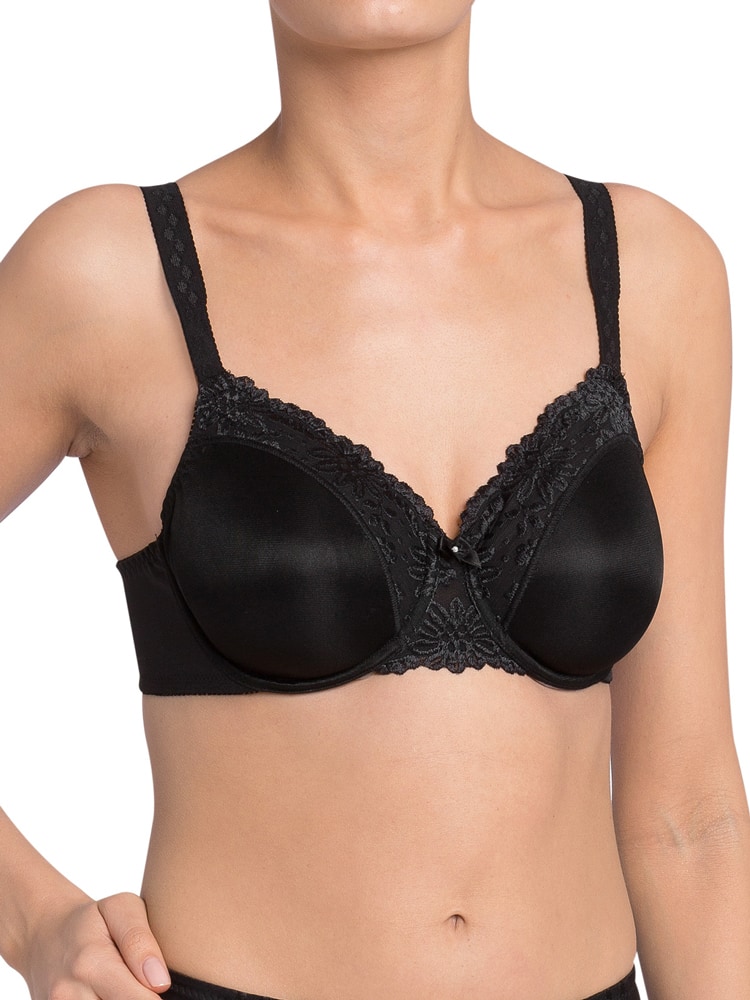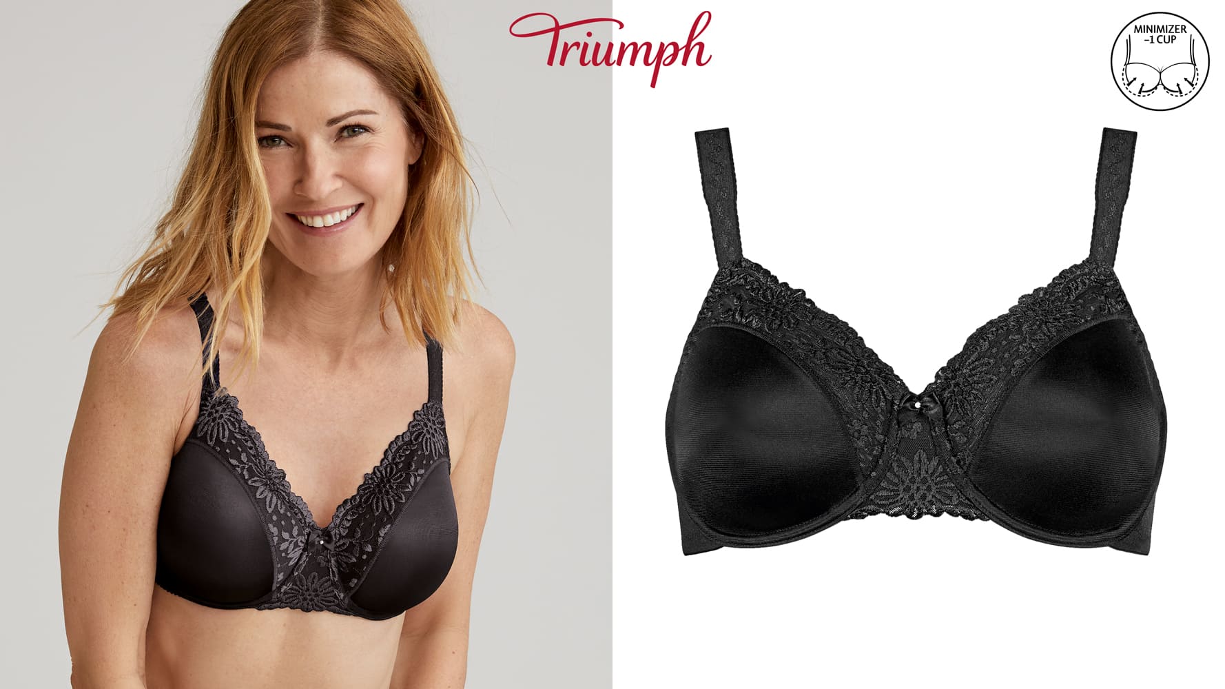 De Ladyform Soft is een minimizer beha uit de Triumph collectie die je met comfort en glamour goede ondersteuning biedt. Omdat het hier een minimizer BH betreft lijkt je boezem een cupmaat kleiner. De beha is bij het verbindingsstukje en aan de bovenzijde van de cups ingezet met sierlijk bloemenkant. De schouderbandjes zijn breed uitgevoerd waardoor de druk op de schouders optimaal verdeeld wordt en ze extra comfortabel aanvoelen wanneer je de beha draagt. De schouderbandjes zijn in lengte verstelbaar, zodat de cup perfect aansluit op je buste. De haaksluiting aan de achterzijde is drievoudig verstelbaar en nikkelvrij. De zijdelen zijn extra breed waardoor ze extra steun geven voor optimaal draagcomfort.